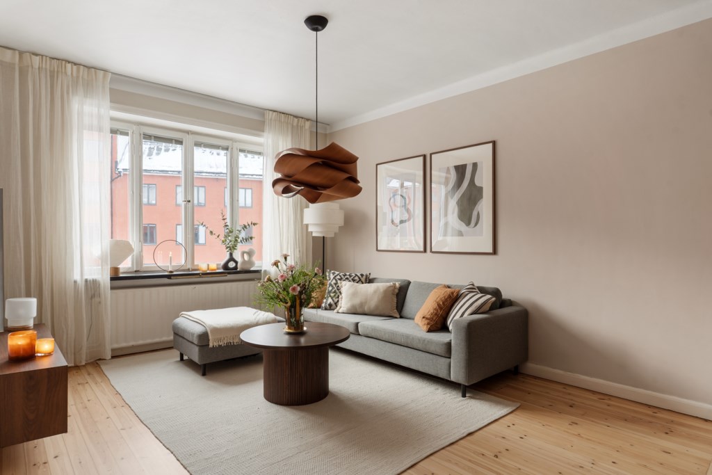 Här bor ni i en fullt utrustad bostad med diskmaskin, stora och öppna sällskapsytor samt enskilt sovrum med plats för stor säng. Fina tidstypiska inslag präglar detta boende genom generös takhöjd, stora spröjsade fönster i fil och fina golv.