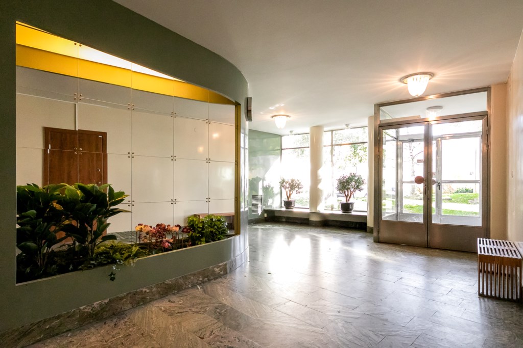 Lägenheten har en öppen och social planlösning mellan kök och vardagsrum som skapar en luftig känsla och goda möbleringsmöjligheter här har man också bevarat funkischarmen med skjutdörrspartier/snickerier fönster och balkong. De stora fönsterpartierna släpper in rikligt med ljus och förstärker den redan generösa rymden. Från vardagsrummet når du balkongen – en perfekt plats för morgonkaffet eller avkoppling.