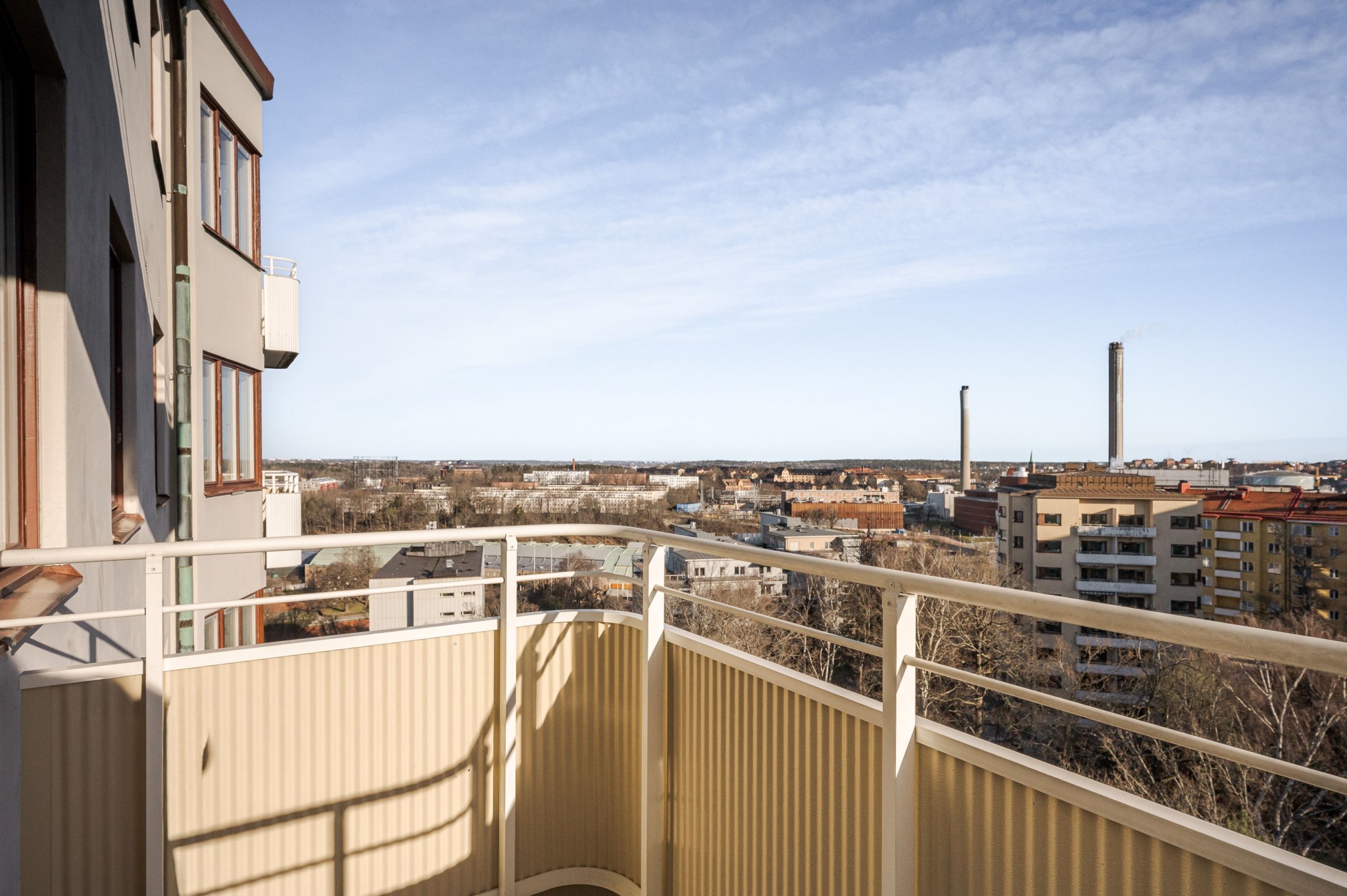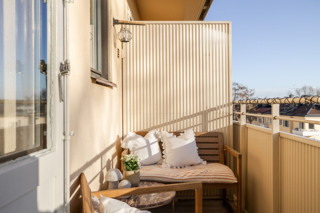 Till bostaden hör en härlig balkong med milsvid utsikt över staden. Här finns plats för balkongmöbler och växter med goda möjligheter att skapa en trivsam utomhusmiljö.