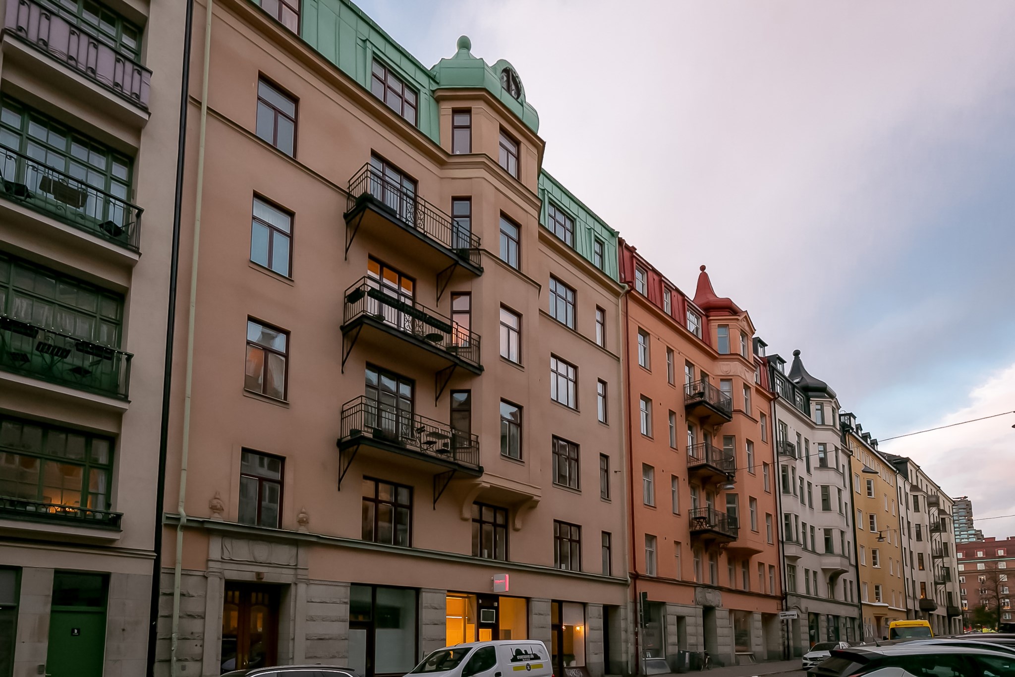 Drömtvåa med sekelskiftescharm högt upp i huset med solig balkong