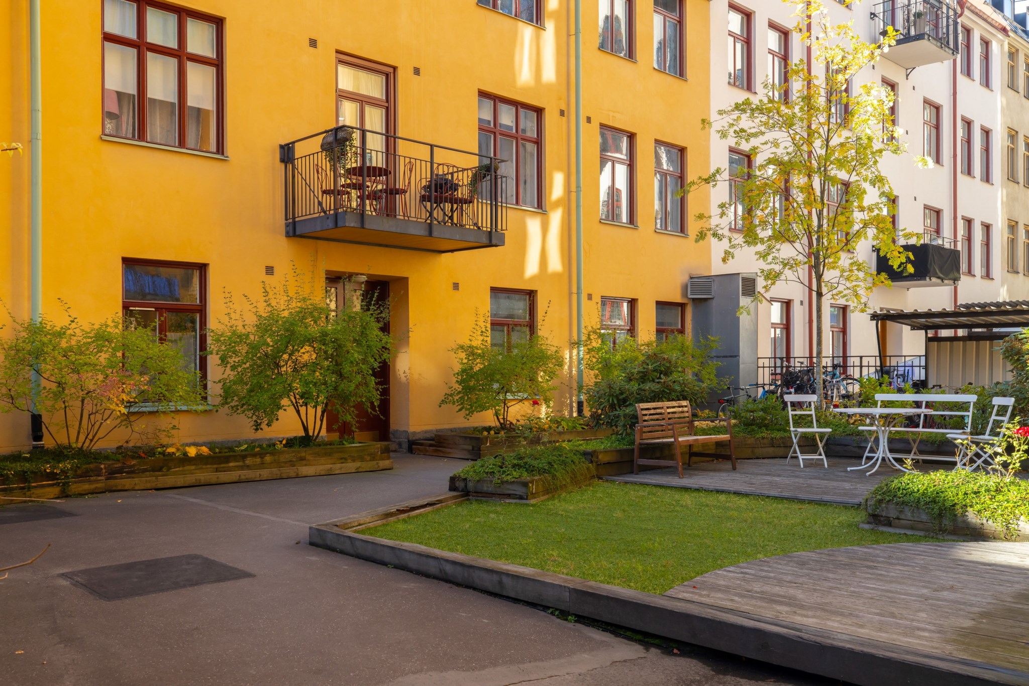 Föreningen har inga större renoveringar planerade mer än byte av uttjänt trä på innergården (kontrollerat 2024-10-18).GårdsplatsFöreningen har två gemensamma och lugna innergårdar.ParkeringI området råder boendeparkering.Gemensamma utrymmen- Tvättstuga