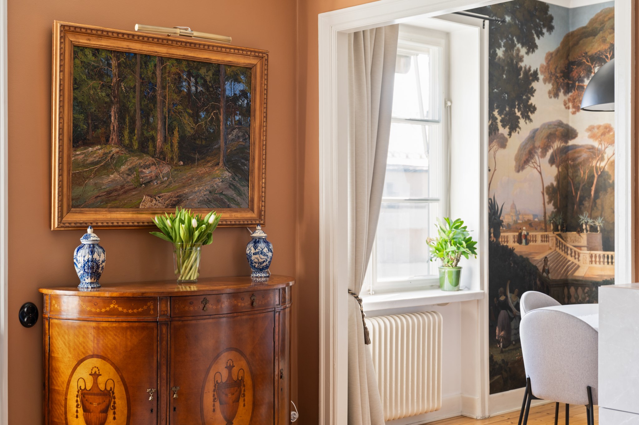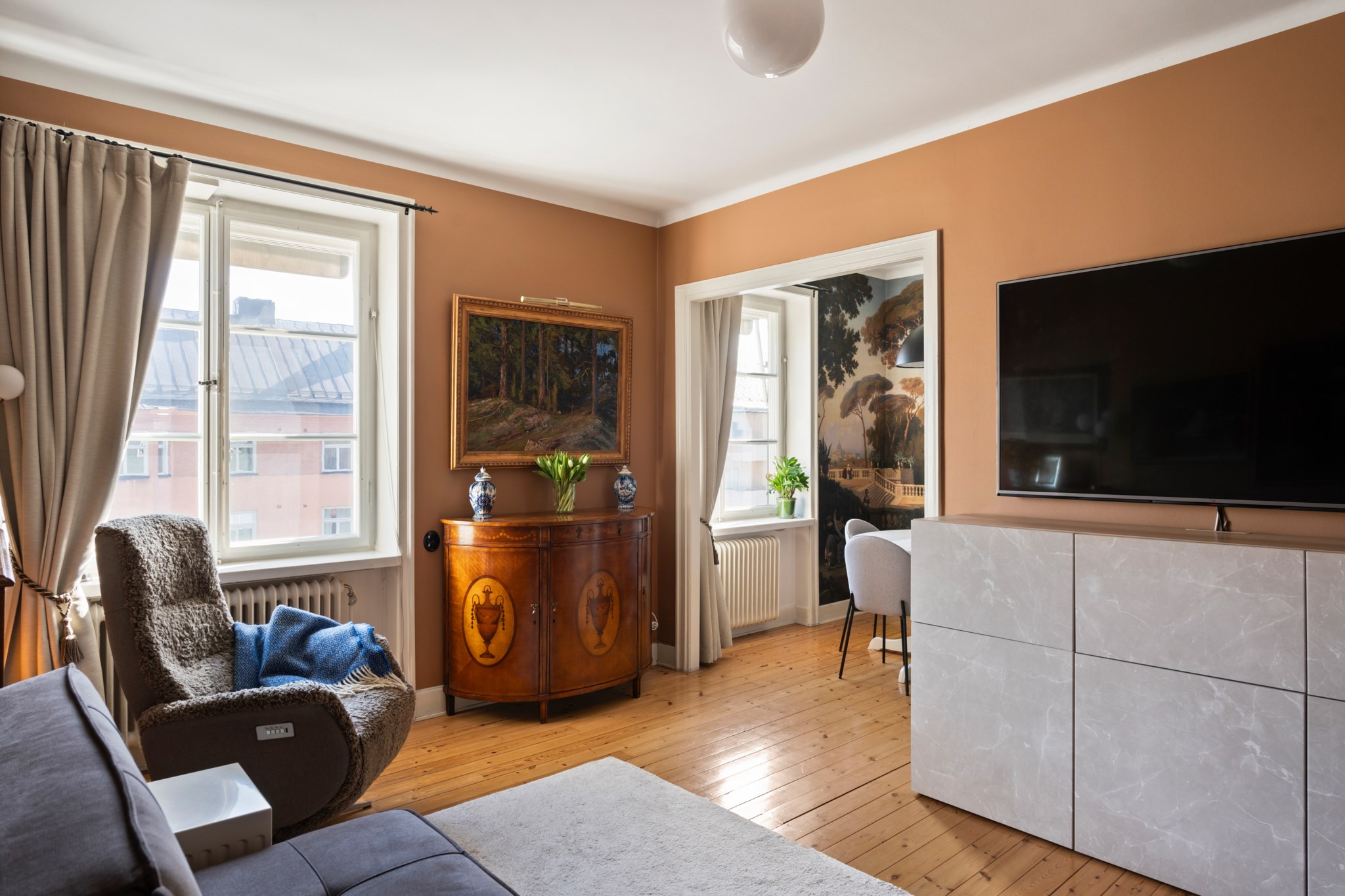 Välkommen till denna smakfulla och unika bostad där klassisk charm möter modern funktionalitet på bästa sätt. Här bor du i ett hem med genomgående fina materialval, generösa ljusinsläpp från tidstypiska fönsterpartier och en varm, inbjudande atmosfär.