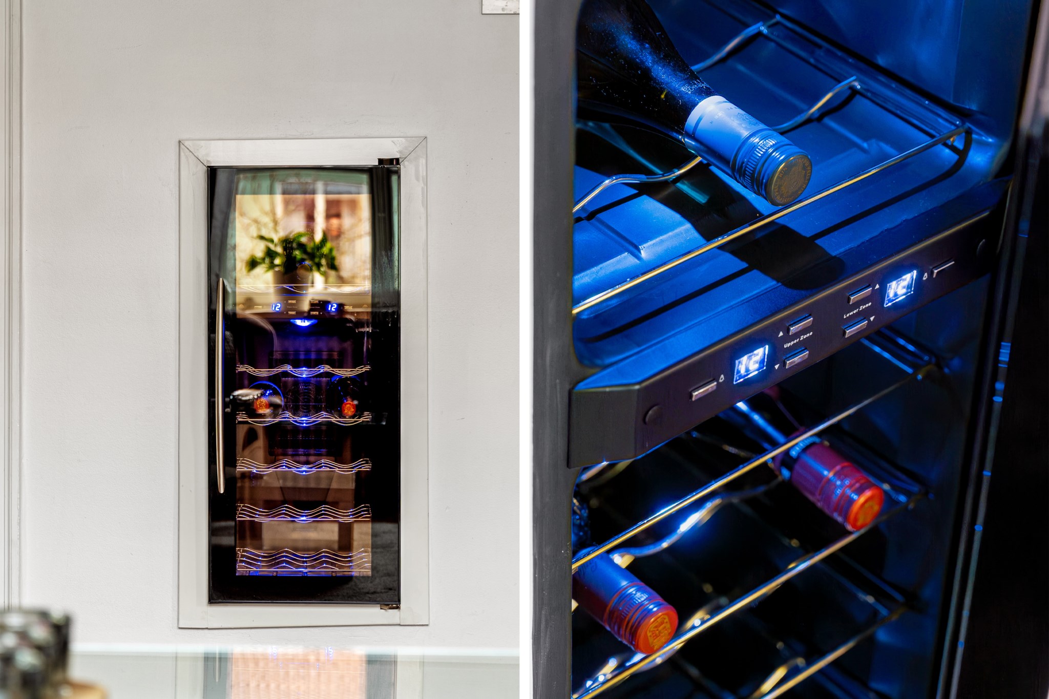 Rymligt vardagsrum med vita väggar och ekparkett. Plats för större soffgrupp och matgrupp samt övrig inredningsmöbel om så önskas. Det finns även en vinkyl, perfekt för vinälskaren. Härligt ljusflöde genom stort fönster.