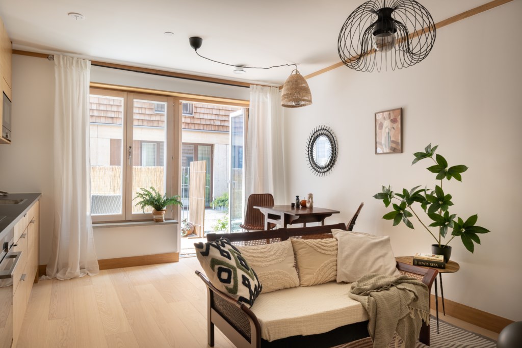 Golvvärme i hela lägenheten med rumsstyrda kontrollpaneler.