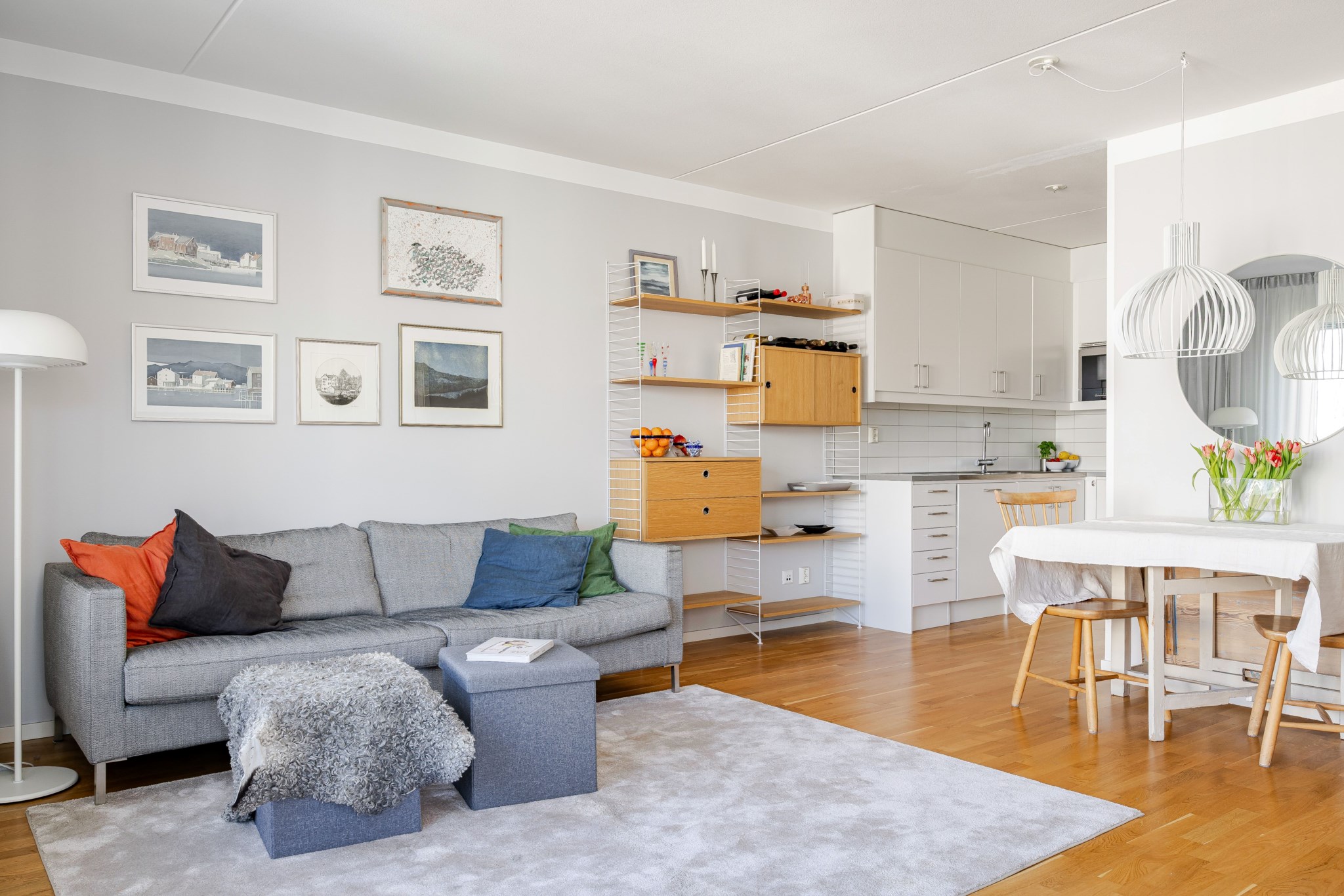 Välkommen till denna moderna och välplanerade tvåa om 49 kvm på Högviltsgatan 5 i attraktiva Norra Djurgårdsstaden. Här erbjuds en yteffektiv planlösning med fint ljusinsläpp, sociala ytor och ett stilrent, funktionellt kök. Vardagsrummet utgör hemmets naturliga samlingspunkt, och från den inglasade balkongen njuter du av utsikt mot föreningens grönskande innergård samt Husarviken och Lill-Jansskogen - en härlig plats att använda året runt. Bostaden har ett lugnt och naturnära läge med Stora Skuggans grönska runt hörnet, samtidigt som city och Östermalms utbud finns på bekvämt avstånd.