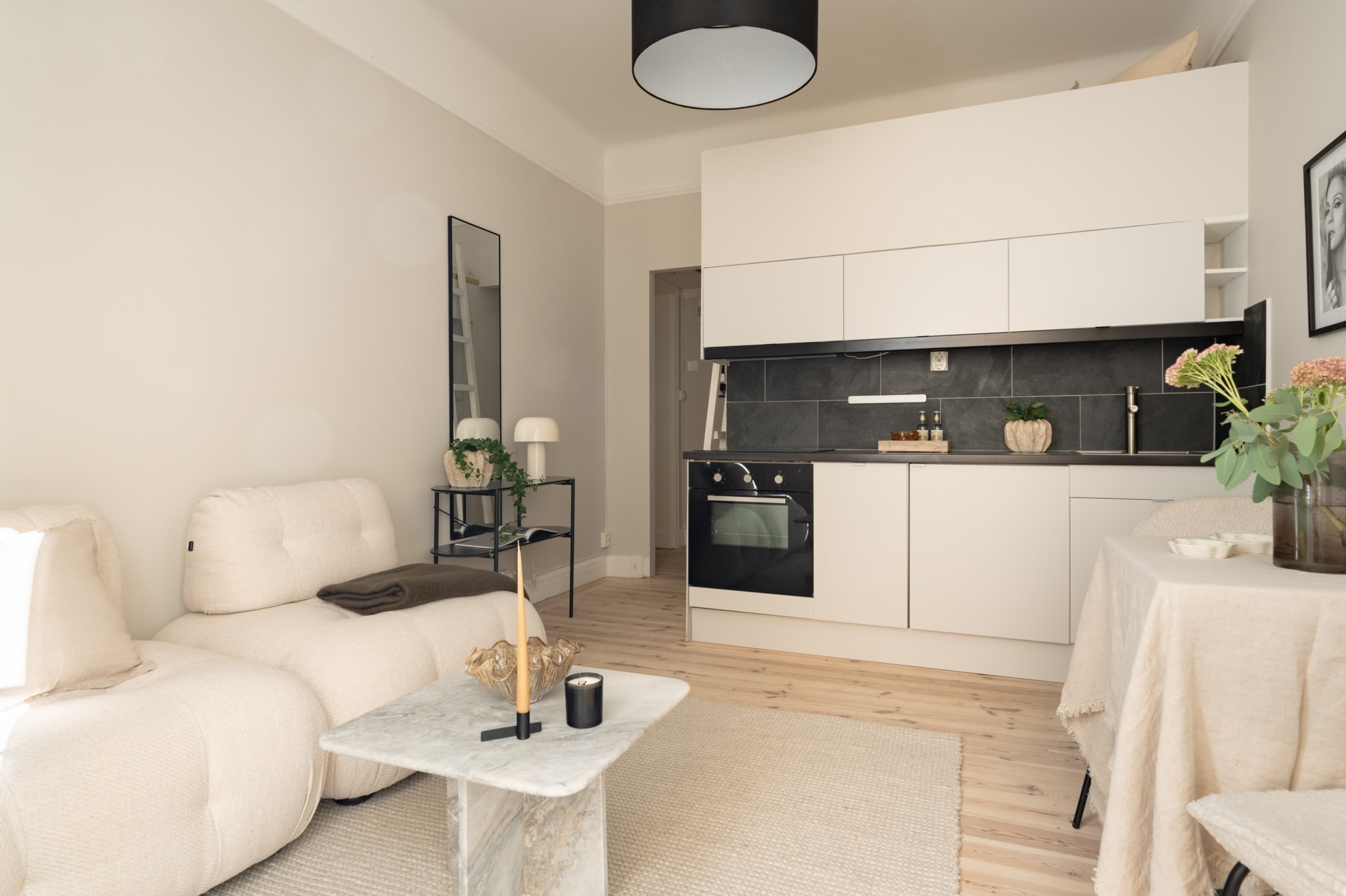 Varmt välkommen till denna välplanerade etta med en riktig drömterrass. Lägenheten bjuder på en härlig mix av klassiska originaldetaljer och moderna inslag. Det stora fönstret och den öppna planlösningen ger ett ljust och luftigt intryck. Köksdelen är praktisk med gott om förvaring, allrum som rymmer både köksbord och soffa, ett välplanerat sovloft och kaklat badrum. Via allrummet är du den stora uteplatsen som rymmer både en stor utegrupp och växter.