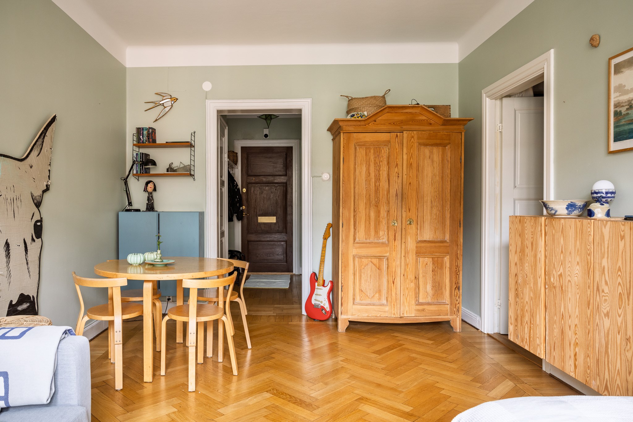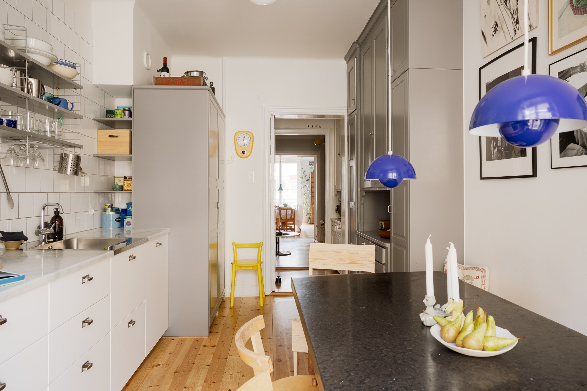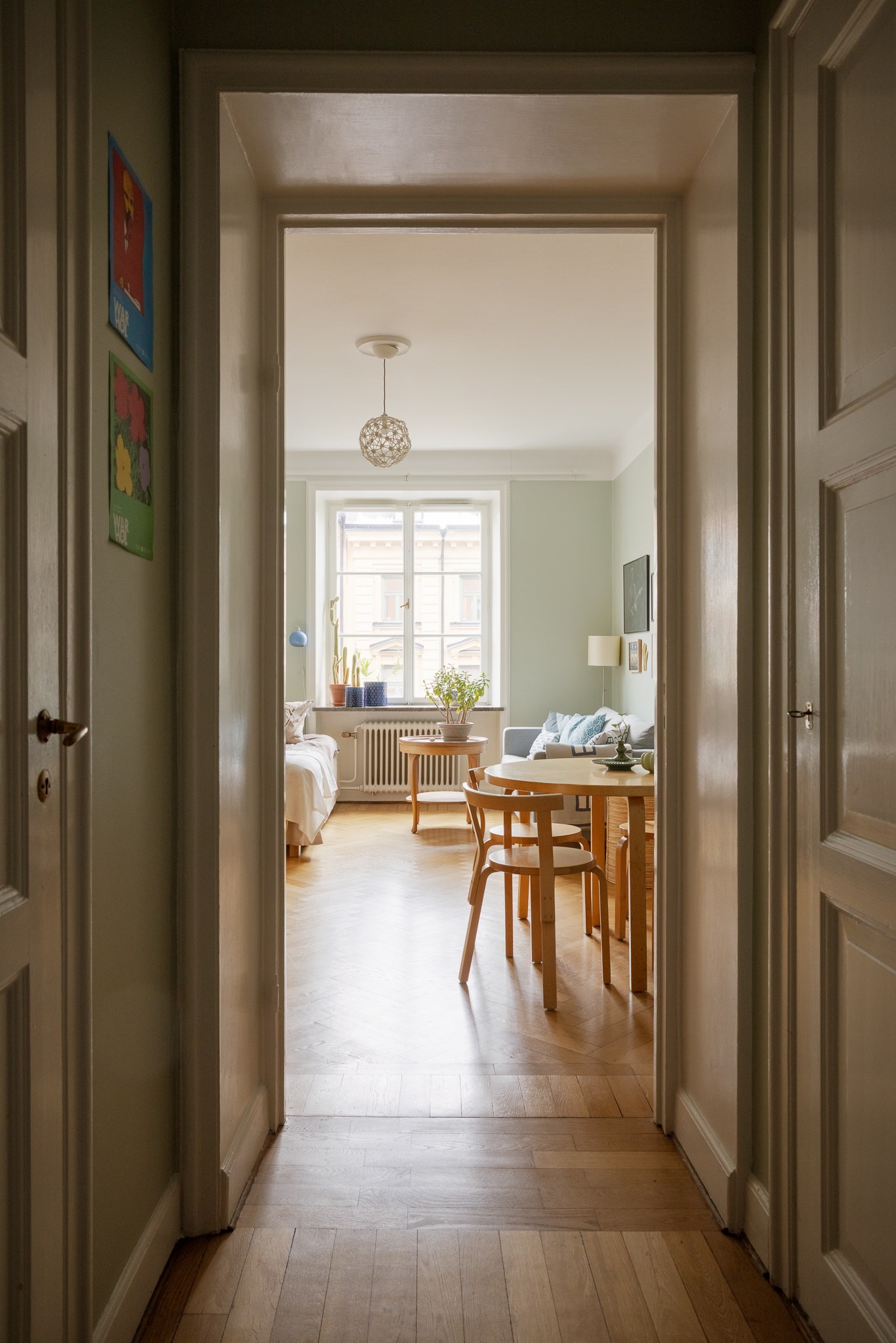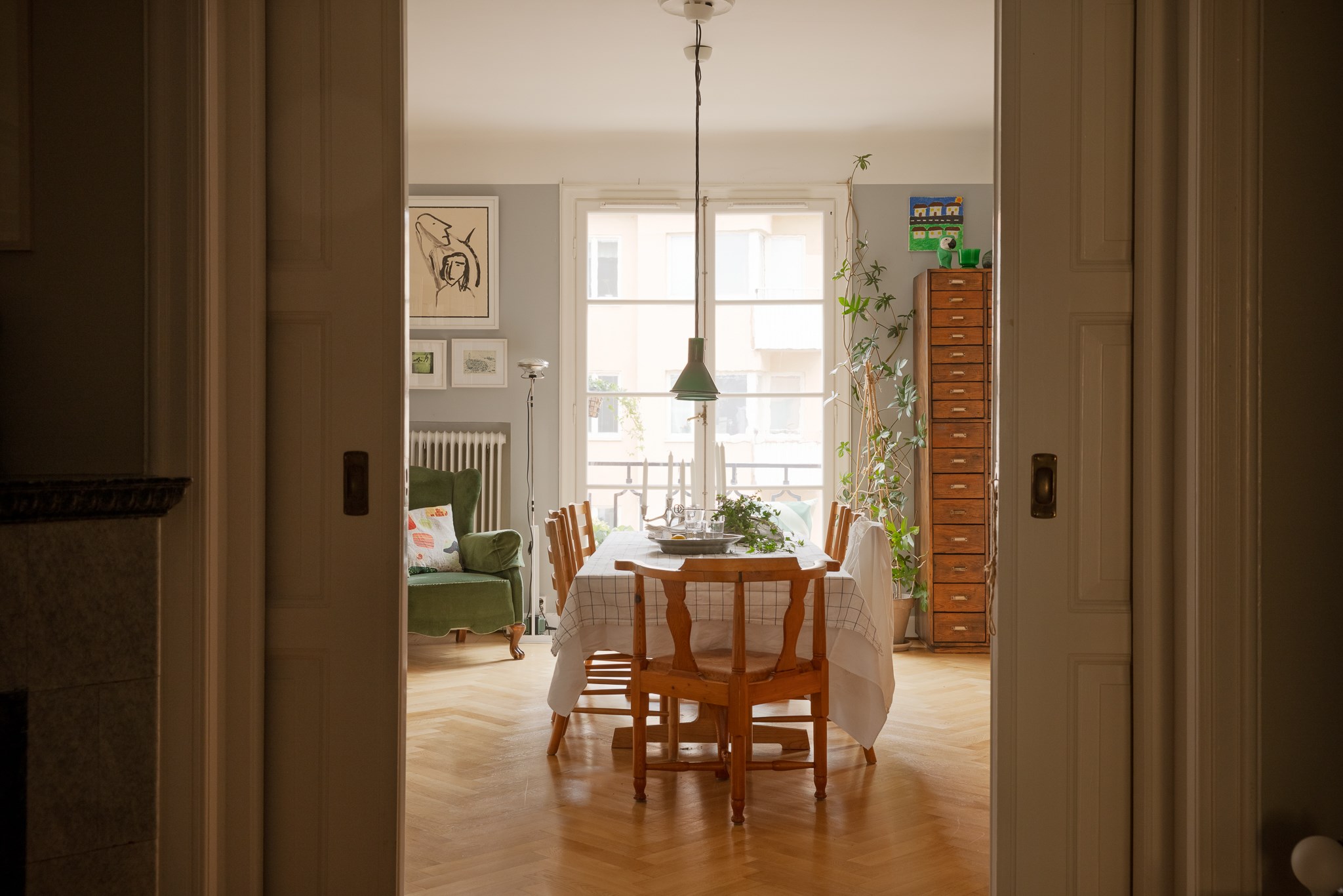 Planlösningen är flexibel och kan nyttjas på flera sätt tack vare två separata ytterdörrar. Här finns möjlighet att skapa en separat uthyrningsdel, använda ett rum som kontor eller disponera bostaden med två sovrum och möjlighet till ett fjärde genom att flytta köket till den inre hallen. Ett hem som passar såväl barnfamiljen som villaparet som söker ett bekvämt cityboende – hissen rymmer barnvagn och inga trappor behöver tas.