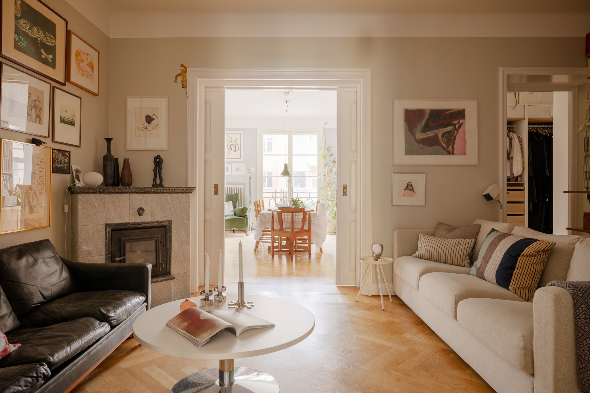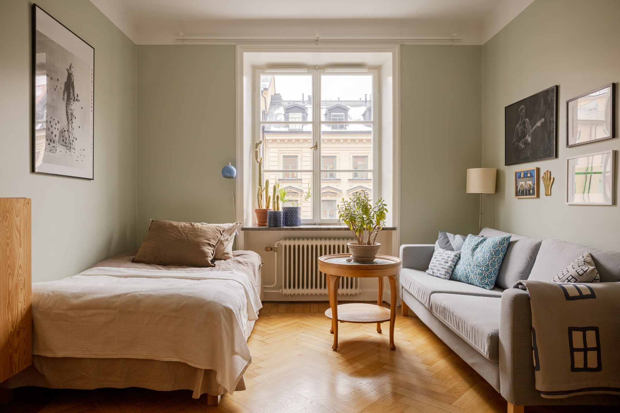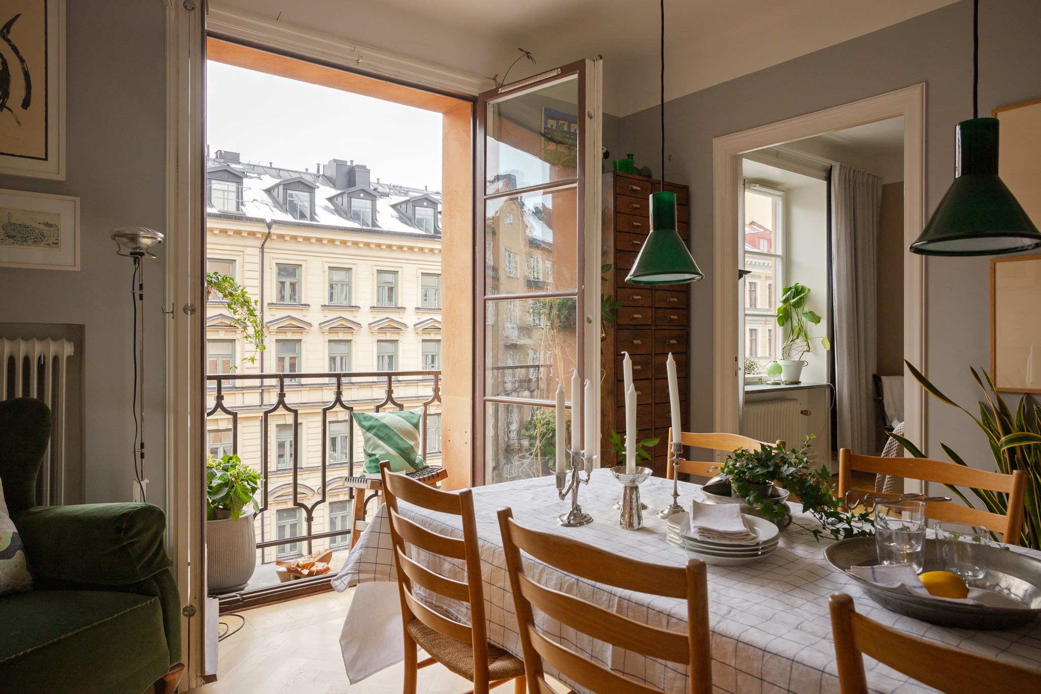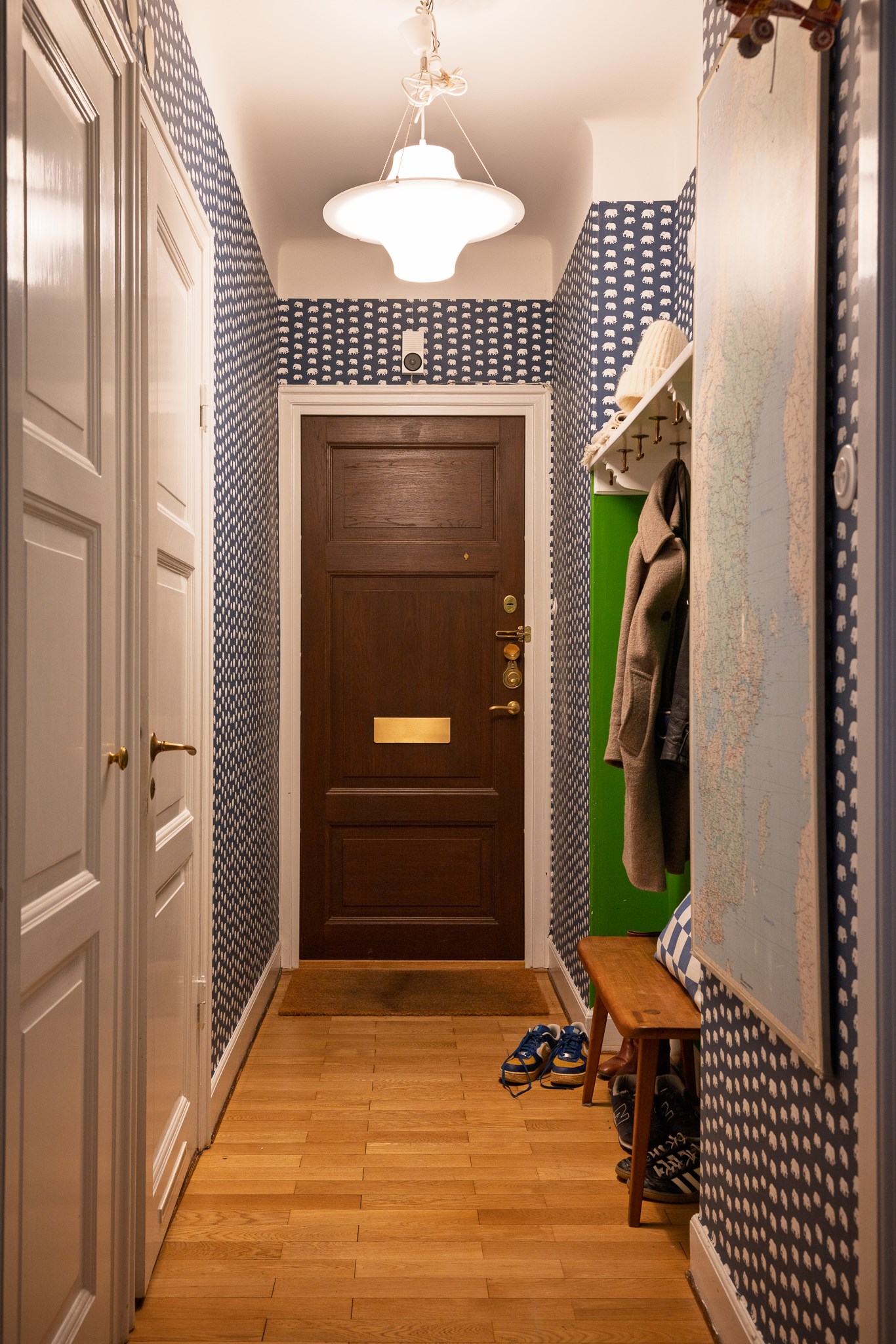 Planlösningen är flexibel och kan nyttjas på flera sätt tack vare två separata ytterdörrar. Här finns möjlighet att skapa en separat uthyrningsdel, använda ett rum som kontor eller disponera bostaden med två sovrum och möjlighet till ett fjärde genom att flytta köket till den inre hallen. Ett hem som passar såväl barnfamiljen som villaparet som söker ett bekvämt cityboende – hissen rymmer barnvagn och inga trappor behöver tas.