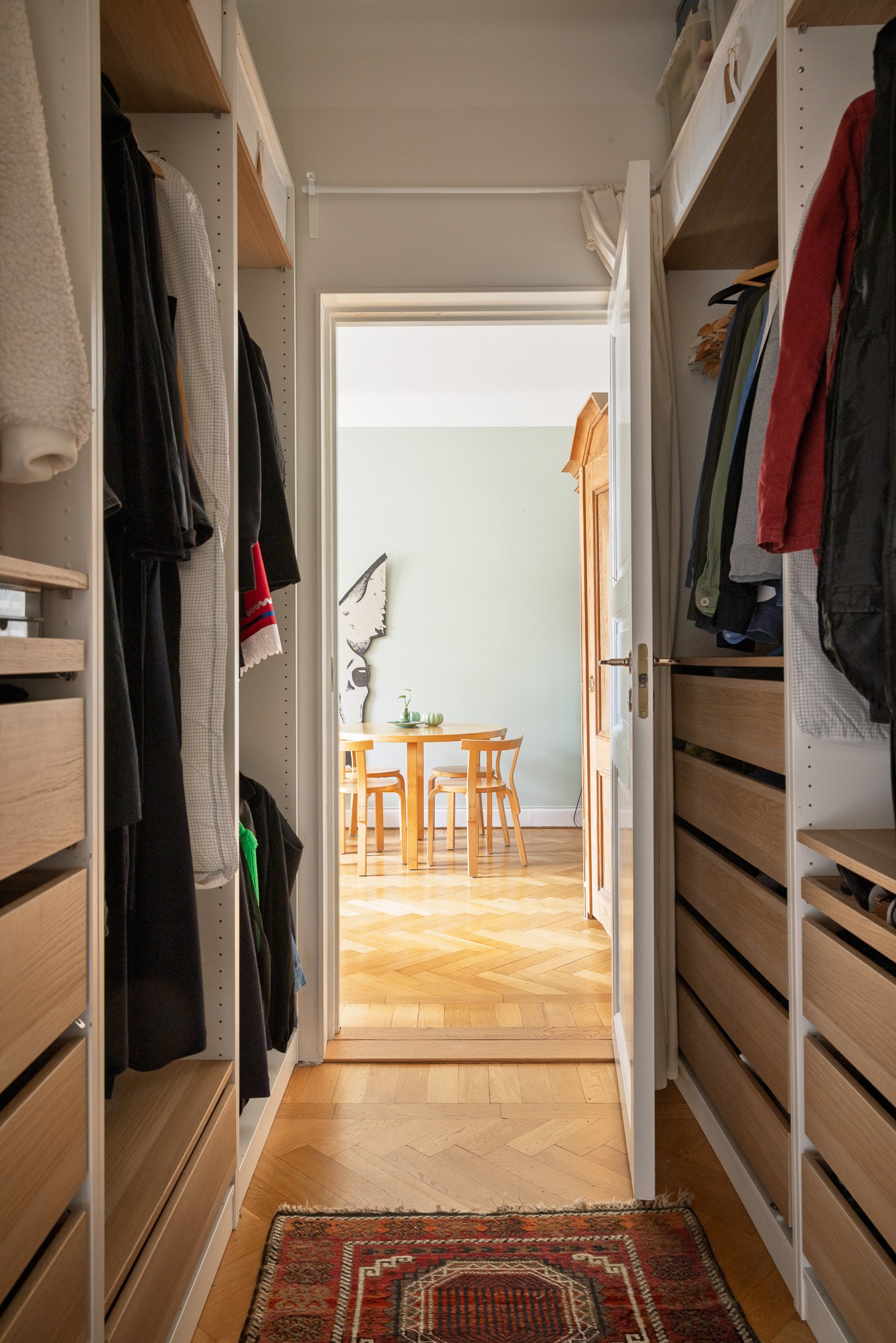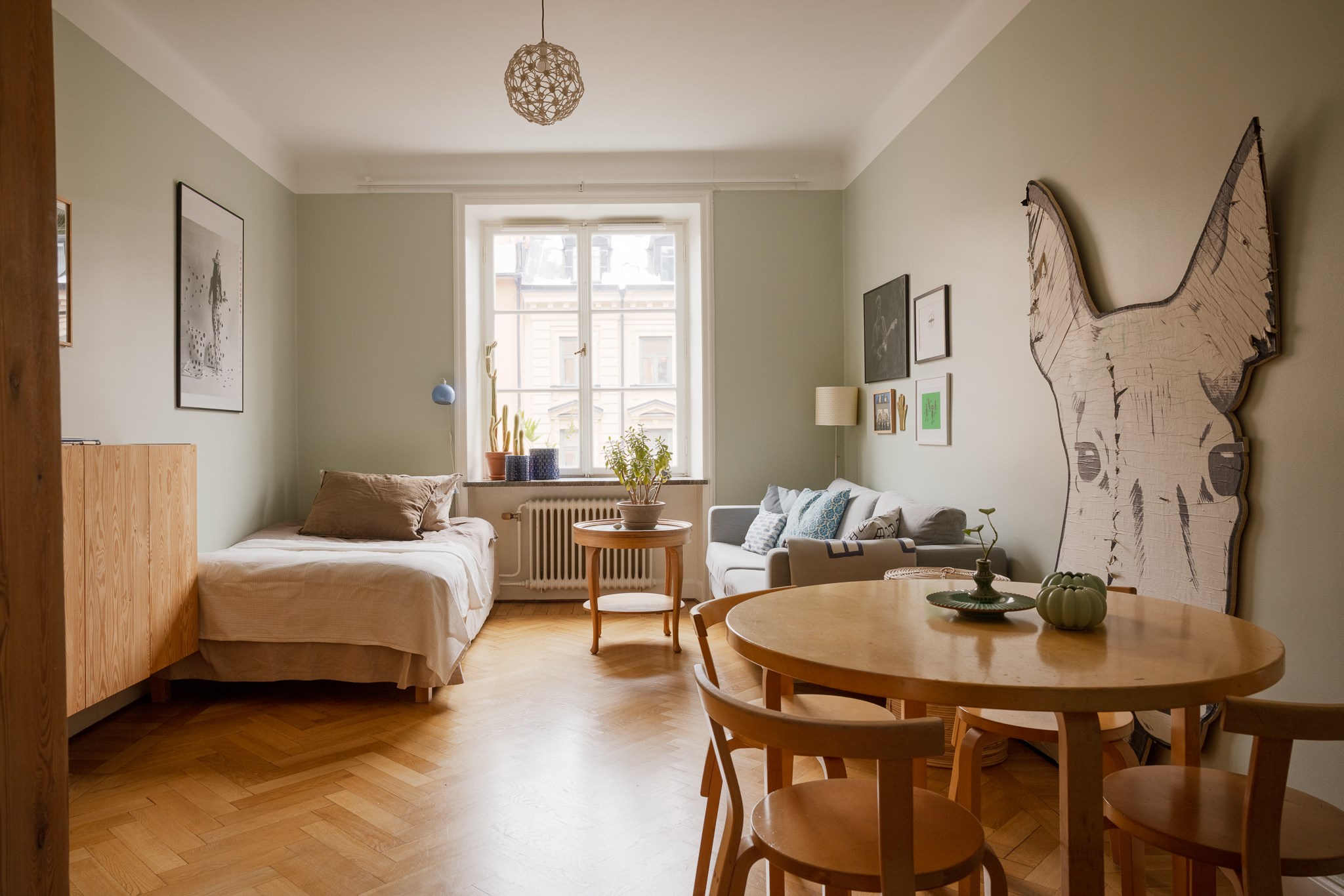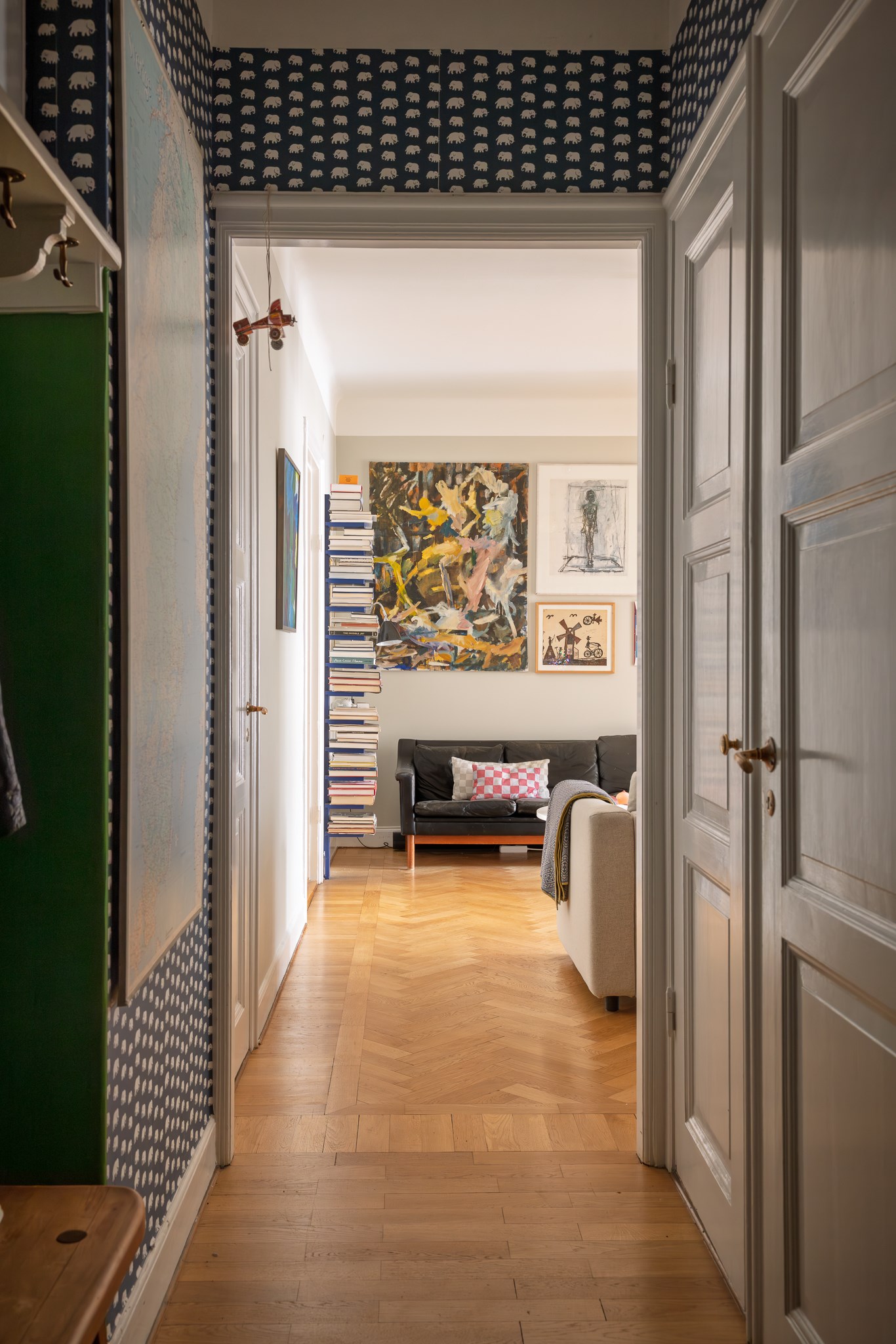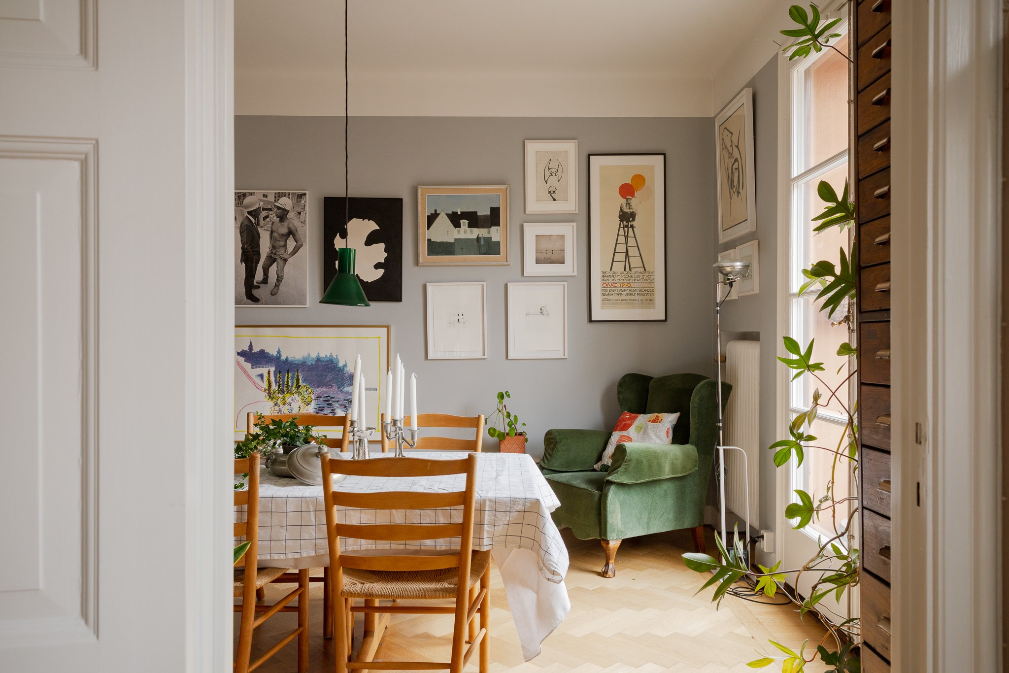 Planlösningen är flexibel och kan nyttjas på flera sätt tack vare två separata ytterdörrar. Här finns möjlighet att skapa en separat uthyrningsdel, använda ett rum som kontor eller disponera bostaden med två sovrum och möjlighet till ett fjärde genom att flytta köket till den inre hallen. Ett hem som passar såväl barnfamiljen som villaparet som söker ett bekvämt cityboende – hissen rymmer barnvagn och inga trappor behöver tas.