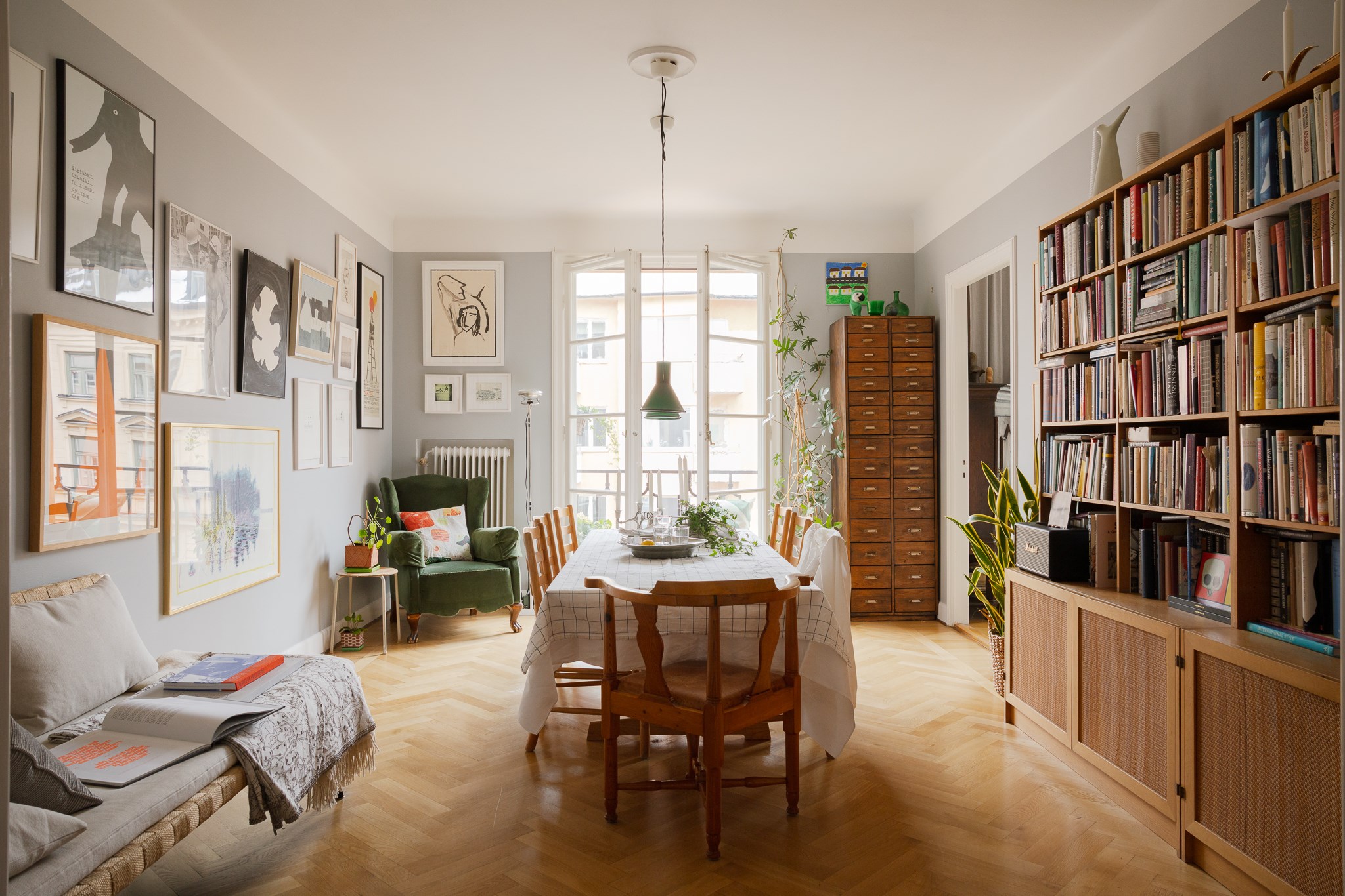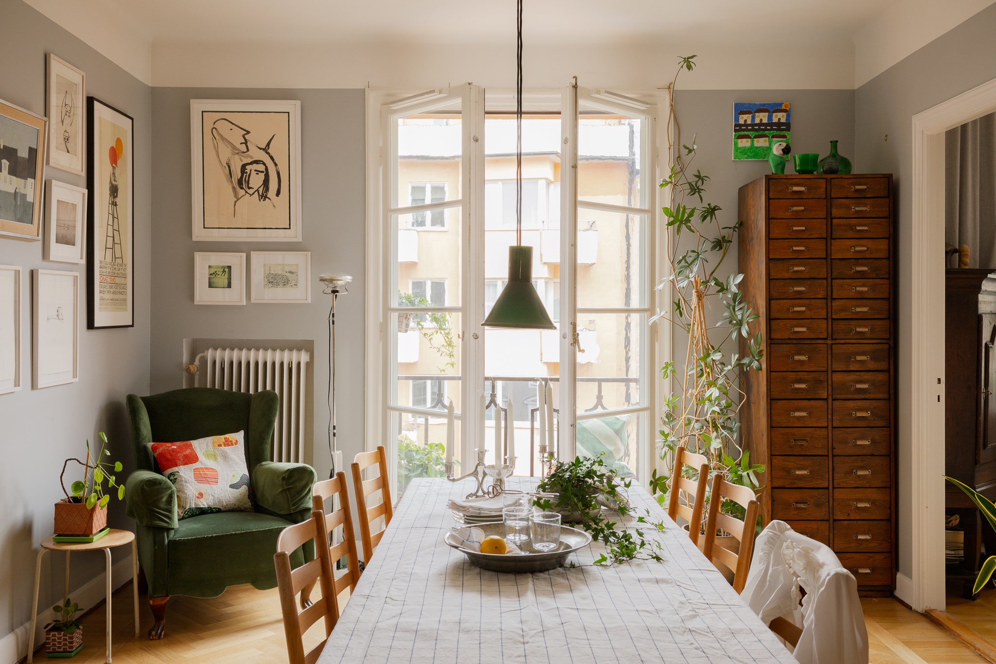 Välkommen till en mycket fin och rymlig 3,5:a om 111 kvm som enkelt kan byggas om till en 4:a för den som önskar. Bostaden präglas av vackra 20-talsdetaljer såsom fiskbensparkett, serveringsskåp, speglade dörrar, fungerande öppen spis och en elegant fransk balkong från byggåret. På senare år har även en större balkong mot innergården tillkommit som ger ytterligare utemiljö.