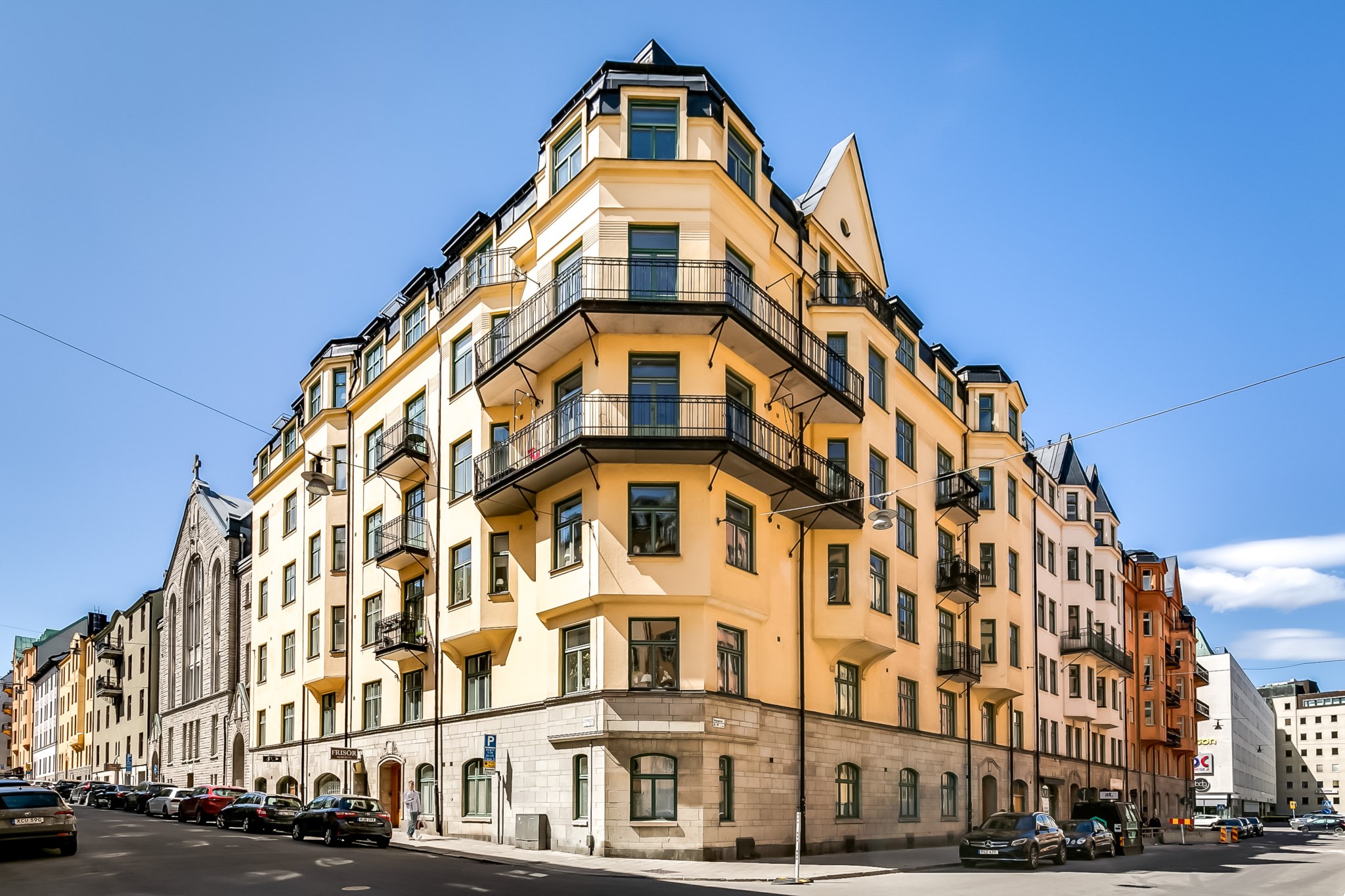 2014 Takrenovering samt målning av hörnlägenheternas fönster och balkongdörrar mot Hagagatan.