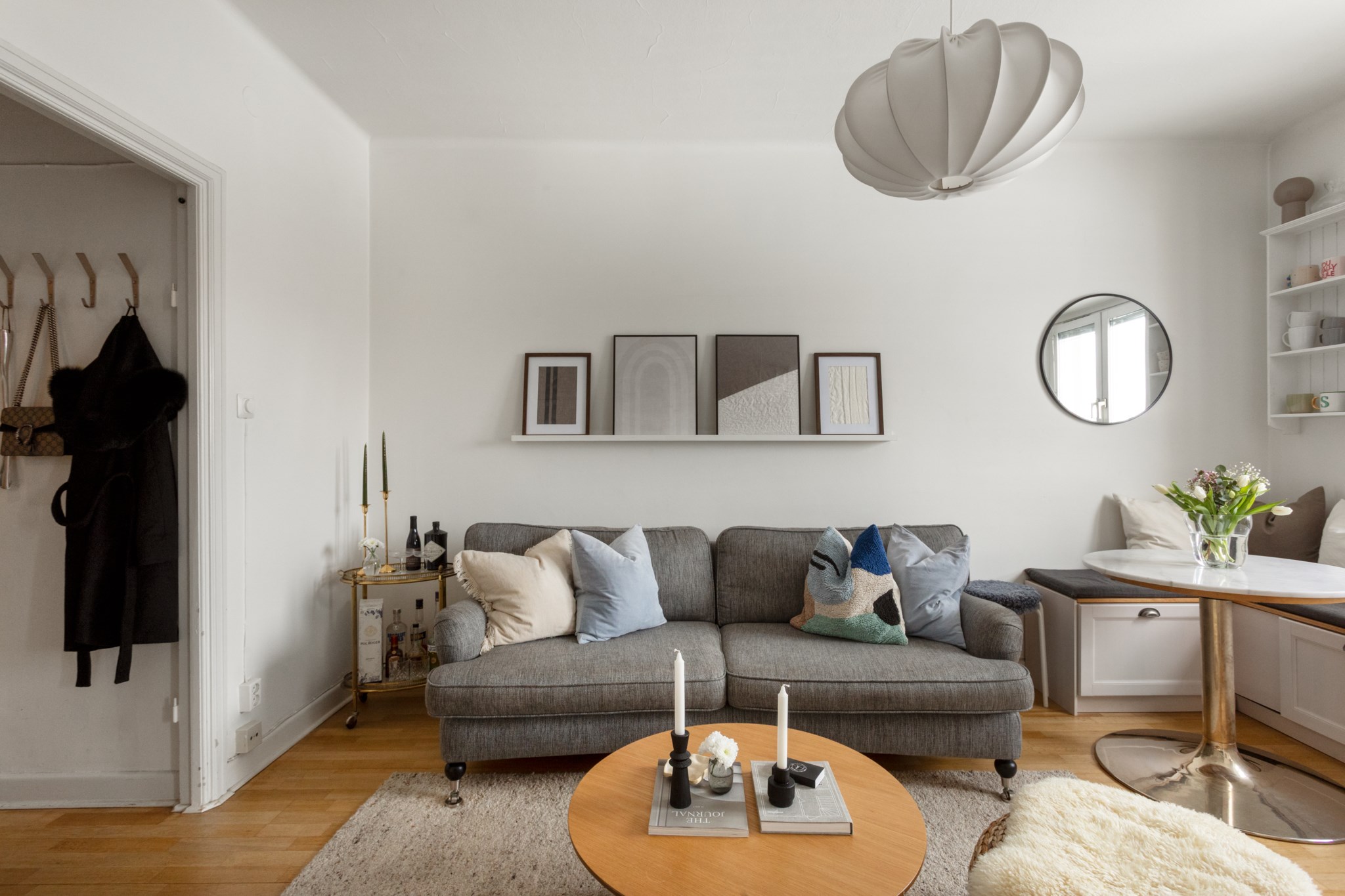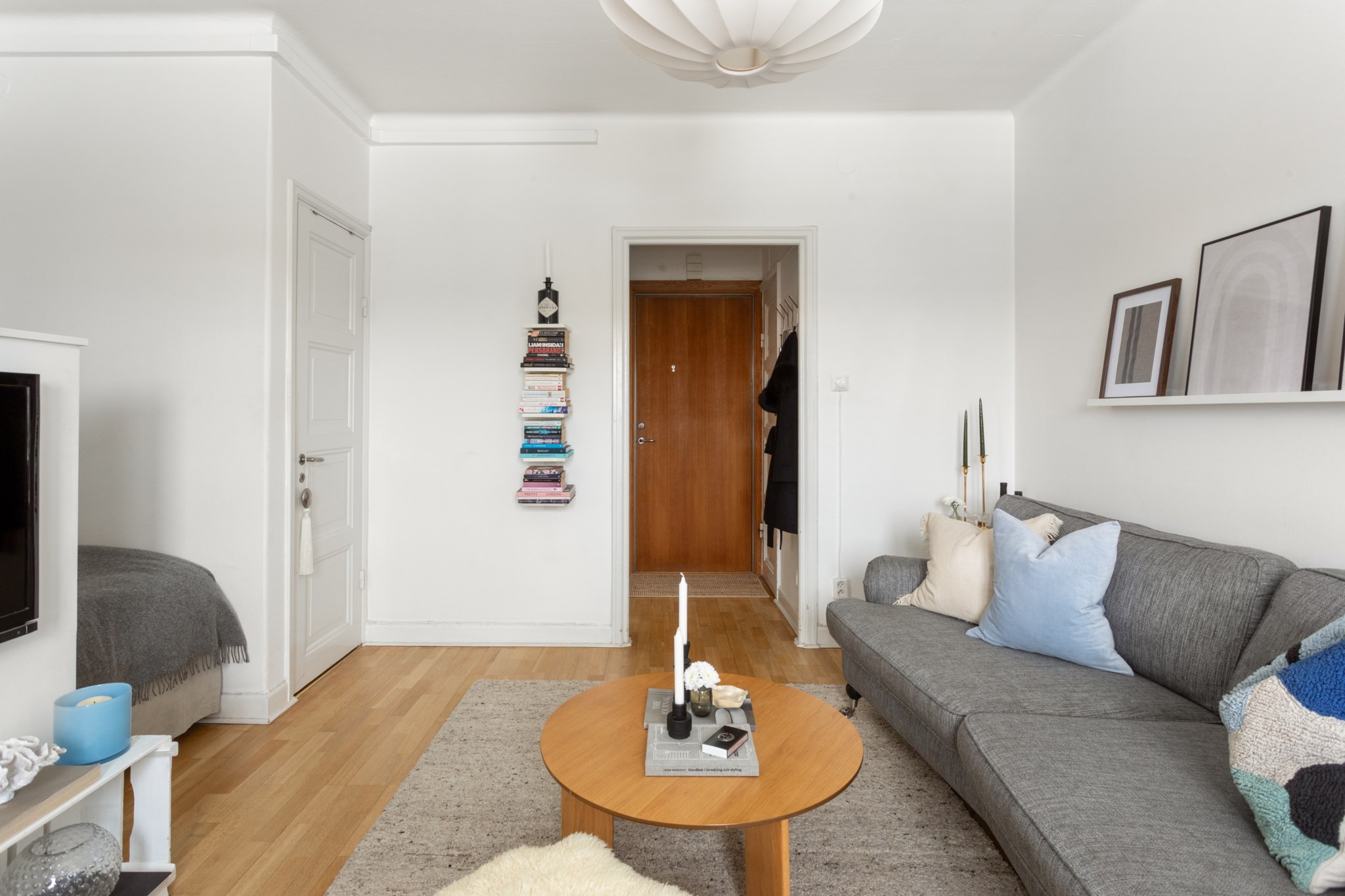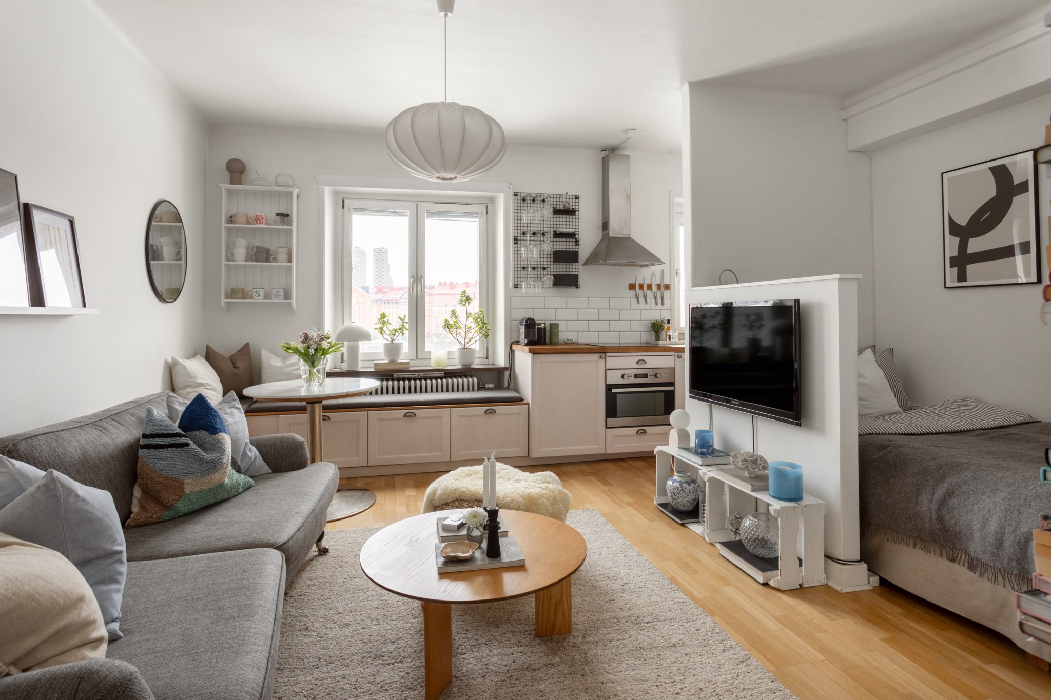 Lägenheten om 27,5 kvm är välplanerad och erbjuder ett härligt allrum, bra utrustat kök, sovalkov, dubbla klädkammare och ett stort badrum. Bostaden präglas av generöst ljusinsläpp från fina fönster och genomgående ljusa ytskikt som tillsammans med parkettgolv skapar en modern och trivsam känsla. Det välplanerade allrummet erbjuder gott om plats för både soffgrupp och matplats. Smakfull och praktiskt platsbyggd kökssoffa som skapar en härlig social yta. Den avskilda sovalkoven ger en naturlig och ombonad sovdel. Bra förvaringsmöjligheter i bostaden med två klädkammare.