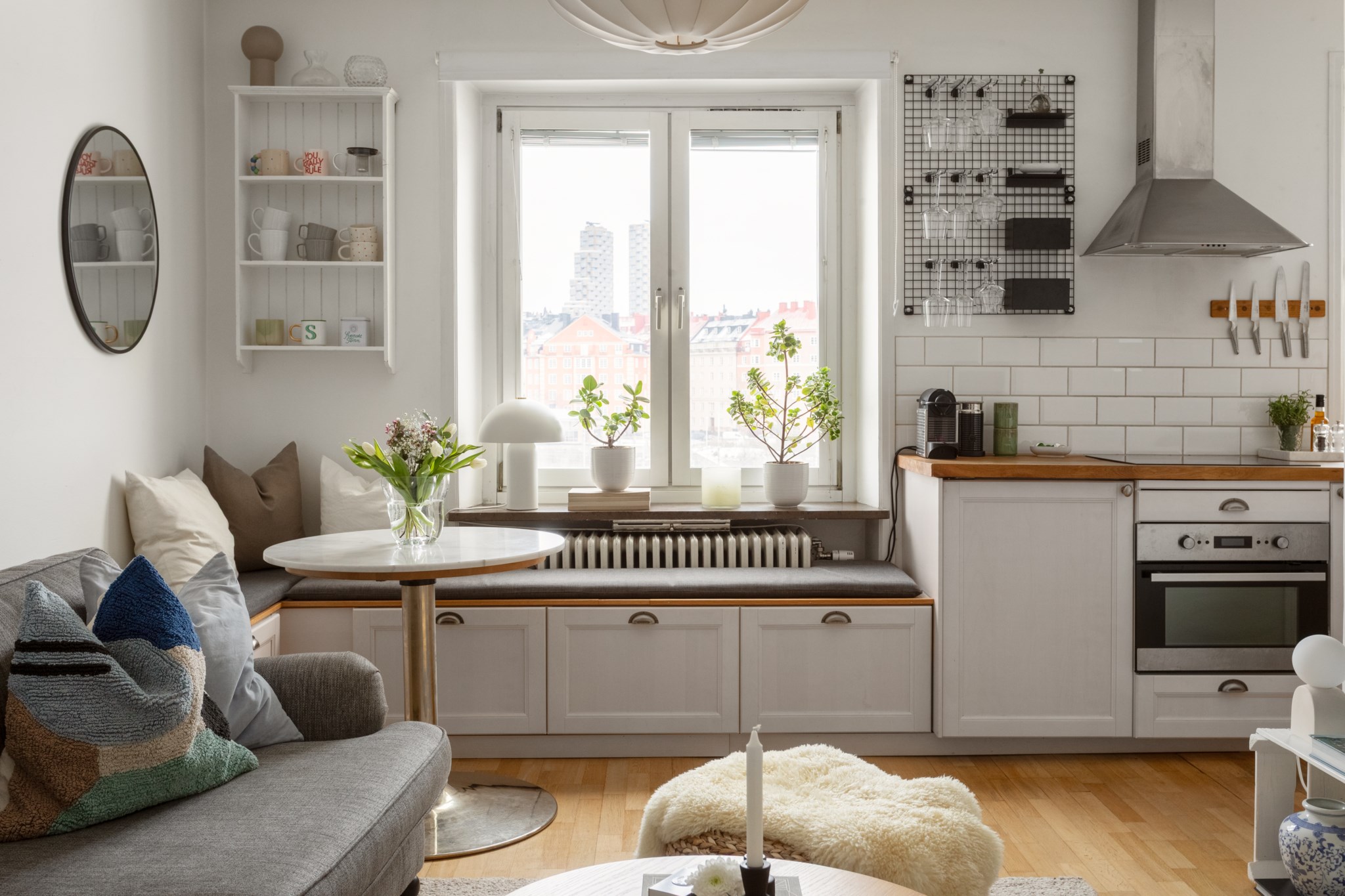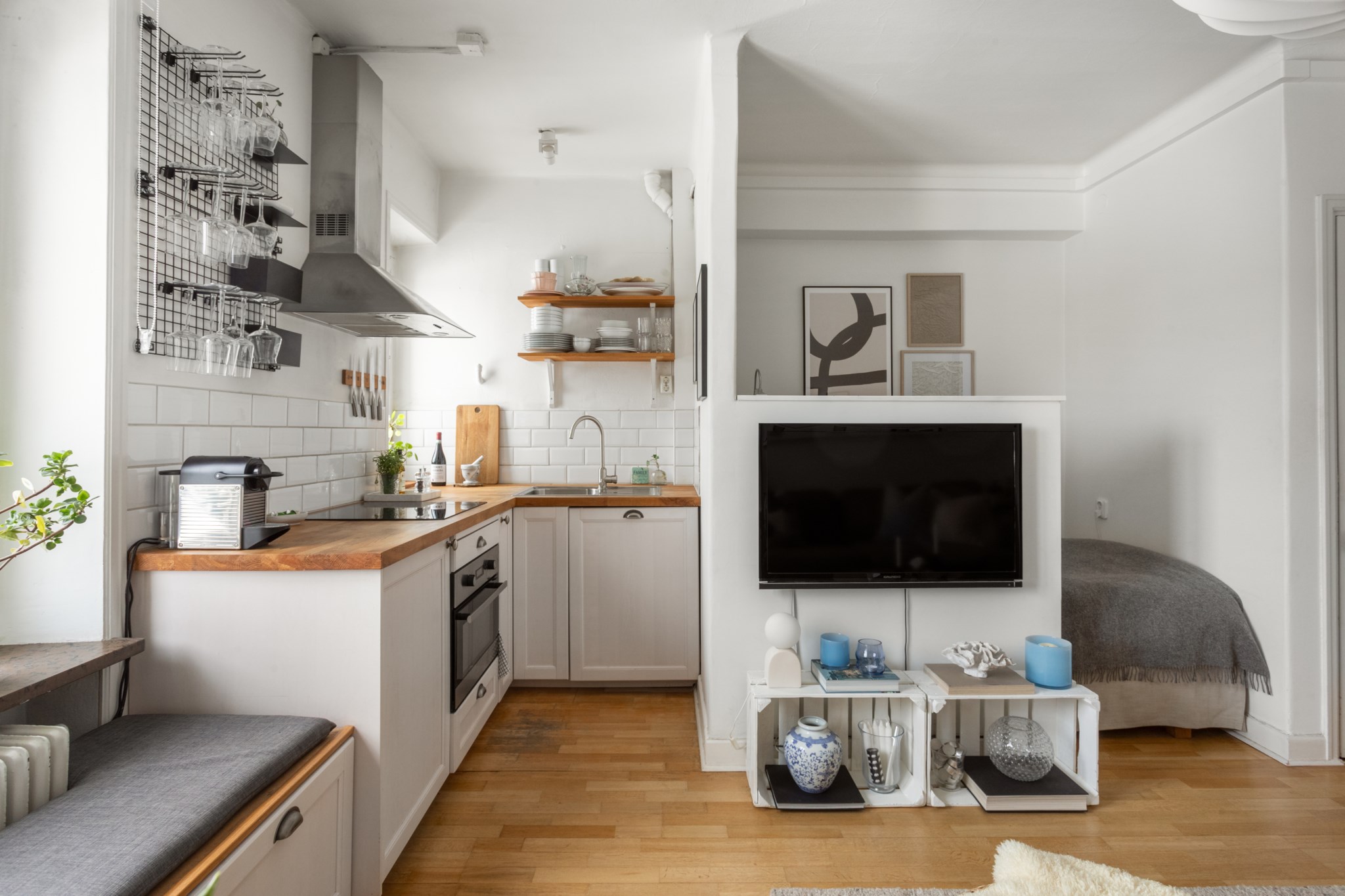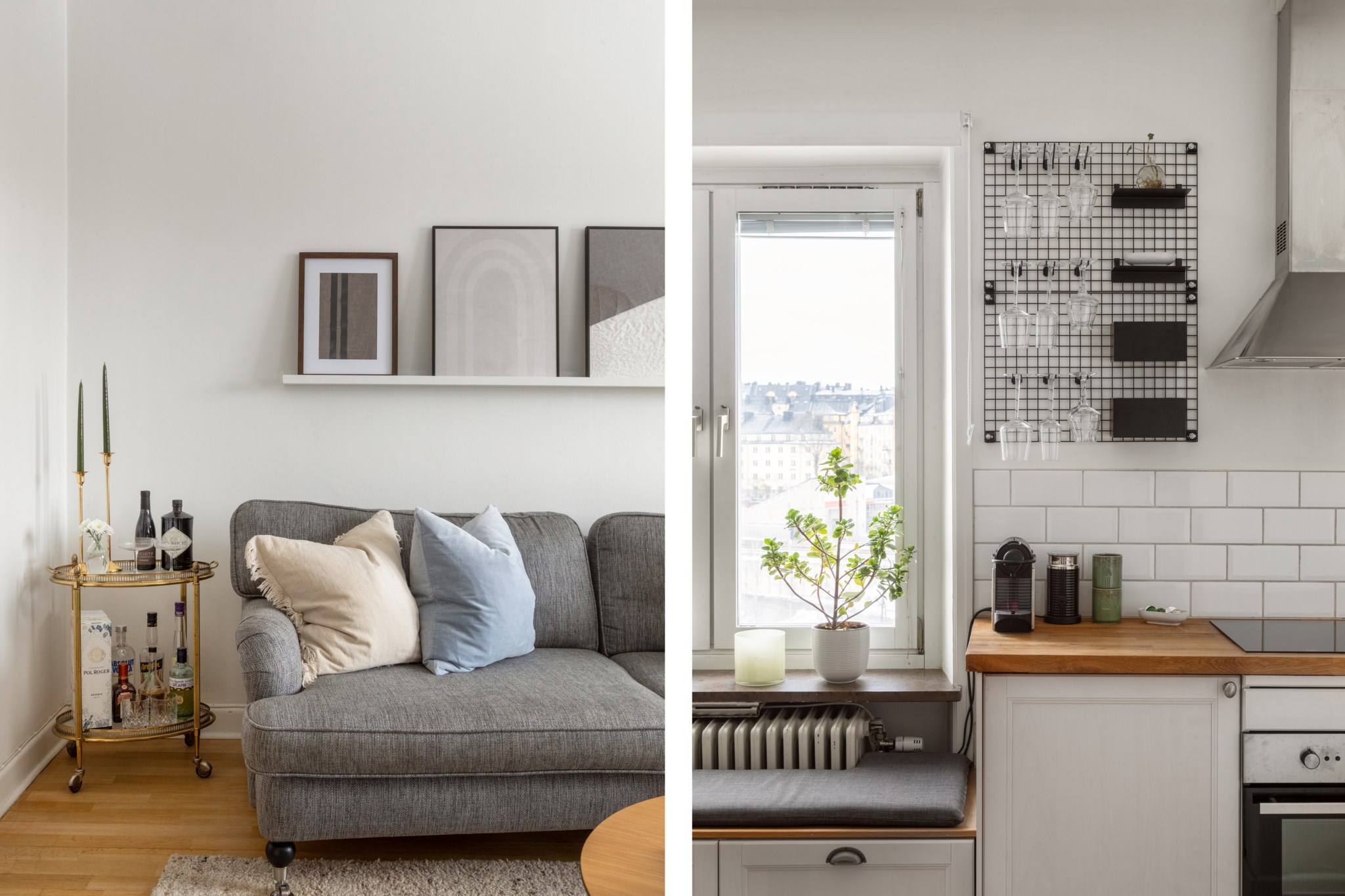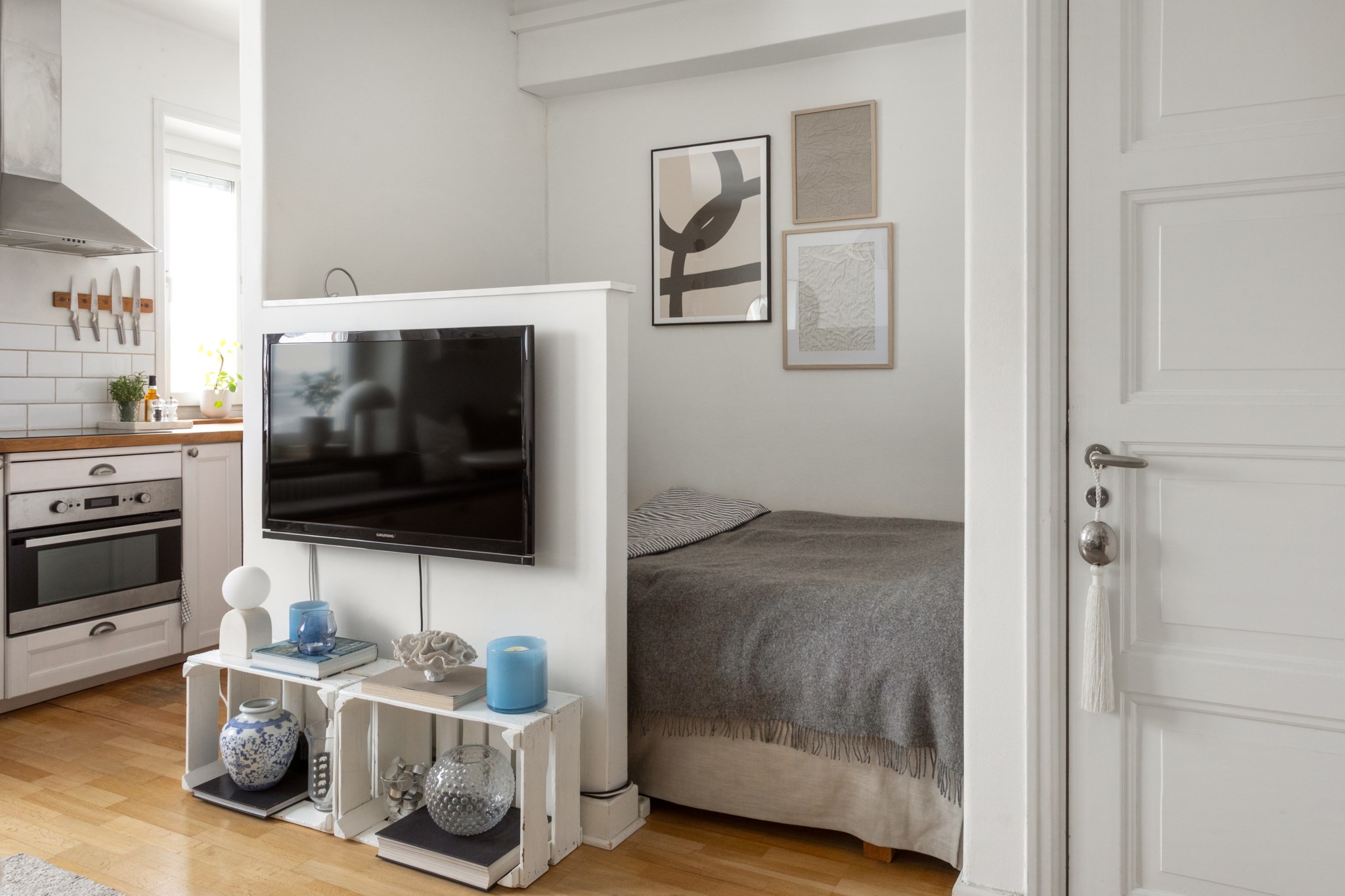 Lägenheten om 27,5 kvm är välplanerad och erbjuder ett härligt allrum, bra utrustat kök, sovalkov, dubbla klädkammare och ett stort badrum. Bostaden präglas av generöst ljusinsläpp från fina fönster och genomgående ljusa ytskikt som tillsammans med parkettgolv skapar en modern och trivsam känsla. Det välplanerade allrummet erbjuder gott om plats för både soffgrupp och matplats. Smakfull och praktiskt platsbyggd kökssoffa som skapar en härlig social yta. Den avskilda sovalkoven ger en naturlig och ombonad sovdel. Bra förvaringsmöjligheter i bostaden med två klädkammare.