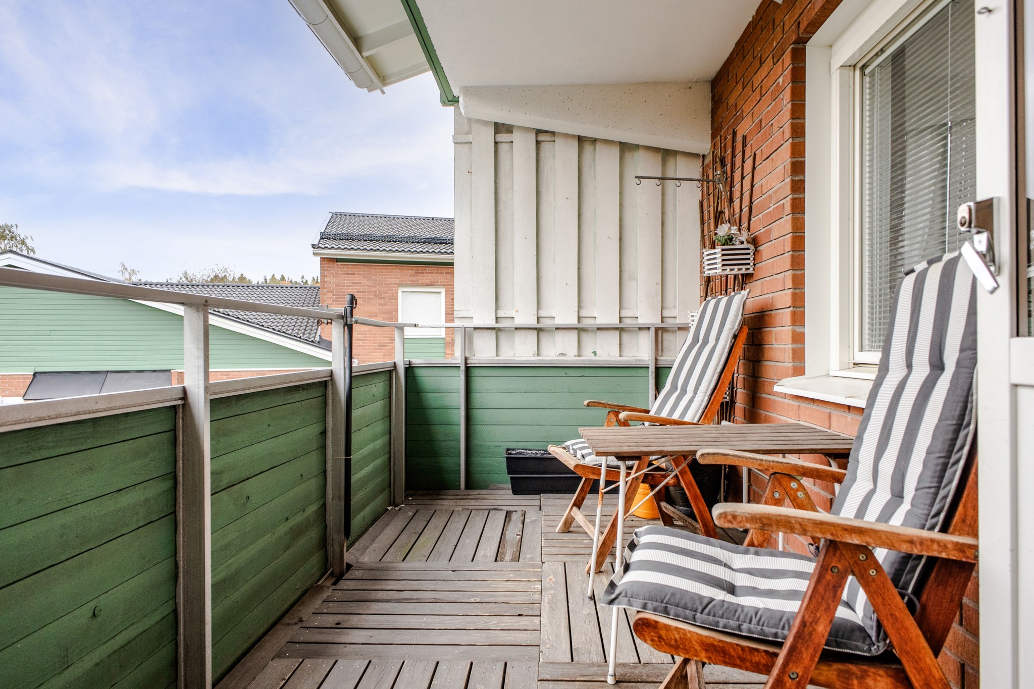 Vardagsrummet bjuder in till både umgänge och avkoppling. Ljusinsläpp från stort fönsterparti och utgång till balkong. Från balkongen njuter ni av solen och det fria läget utan direkt insyn. Till bostaden hör också ett förråd i nära anslutning till huset.