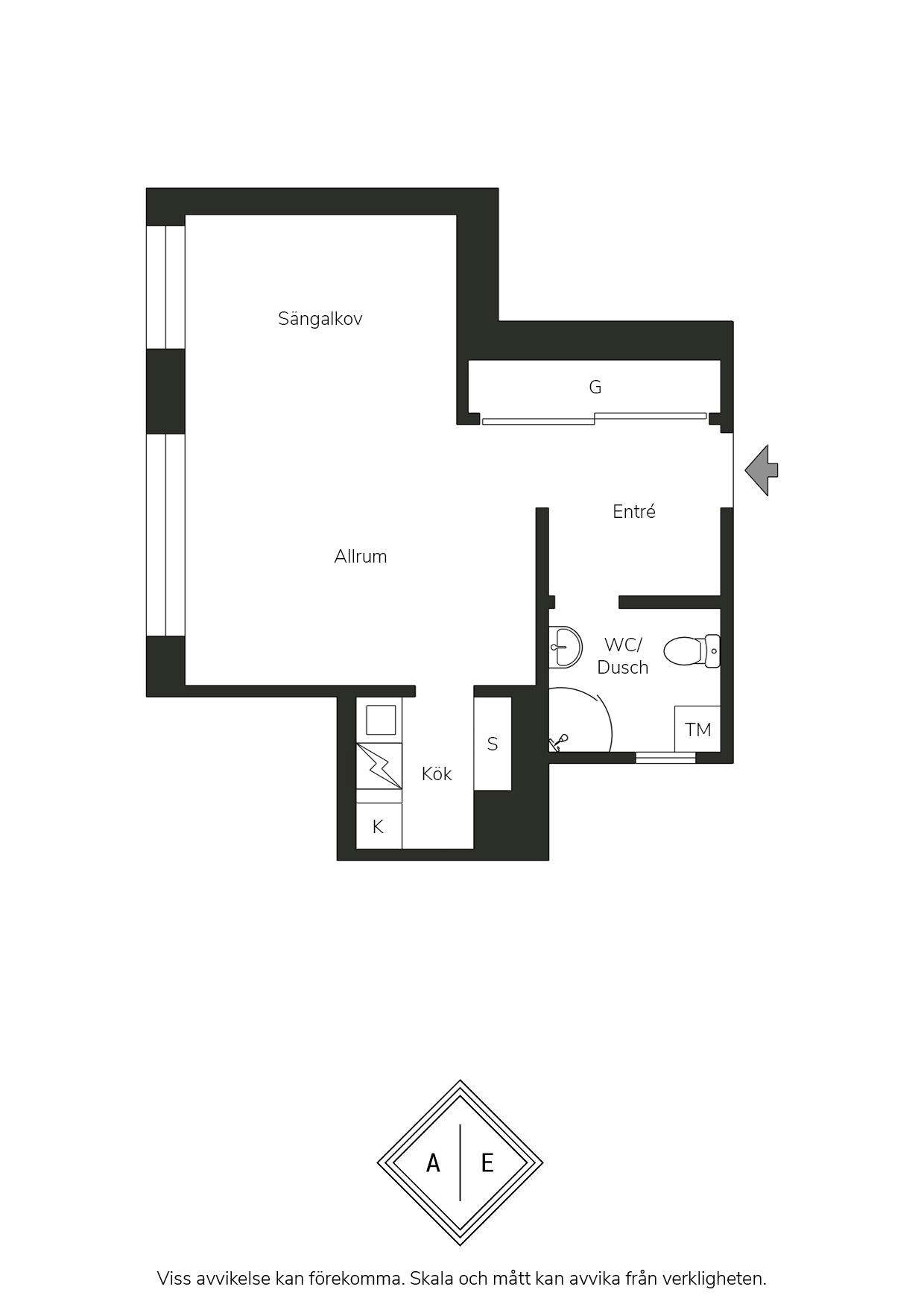 Välplanerad etta med generöst ljusinsläpp