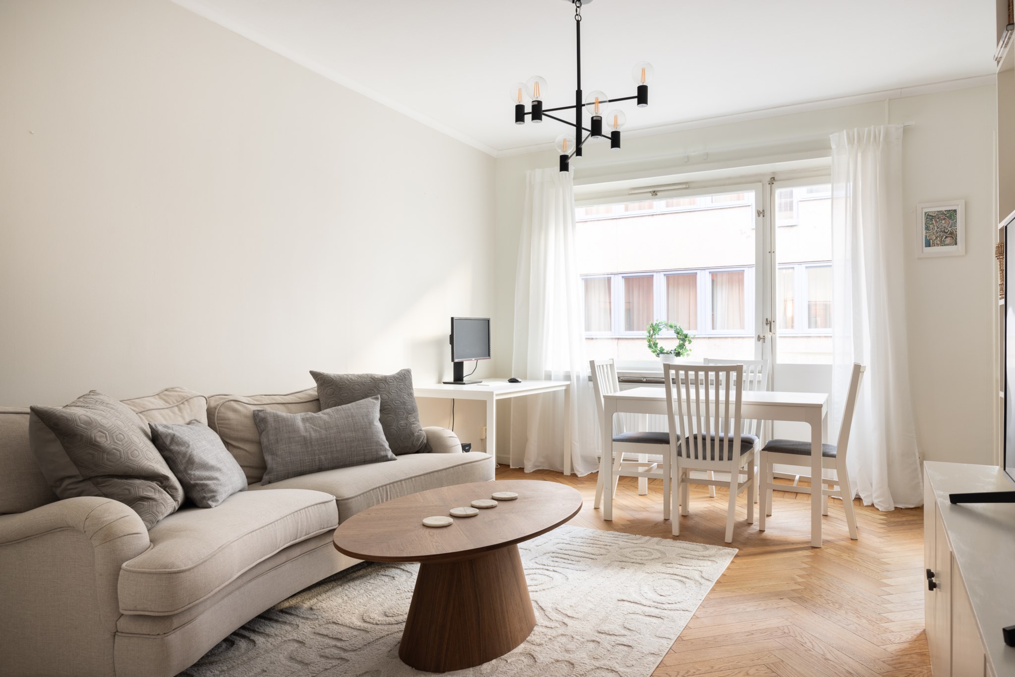 Välkommen till Kammakargatan 18 – en pärla på tredje våningen med ett fint ljusinsläpp och en optimal planlösning! Lägenheten är genomgående ljus, med fiskbensparkett och flera gedigna platsbyggda lösningar.