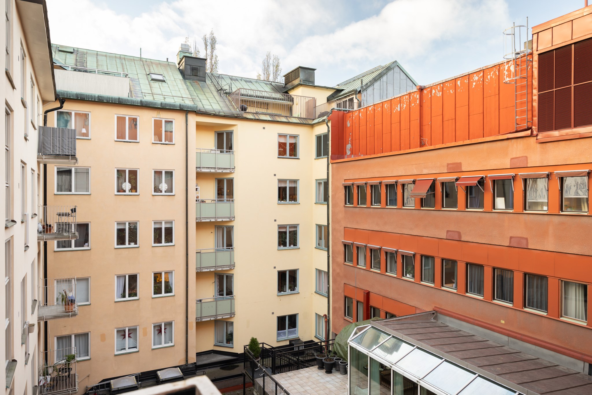 Se underhållsplan - Det finns inga planerade renoveringar under 2025 (kontrollerat 2025-03-21).Gemensamma utrymmenFöreningen har en gemensam tvättstuga samt en takterass med utemöbler och grillmöjligheter. Det finns även en innergård, cykelförråd och soprum.Om föreningenBrf Kammakargatan 18 är en äkta bostadsrättsförening. Föreningen upplåter 21 lägenheter med bostadsrätt samt tre lägenheter och tre lokaler med hyresrätt.