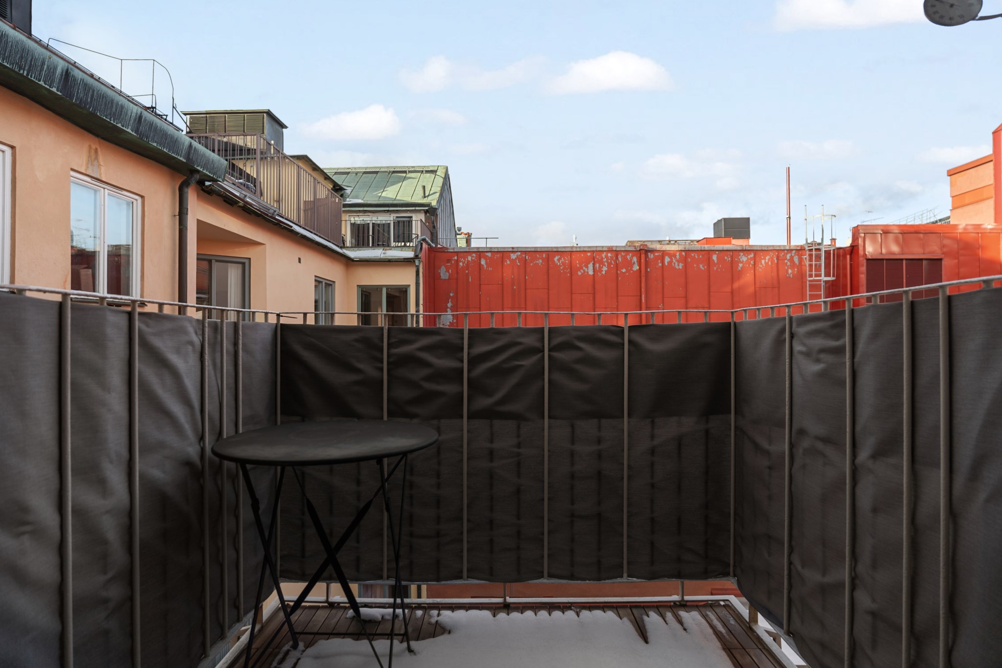 Mysig balkong som nås via sovrummet, en avkopplande plats med utrymme för sittmöbler och möjlighet att njuta av lugna stunder utomhus.