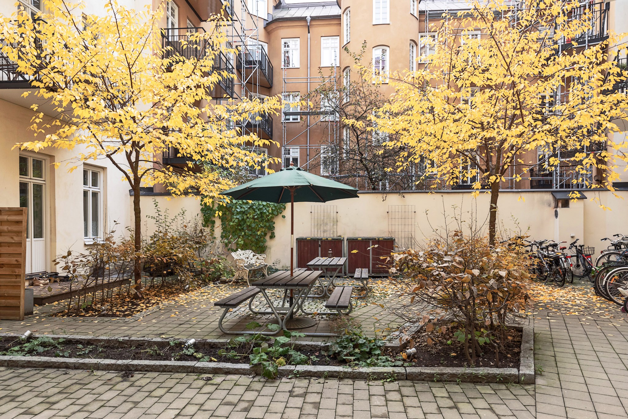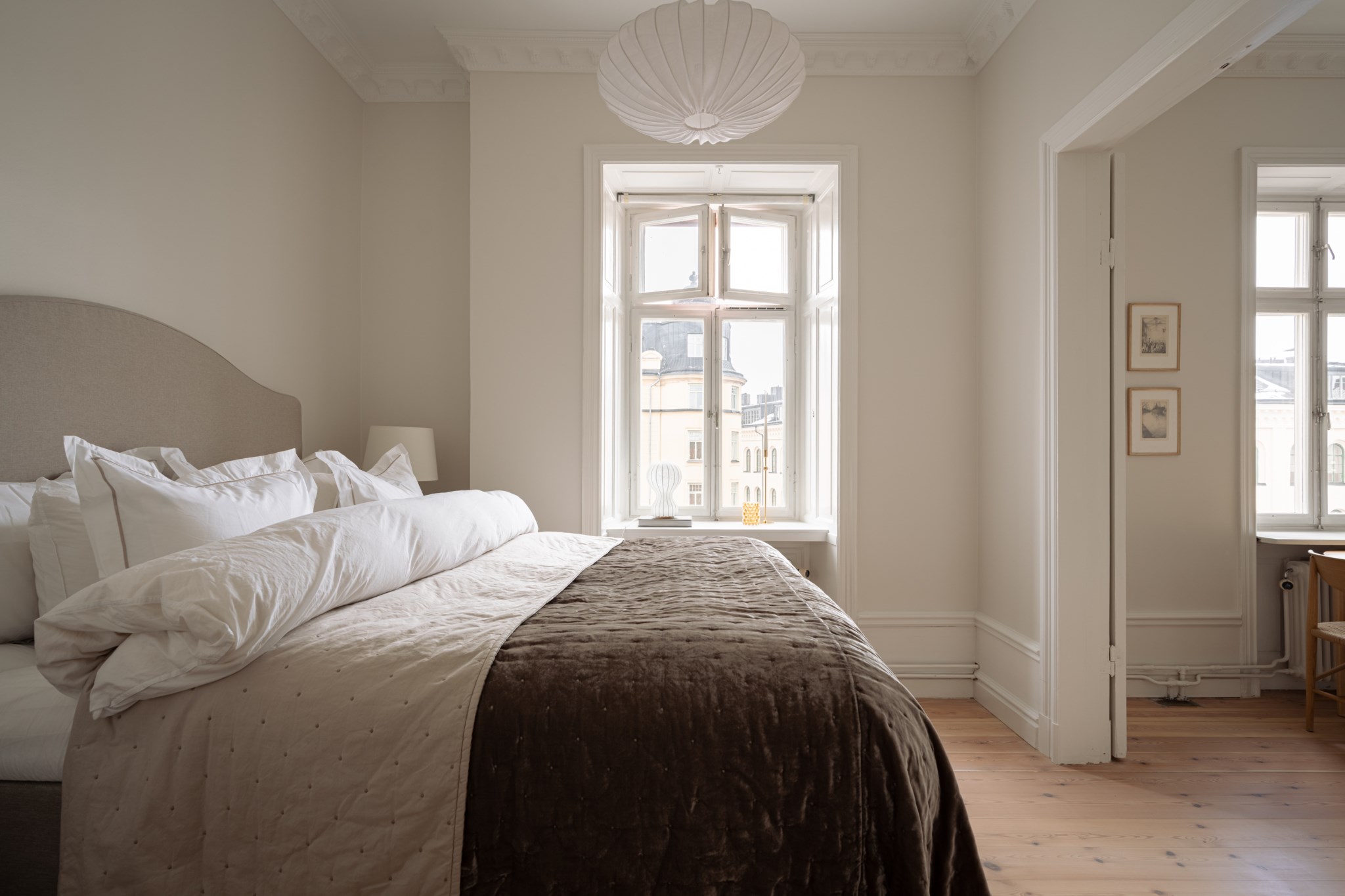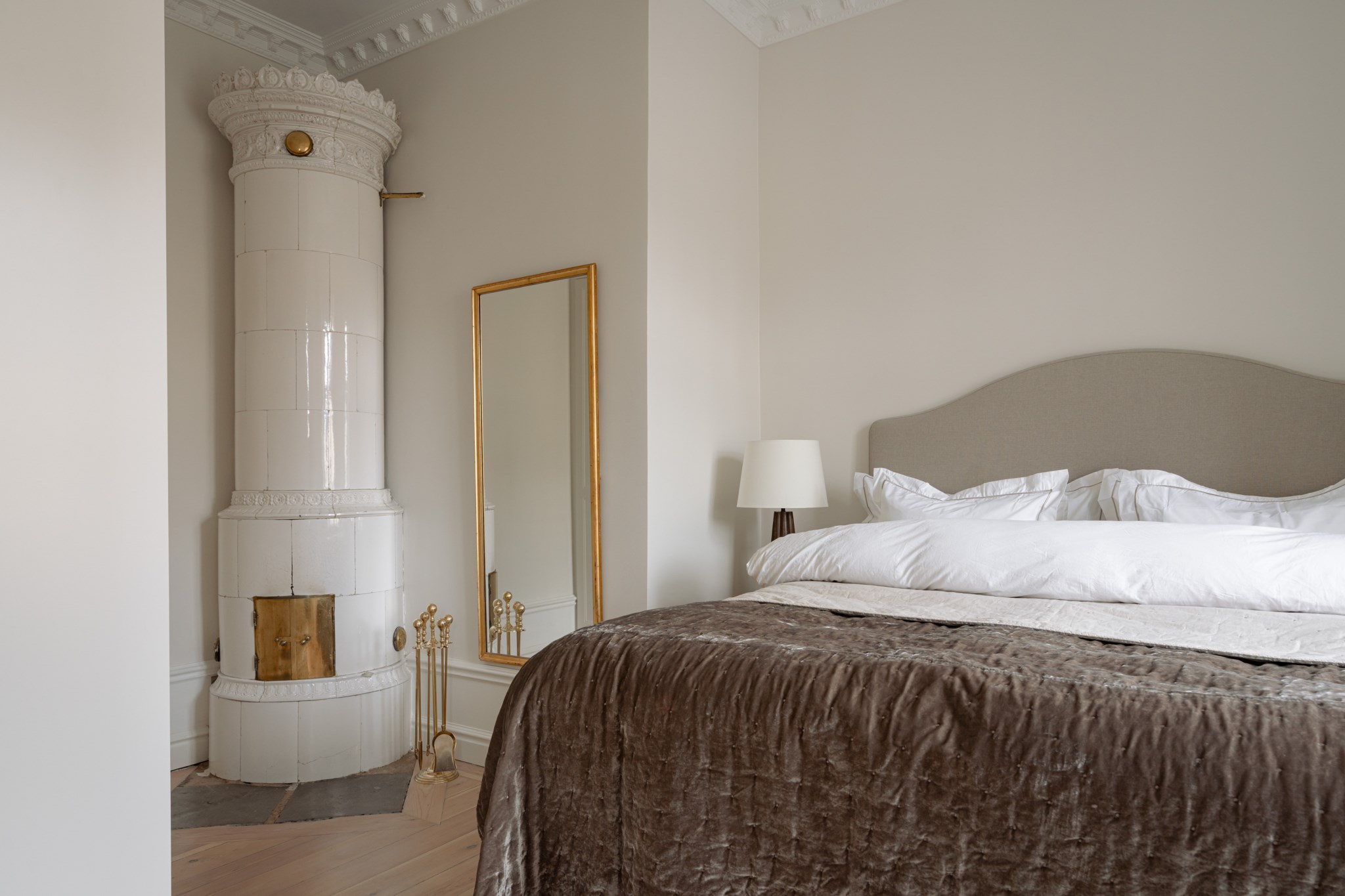 Lägenheten bjuder på vackra originaldetaljer såsom fungerande kakelugn, pampiga dubbeldörrar, imponerande takhöjd om 3,25meter, eleganta stuckaturer, höga golvsocklar och stora, fina fönster i fil som släpper in generöst med ljus och förstärker den luftiga känslan.