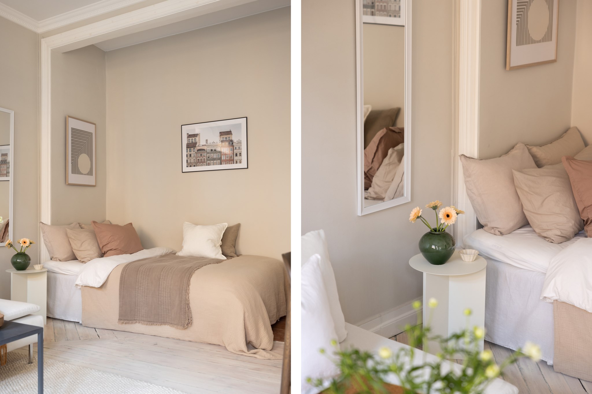 För den som önskar finns dessutom möjlighet att bygga om bostaden till en tvåa, i enlighet med den alternativa planritningen, vilket skapar ett separat sovrum och ytterligare flexibilitet i boendet (förutsatt föreningens godkännande).