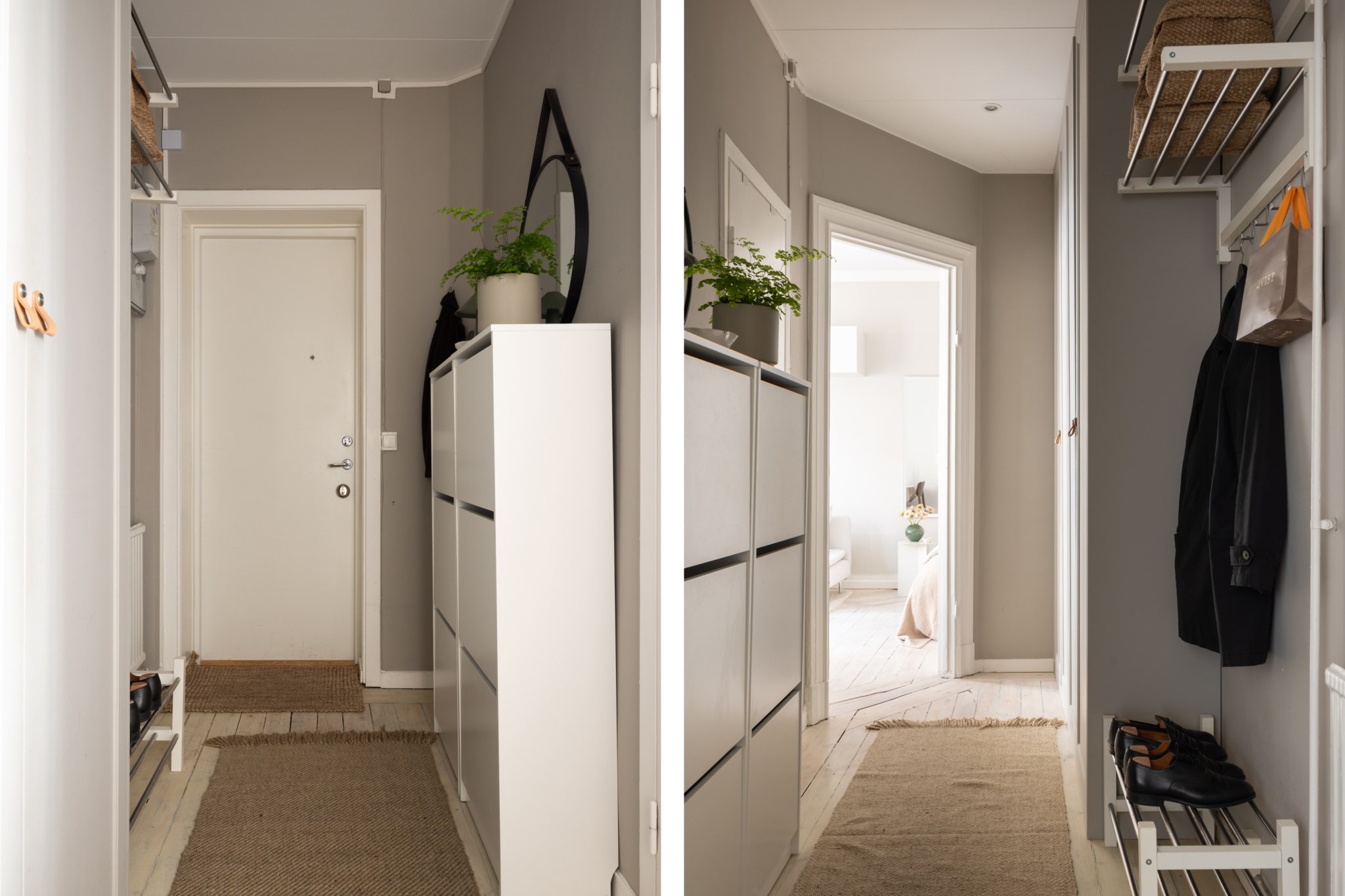 Förvaringsmöjligheterna är mycket goda med flera garderober som gör bostaden både praktisk och lätt att hålla ordning i.