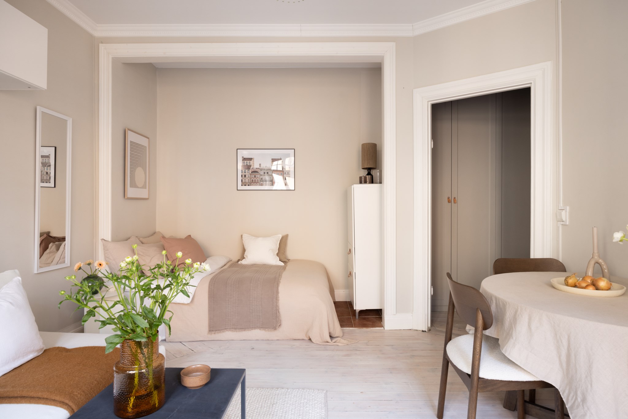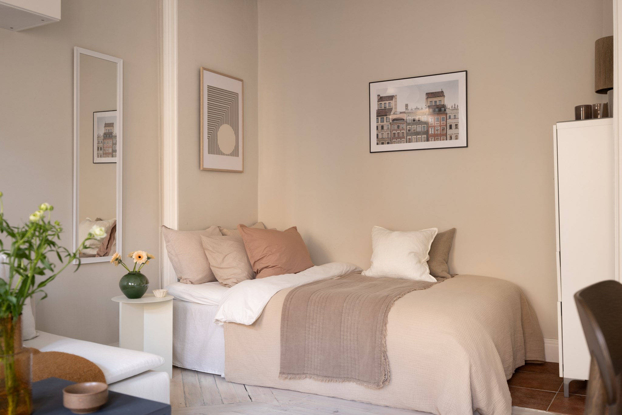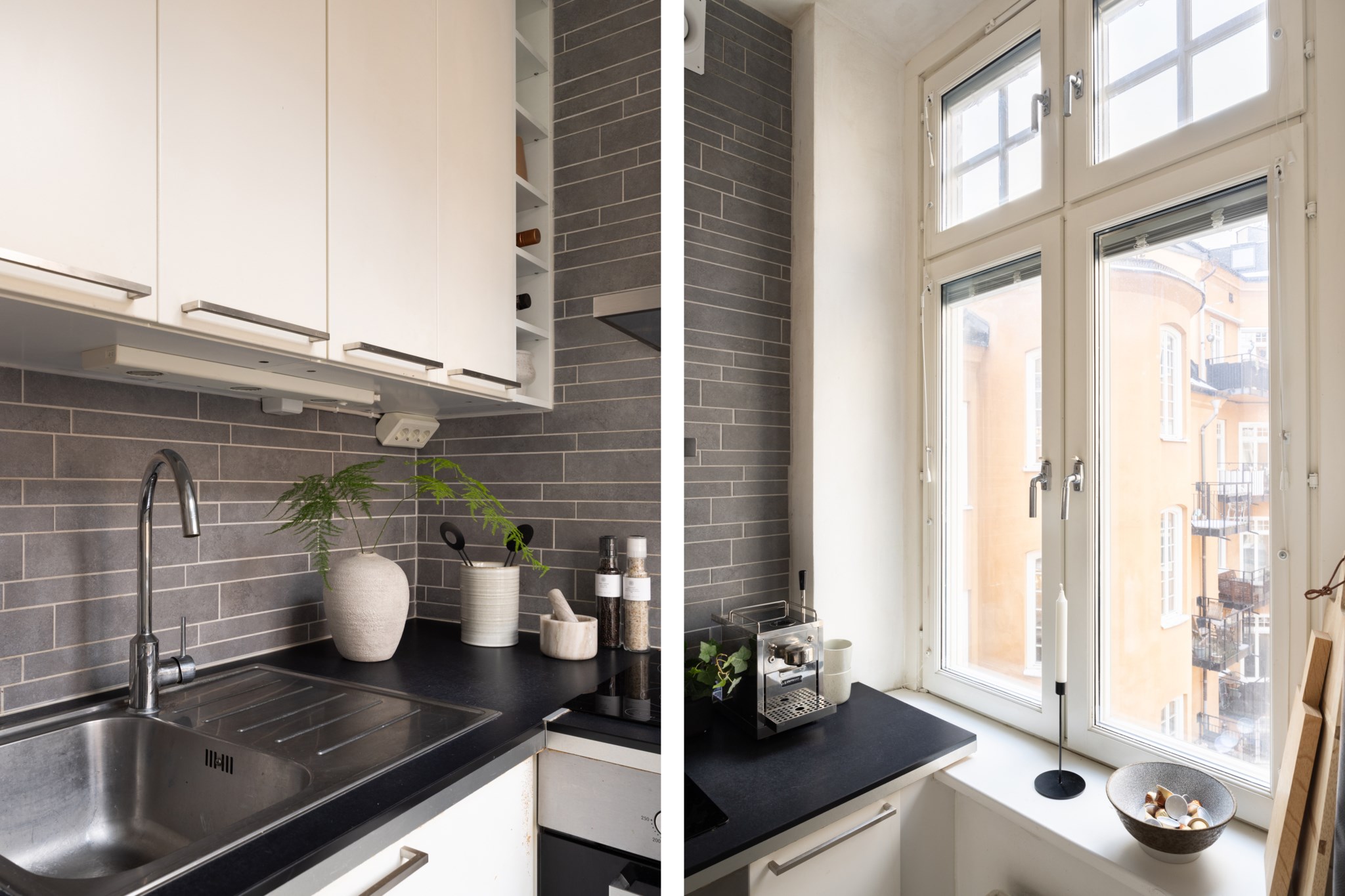 Bostaden har ett modern kök med goda arbetsytor och bra förvaring samt ett stilrent, helrenoverat badrum. Allrummet är lättmöblerat och rymmer både säng, soffgrupp och matplats. Från rummet nås den stora balkongen mot innergården, ett fantastiskt extra rum under sommarhalvåret med plats för loungemöbler, växter och sociala stunder.