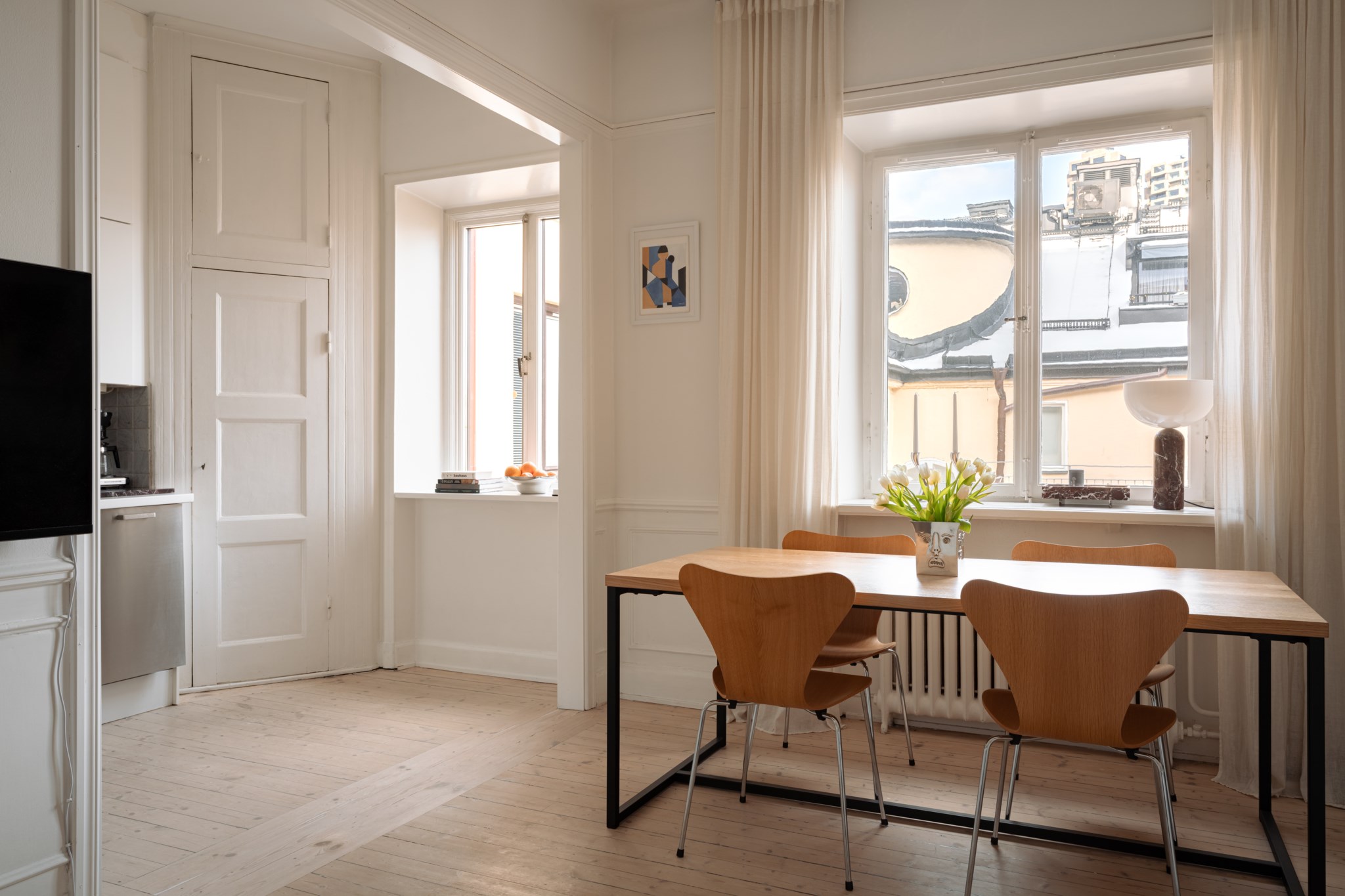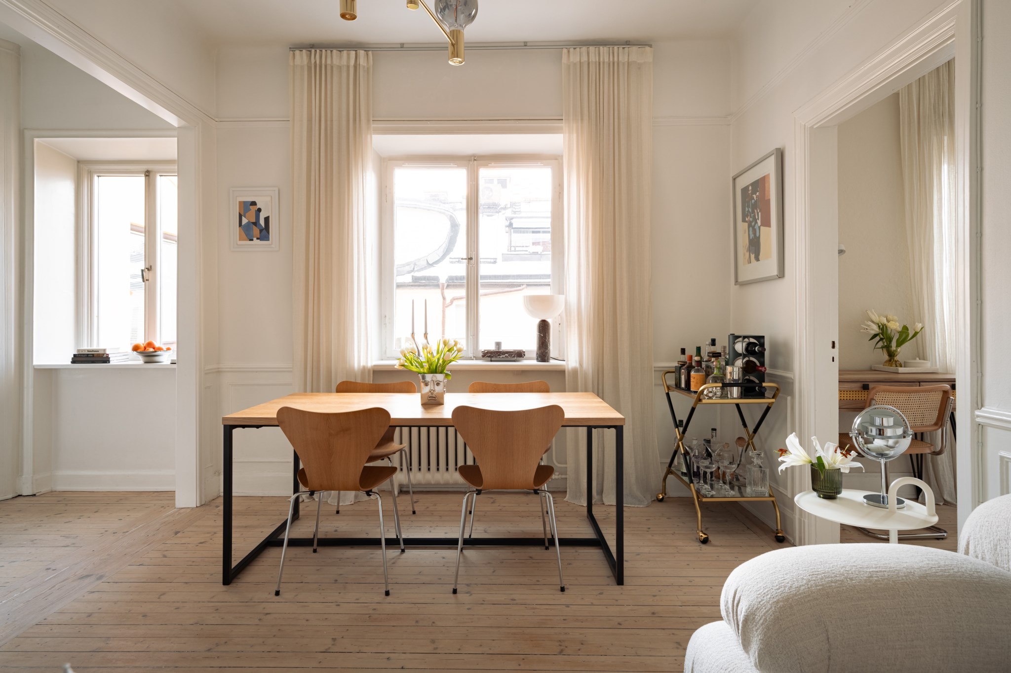 Välkomna till en välplanerad sekelskiftestvåa högt upp i huset med en social planlösning och generös takhöjd! Bostaden erbjuder ett smakfullt kök i en öppen planlösning mot vardagsrummet. Här finns gott om plats för ett större middagsbord och soffa med tillhörande möblemang. Generöst sovrum med gott om förvaring samt kaklat duschrum och WC
