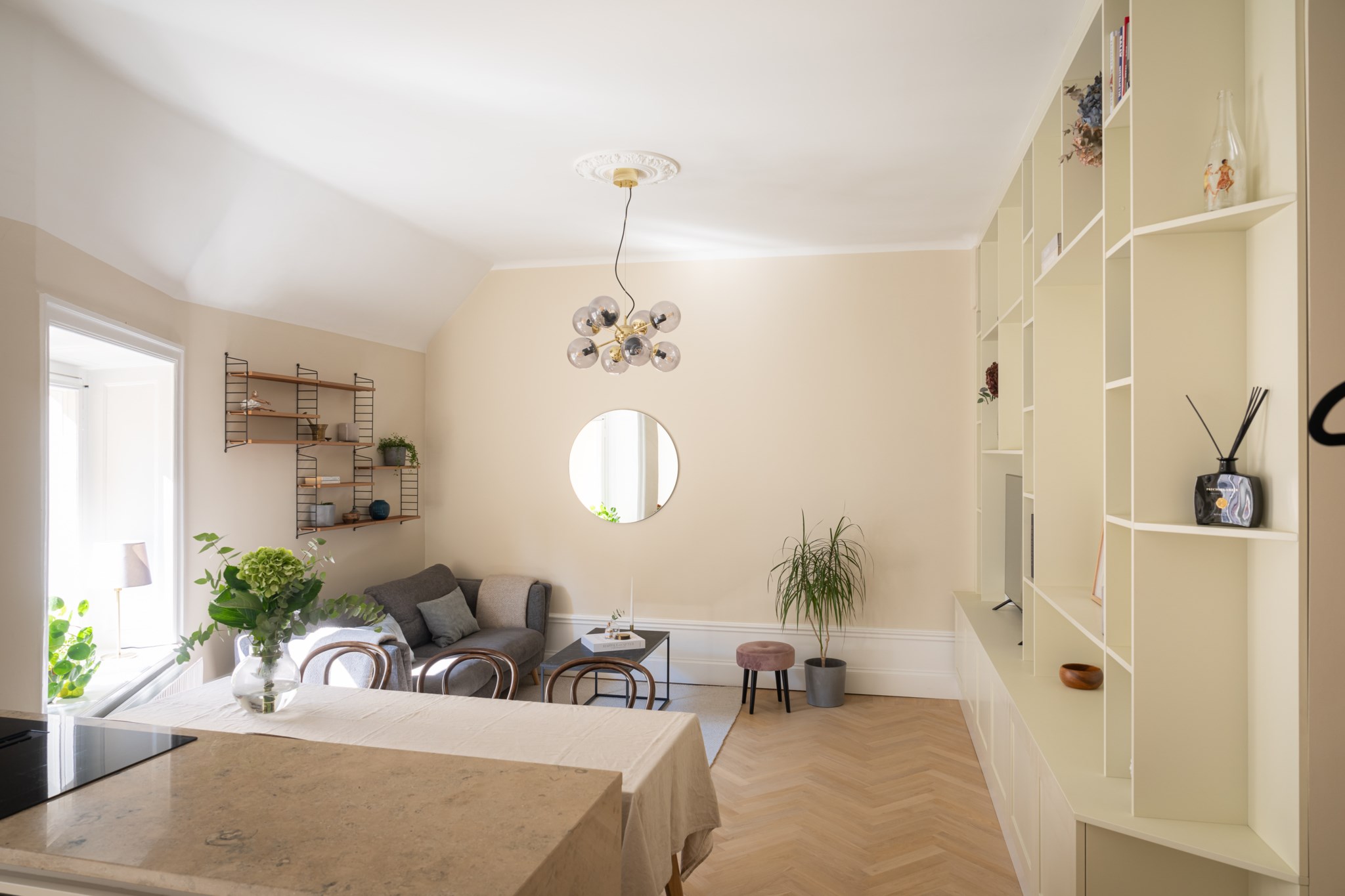 Topprenoverad sekelskiftespärla högst upp i huset med solig balkong!