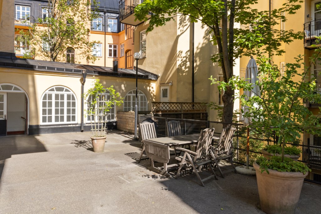 Utöver ovanstående ligger enligt underhållsplanen som dock kan komma att förändras. Inga andra renoveringar är beslutade i dagsläget (kontrollerat 2026-02-19).GårdsplatsMellan gathus och gårdshus finns en uteplats.ParkeringBoendeparkering råder i området.Gemensamma utrymmen- Tvättstuga (tre tvättmaskiner, en torktumlare samt ett torkskåp)