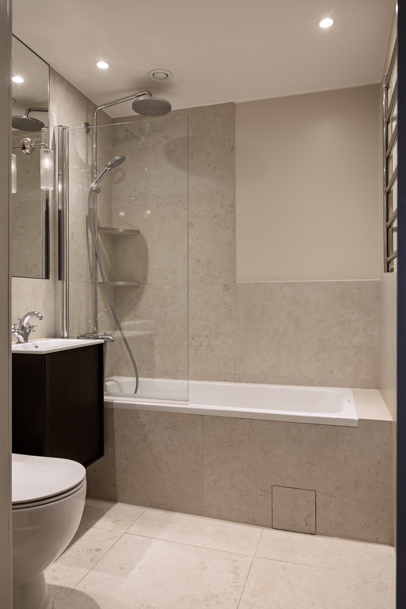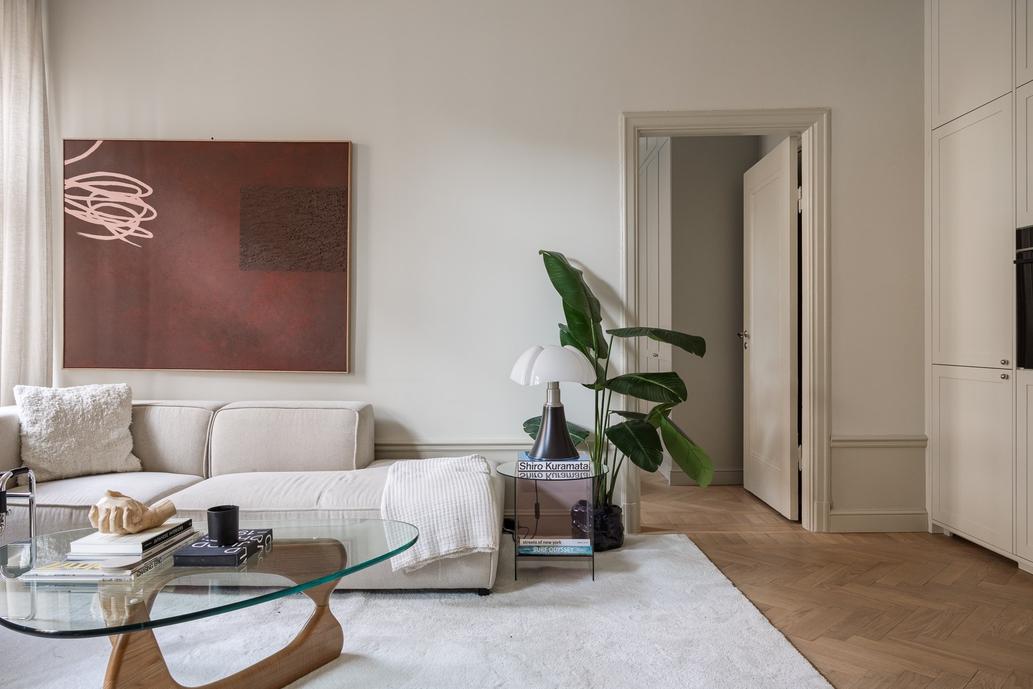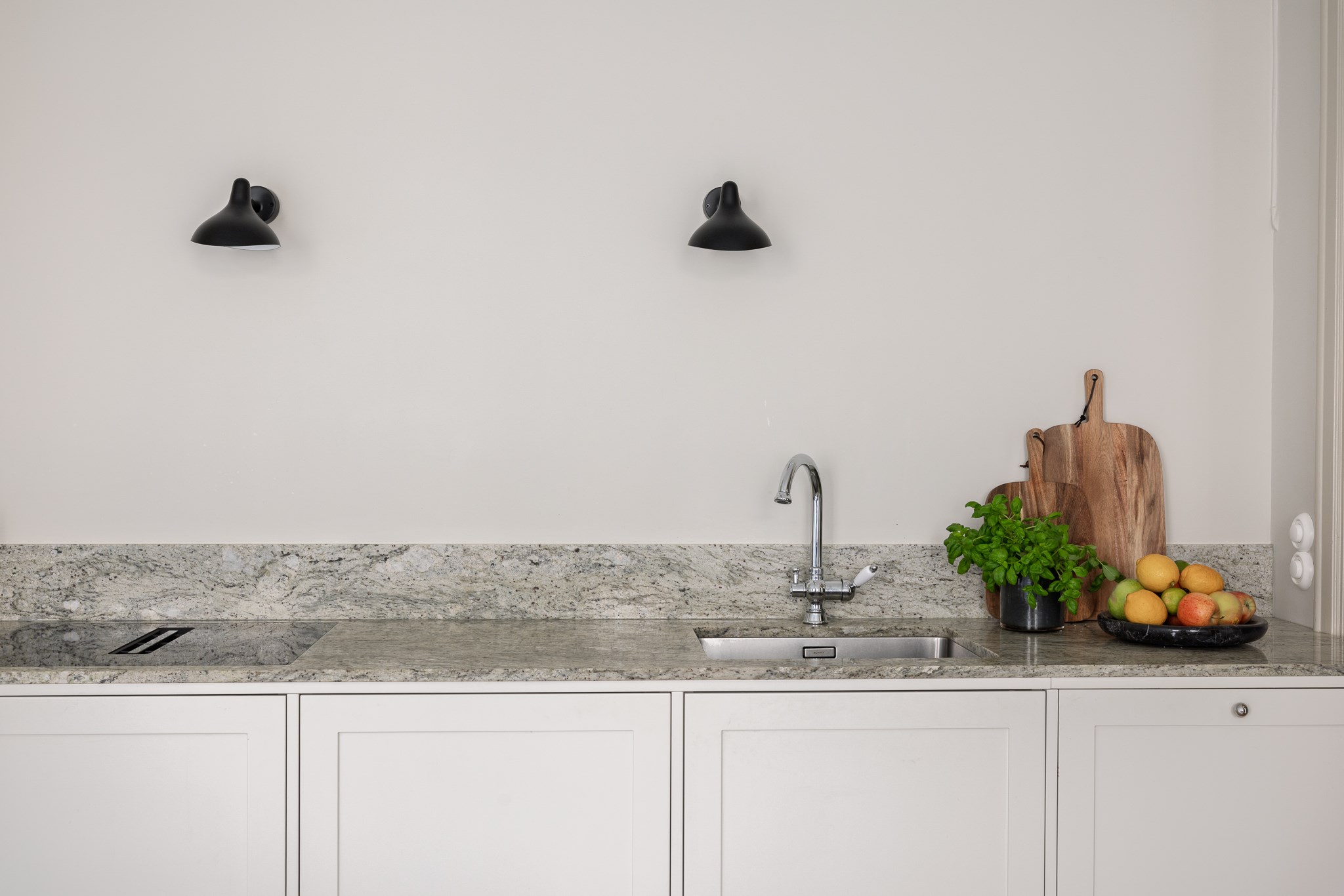 Hela lägenheten har genomgått en omfattande renovering under 2025 där material och detaljer har valts med omsorg. Köket är stilrent utformat med exklusiva materialval såsom stenskivor och italienska armaturer, vilket ger ett sobert och genomarbetat helhetsintryck. Här finns gott om arbetsyta och förvaring, och planlösningen gör det enkelt att samla vänner och familj runt middagsbordet.