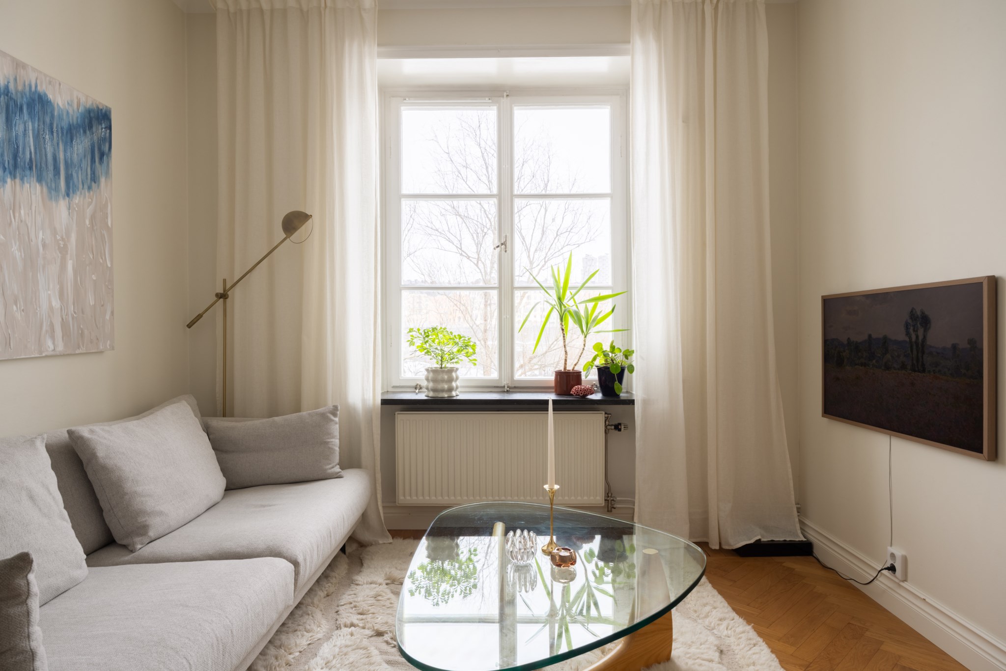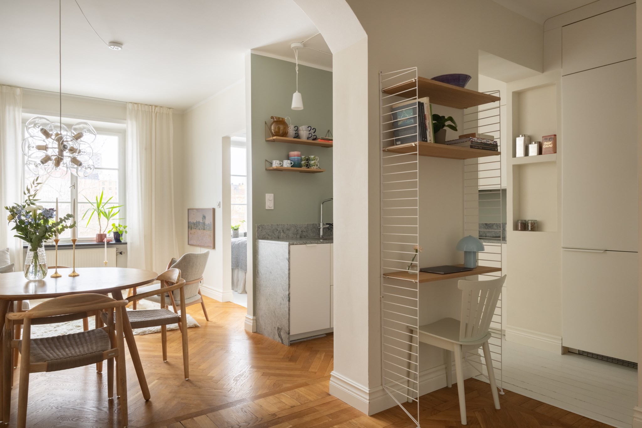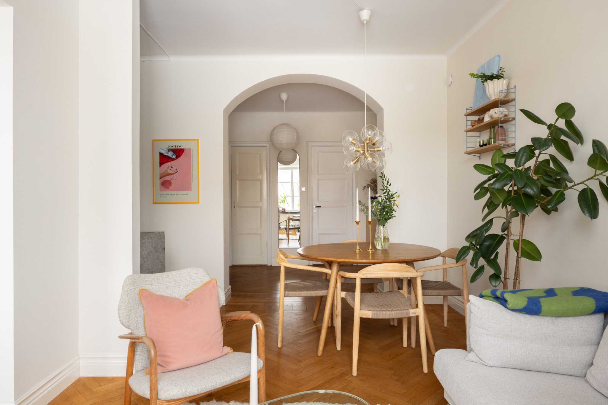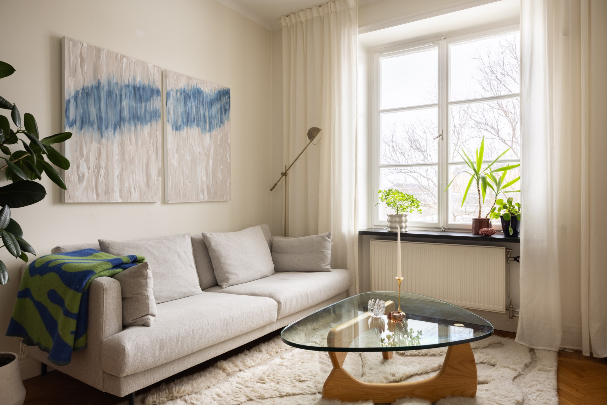 Välkommen till en otroligt social och välplanerad tvåa med genomtänkta detaljer och en magisk utsikt över Karlbergs slott, Karlbergskanalen och Vasastans takåsar – ett hem som verkligen har det lilla extra.