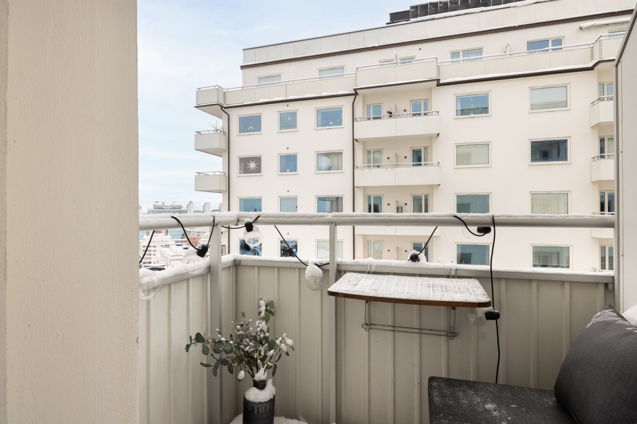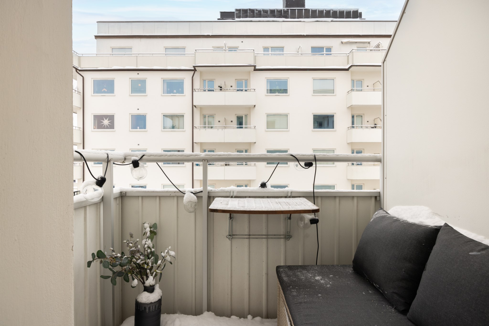 Lägenheten är smart planerad med yteffektiva kvadratmetrar och en trivsam atmosfär som passar perfekt för såväl förstagångsköparen som för dig som söker en övernattningslägenhet eller ett bekvämt boende för två. Det stilrena köket erbjuder tidlösa materialval och gott om förvaring. Från köket når du även bostadens charmiga balkong med vidsträckt utsikt över Stockholm, en självklar plats för att njuta av alla härliga sommarkvällar. Bostaden karaktäriseras av ett luftigt allrum som ger gott om plats för både sällskapsdel och sovdel samt generösa förvaringslösningar som gör det enkelt att hålla ordning. Badrummet är stambytt och färdigställt under december 2025, en stor fördel för nästa ägare.