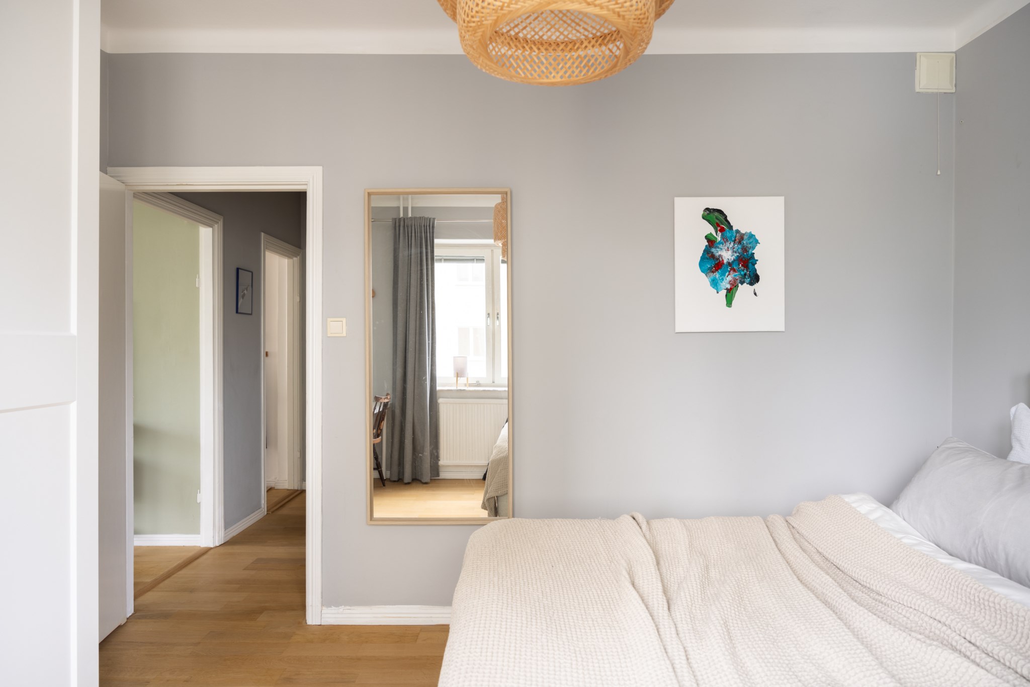 Bostaden är genomgående i mycket gott skick med ljusa väggar och vackra golv som skapar ett ljust och fräscht intryck. Det rymliga sovrummet rymmer enkelt en stor dubbelsäng och erbjuder goda förvaringsmöjligheter. Helkaklat badrum utrustat med tvättmaskin för extra bekvämlighet.