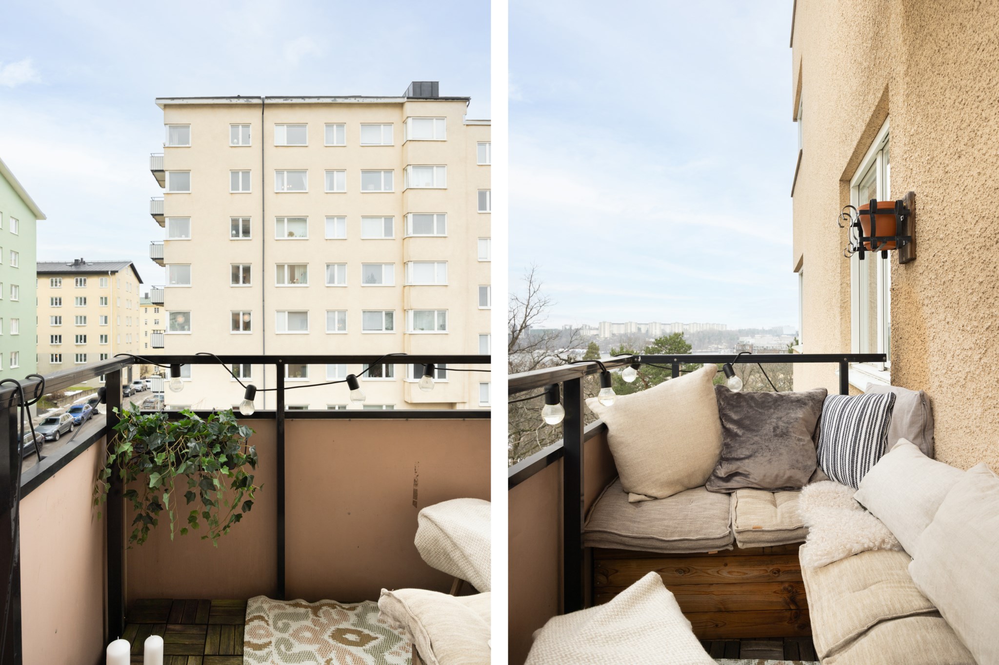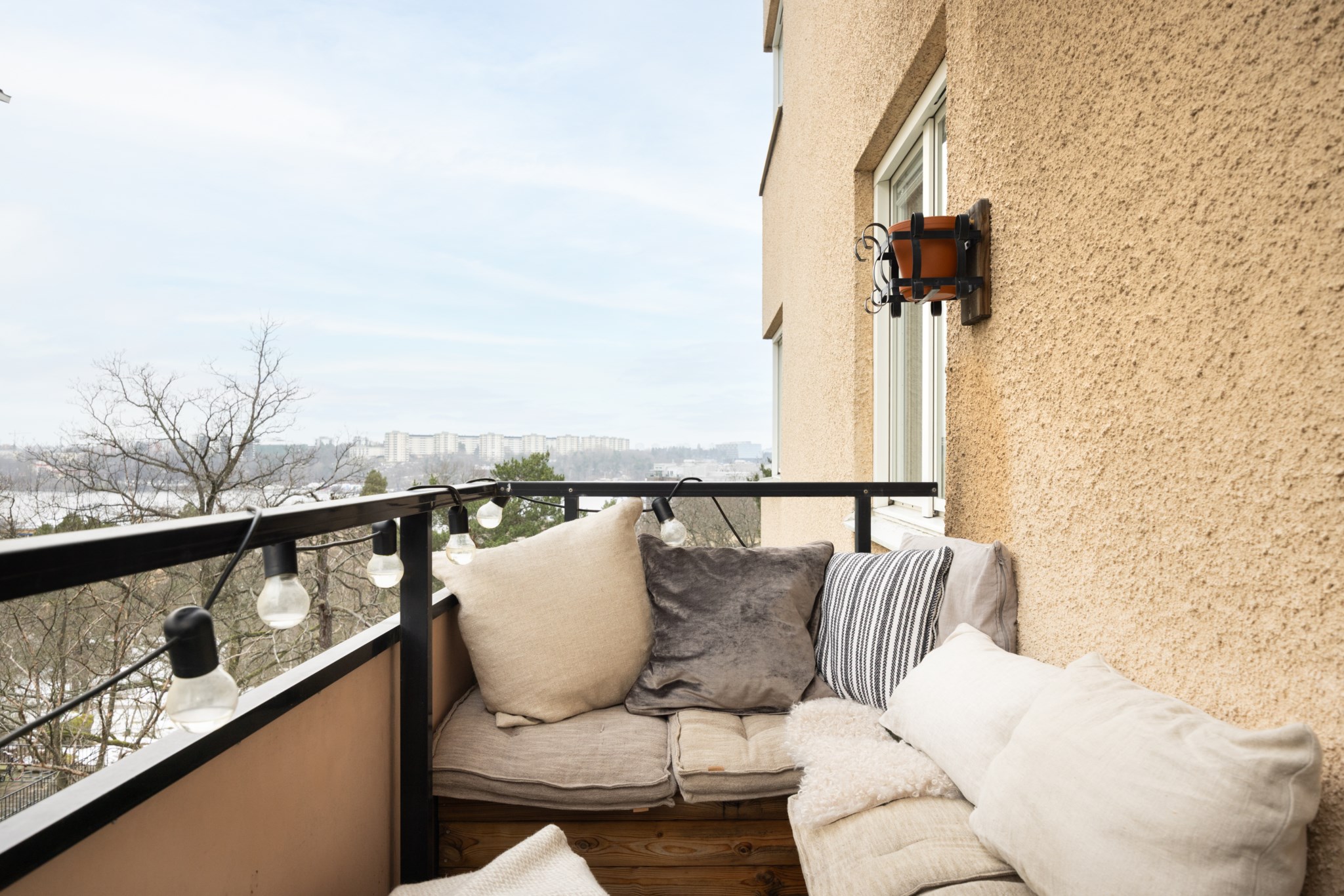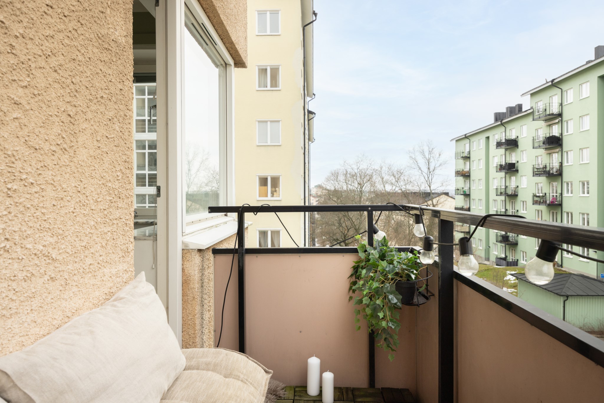 Till bostaden hör en balkong med milsvid utsikt och gott om plats för balkongmöbler och växter. Balkongen erbjuder fina möjligheter att skapa en trivsam och inbjudande utomhusmiljö.