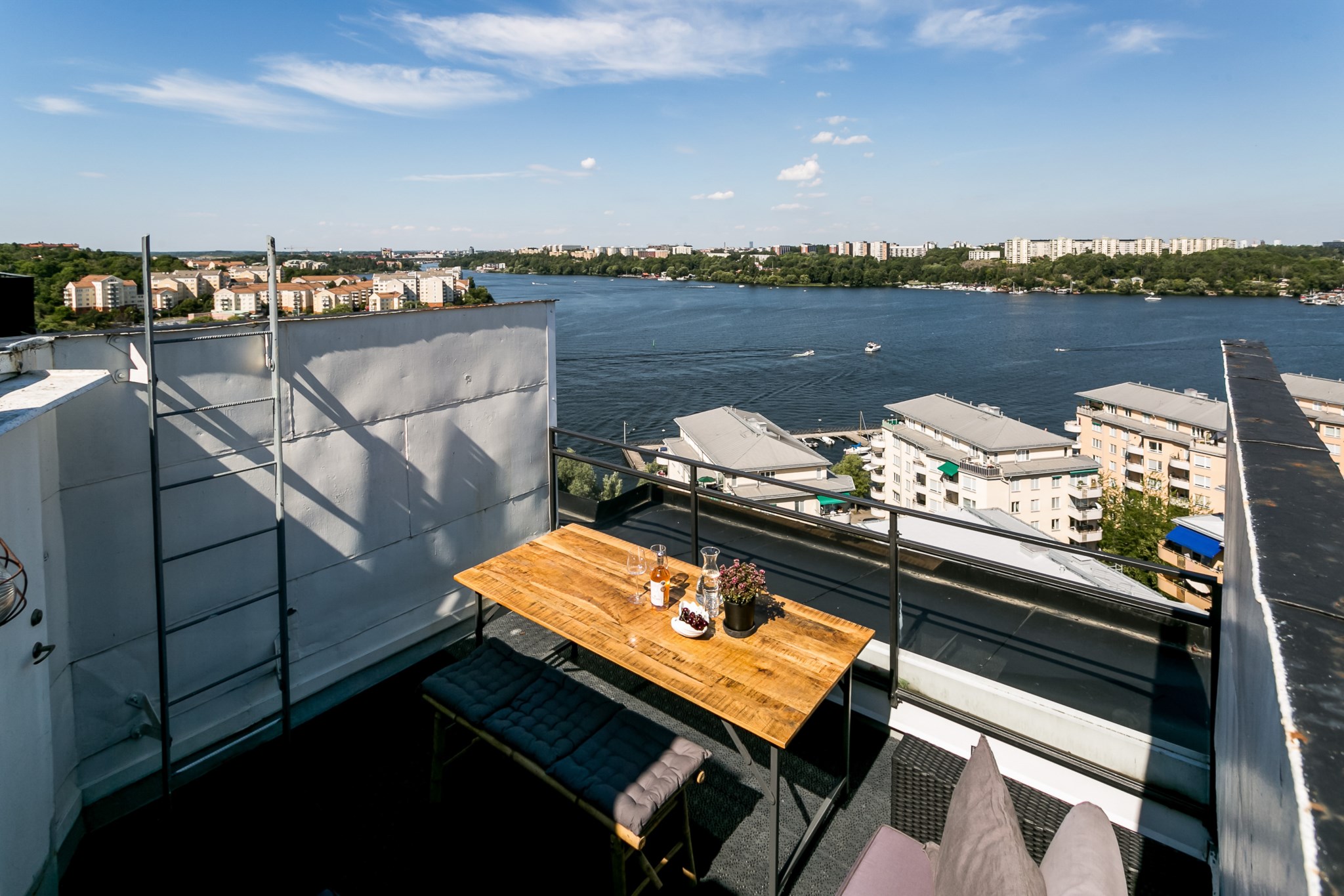 En otrolig takterrass med sjöutsikt över Mälaren finns att nyttja för föreningens medlemmar. På bara fem minuter når du klippbad och bryggor, och ytterligare några minuter bort väntar den vackra strandpromenaden med restauranger, caféer och träningsmöjligheter såsom tennishall, Kristinebergs IP, fotbollsplan, minigolf, kajak och gym. Kungsholmens löpspår ligger runt hörnet för den som uppskattar natur och motion. Med tio minuters promenad når du Ica Maxi Lindhagen och på 20 minuters gångavstånd ligger Fridhemsplan och Norr Mälarstrand med hela sitt utbud av shopping och nöjen. Tunnelbanan och gröna linjen nås på några få minuter från lägenheten.