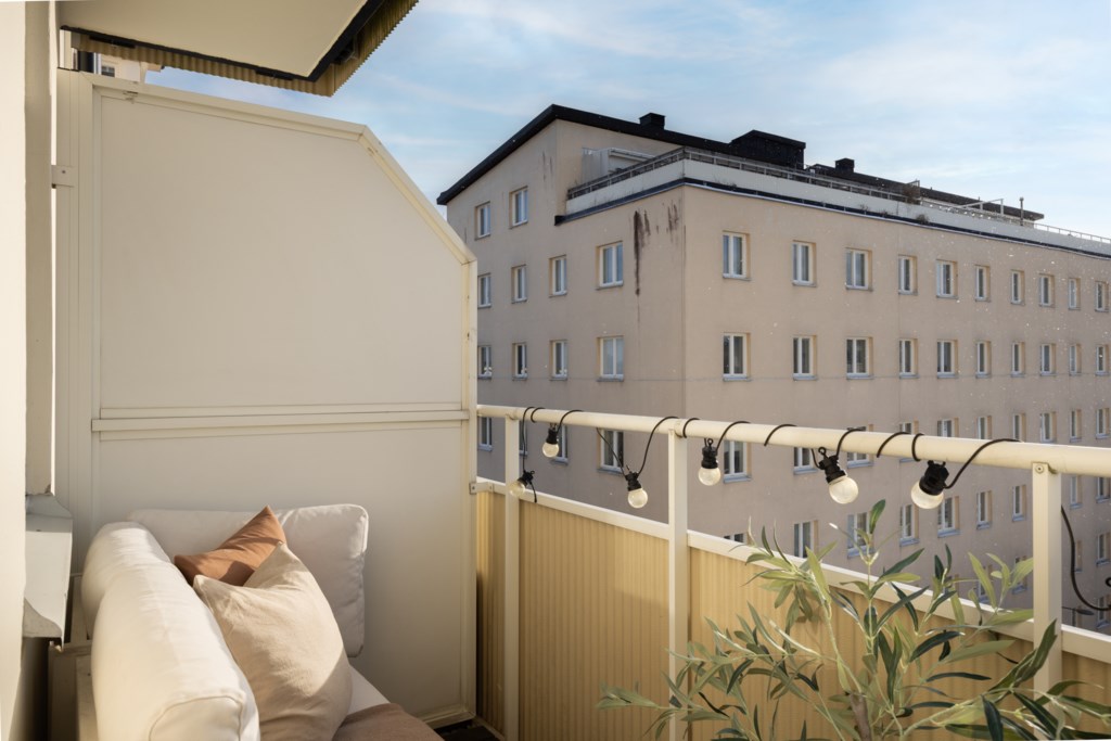 Till bostaden hör en balkong med plats för önskat möblemang. Balkongen erbjuder fina möjligheter att skapa en trivsam och inbjudande utomhusmiljö under de varmare månaderna.