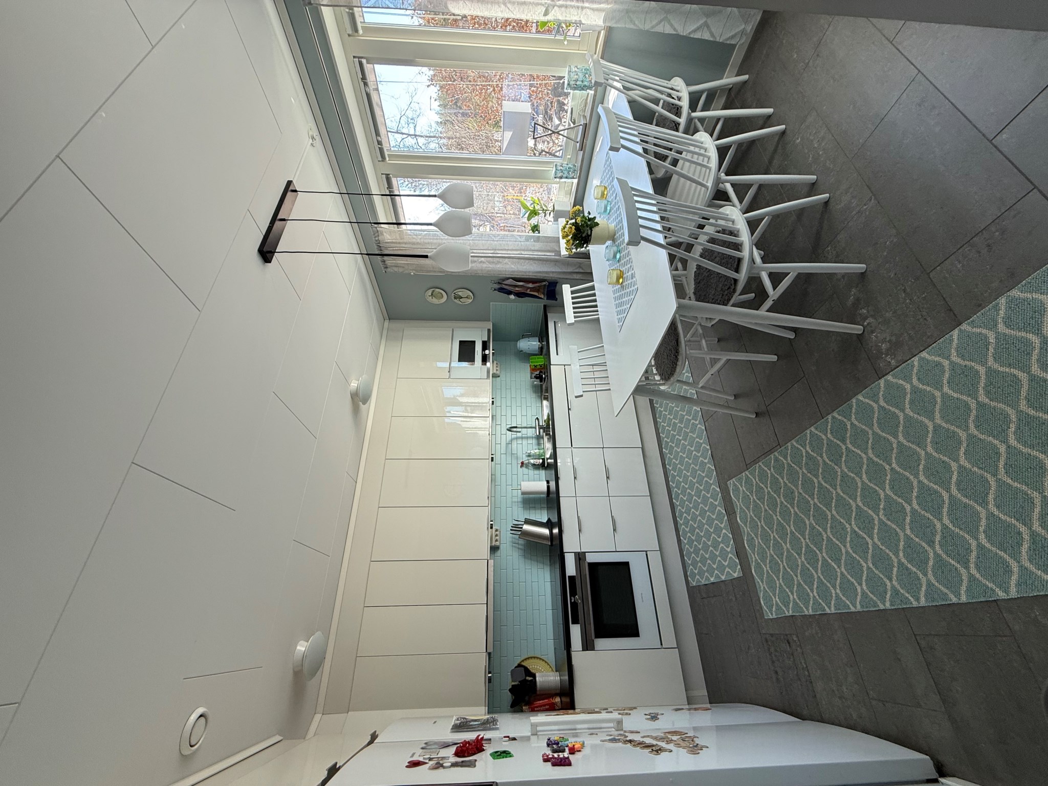 Modernt och funktionellt kök med bra arbetsytor och förvaring. Utrustat med ny diskmaskin samt nya spotlights som ger ett behagligt ljus. Det genomgående stengolvet tillsammans med golvvärme på hela entréplanet bidrar till en varm och ombonad känsla.