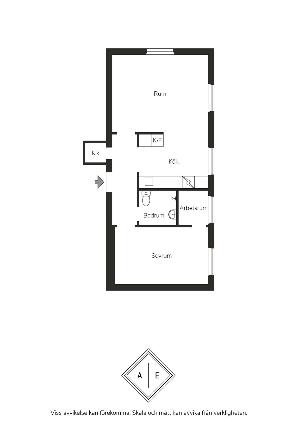 Bostaden erbjuder ett helkaklat badrum, ett generöst sovrum samt ett intilliggande mindre rum som passar perfekt som arbetsplats eller hemmakontor. Här finns dessutom mycket goda förvaringsmöjligheter med bra skåpsförvaring i köket samt praktiskt mindre förråd/klädkammare som underlättar vardagen och skapar ett välorganiserat hem.