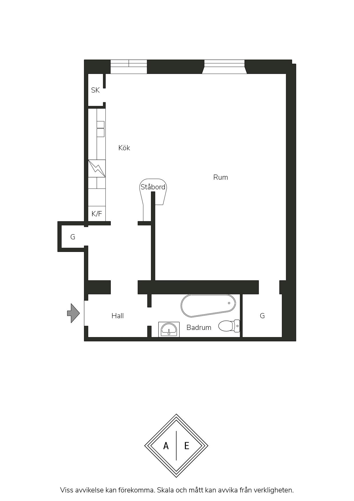 Här möts du av tydlig karaktär och vackra tidstypiska detaljer såsom stora spröjsade fönster, speglade dörrar, generös takhöjd och klassisk fiskbensparkett. Planlösningen är yteffektiv och trivsam med goda möjligheter för både umgänge och avkoppling, och det finns även möjlighet att bygga om bostaden till en tvåa.
