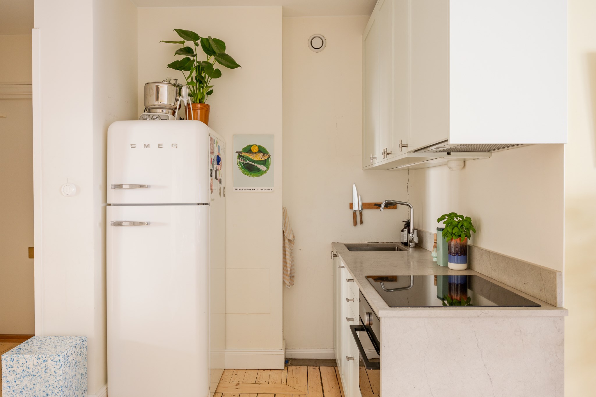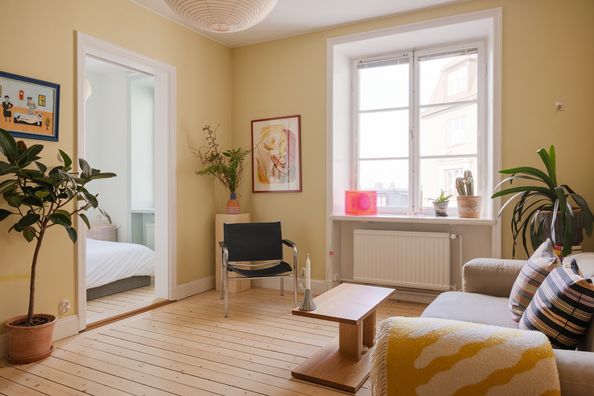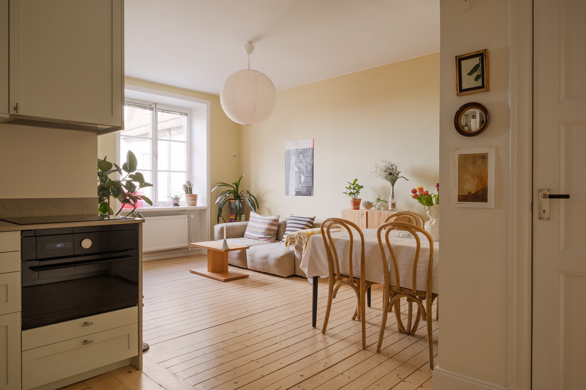 Uppe på det anrika Kvarnberget, precis intill Mariatorget, väntar en smakfullt renoverad tvårummare som tilltalar den kräsne. Här trivs du som uppskattar attribut som generös takhöjd, vackert plankgolv i original och en social planlösning. De stora fönsterpartierna släpper in rikligt med ljus och skapar en luftig känsla genom hela bostaden. Här finns gott om yta för att duka upp middagar med vänner och familj, koppla av i soffan och ett sovrum med plats för dubbelsäng samt goda förvaringsmöjligheter.