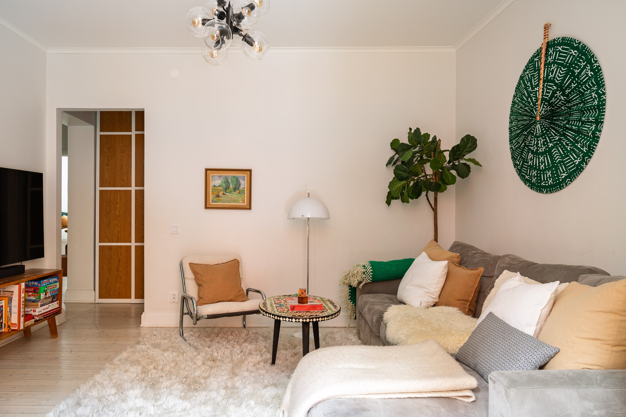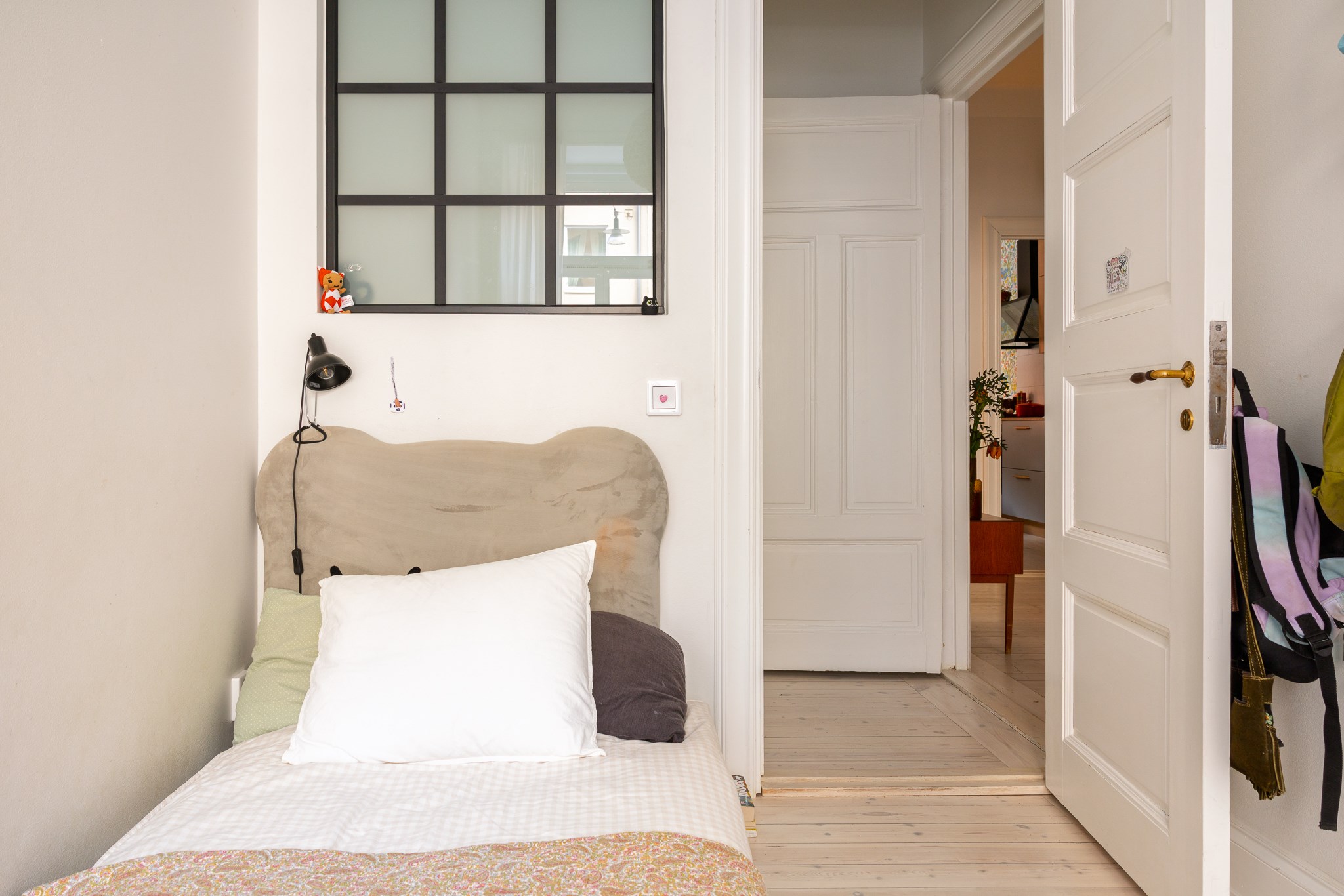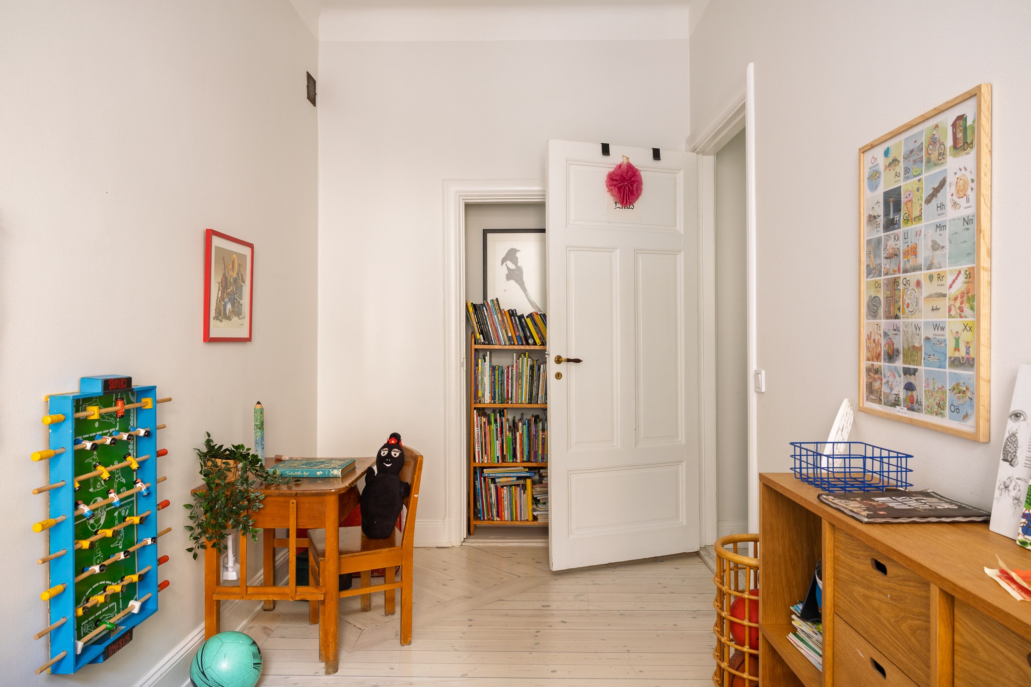 Sovrummen är samlade i den ena delen av bostaden och erbjuder ett rofyllt och privat läge, medan kök och vardagsrum ligger åt andra hållet. Dessa rum har en delvis öppen planlösning som ger stora, sammanhängande sällskapsytor med gott om plats för middagar, umgänge och sociala tillställningar. Från denna del av bostaden nås även balkongen som vetter mot gården – en lugn och trivsam plats för morgonkaffet eller sommarkvällar.