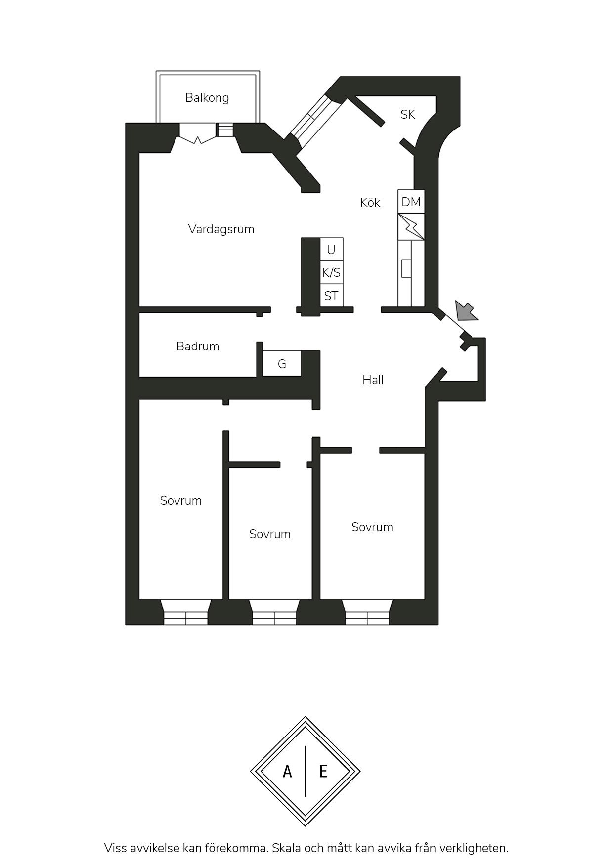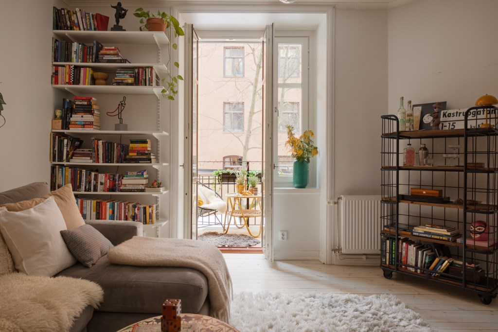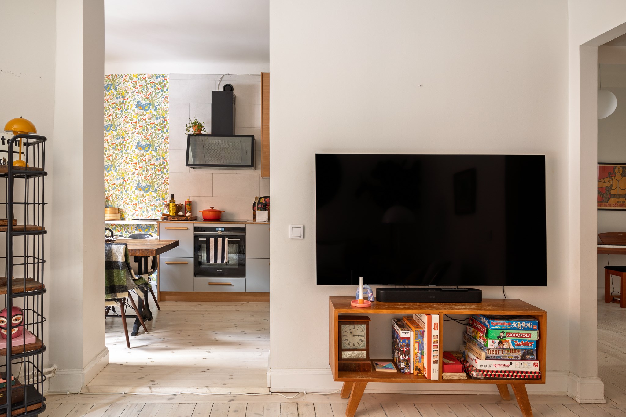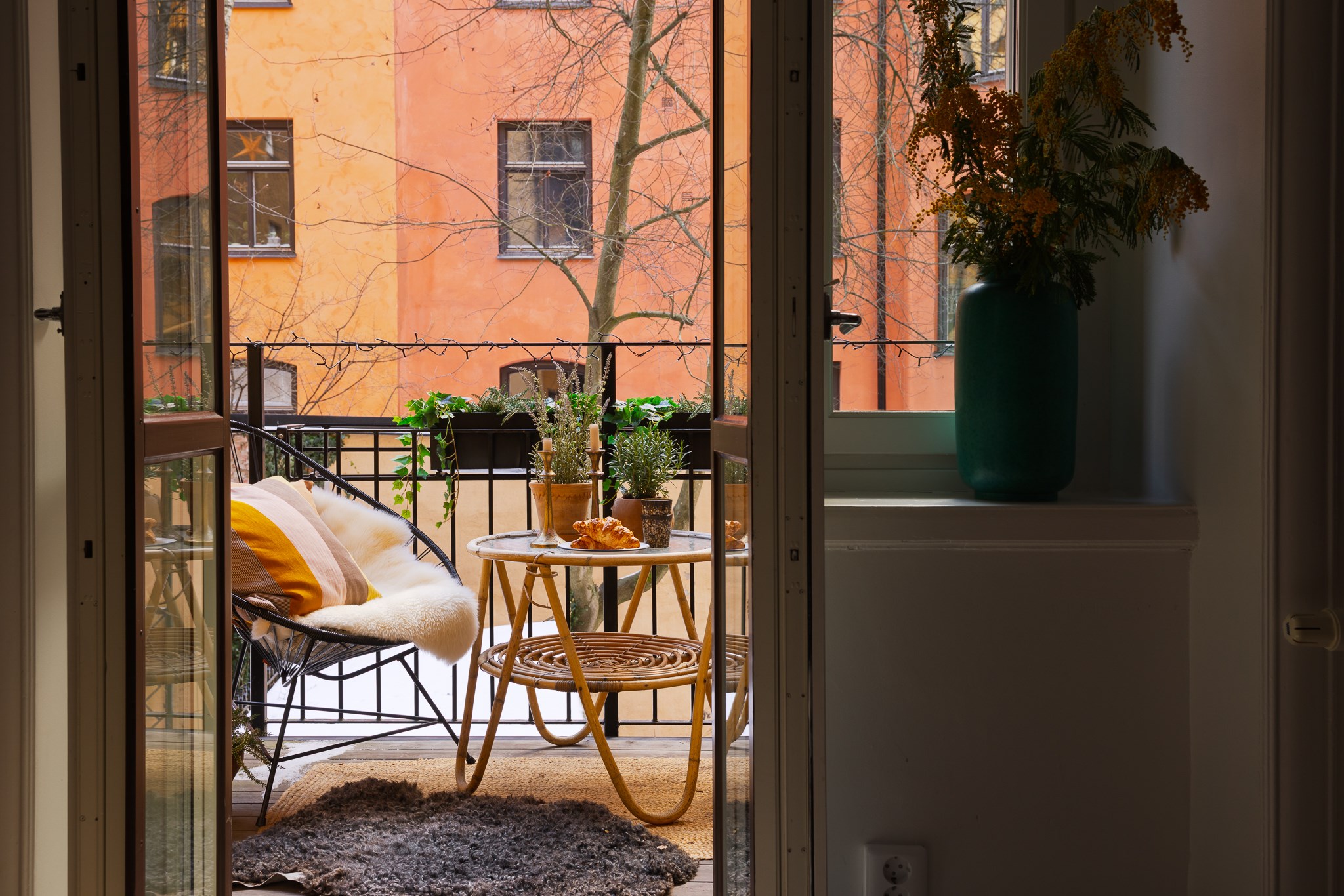 Sovrummen är samlade i den ena delen av bostaden och erbjuder ett rofyllt och privat läge, medan kök och vardagsrum ligger åt andra hållet. Dessa rum har en delvis öppen planlösning som ger stora, sammanhängande sällskapsytor med gott om plats för middagar, umgänge och sociala tillställningar. Från denna del av bostaden nås även balkongen som vetter mot gården – en lugn och trivsam plats för morgonkaffet eller sommarkvällar.