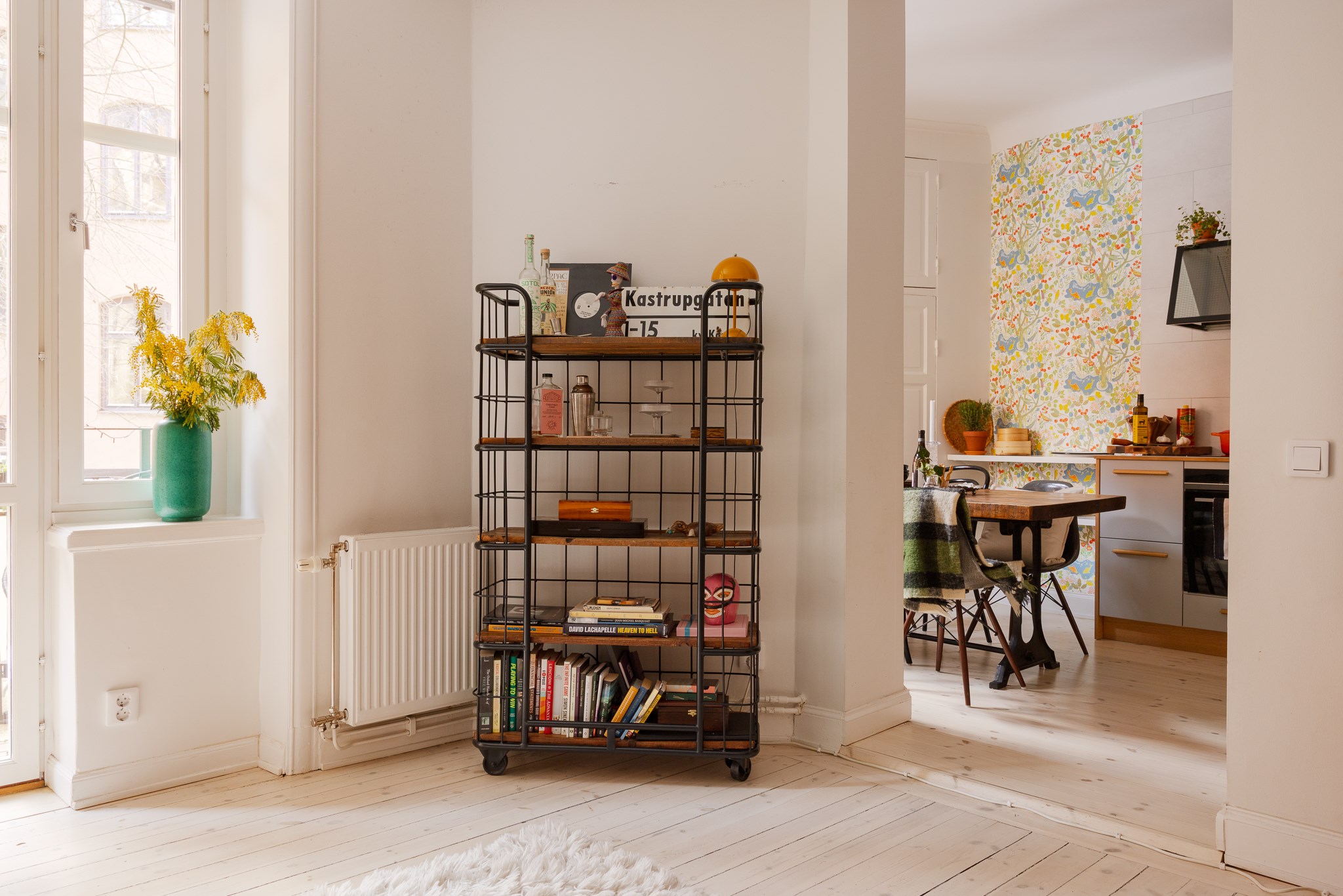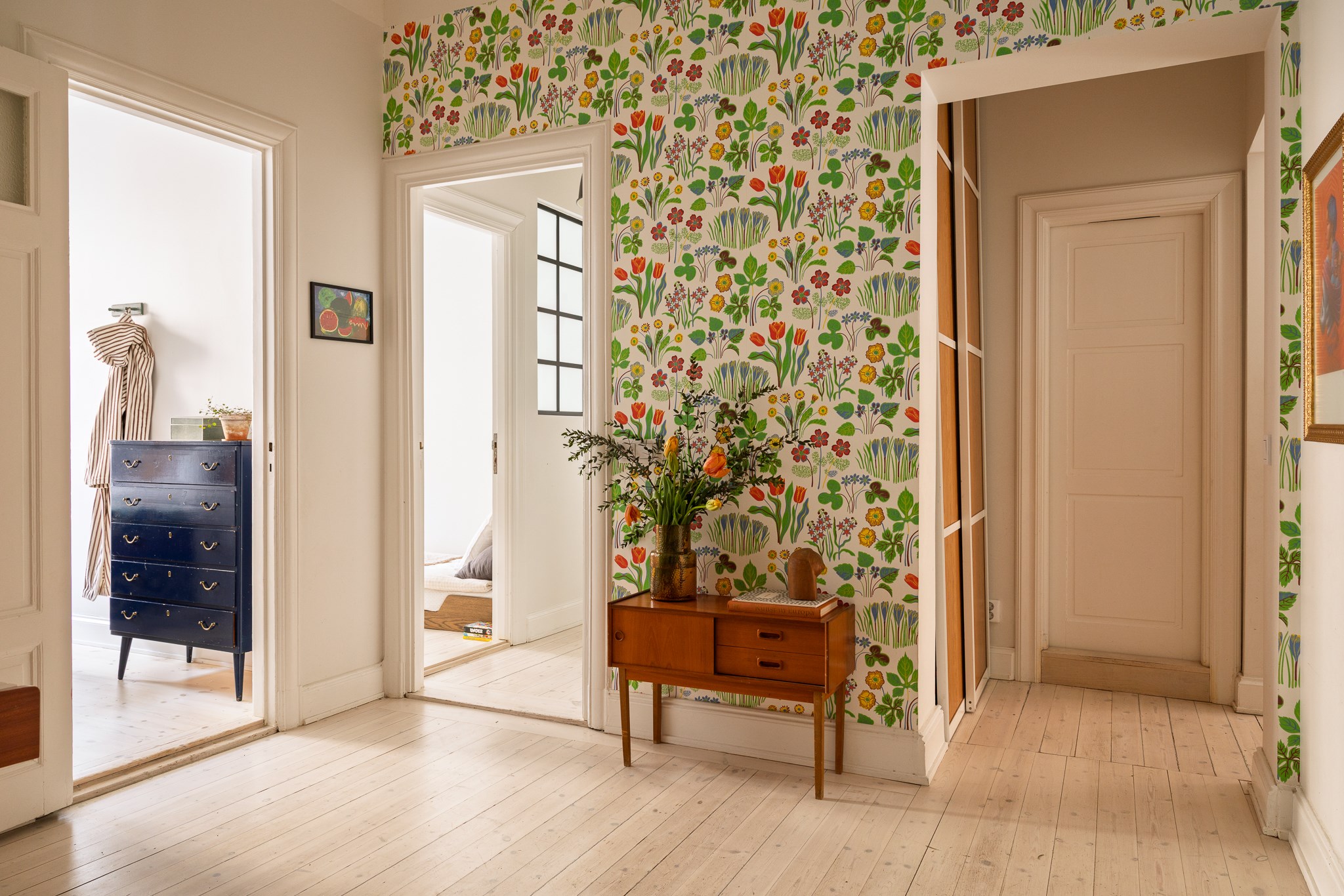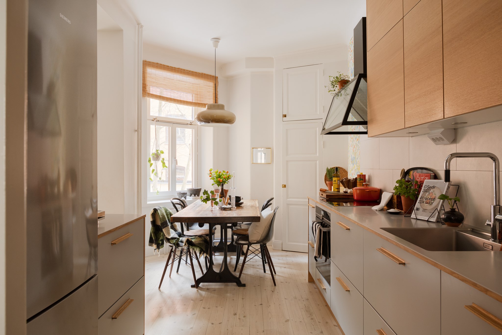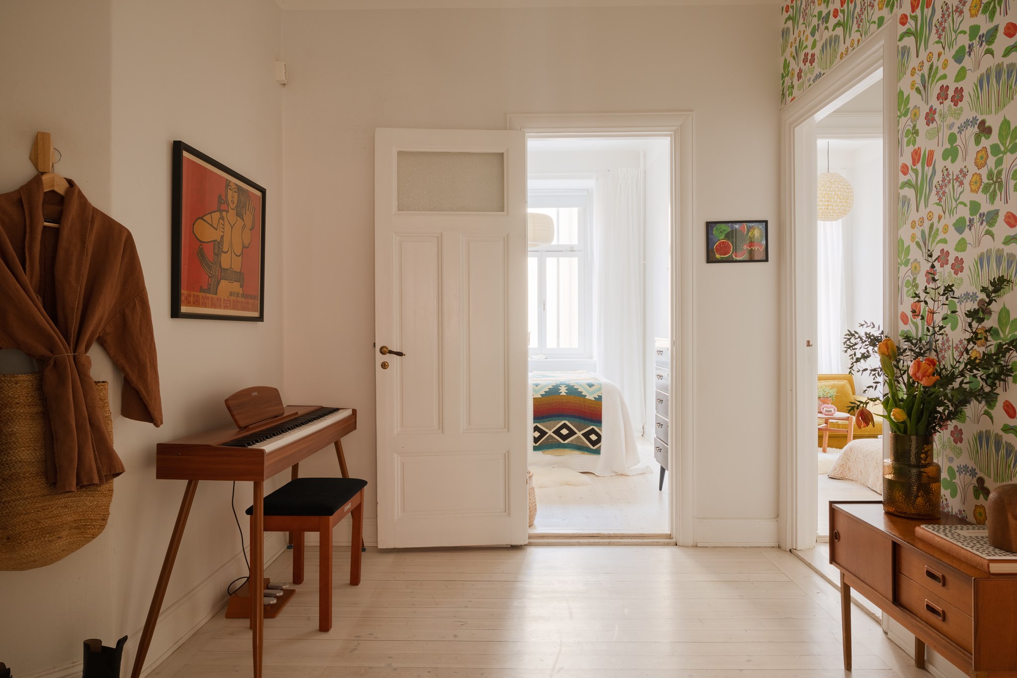 Bostaden präglas av en genomgående planlösning där rummen ligger i vacker fil, vilket skapar ett fantastiskt ljusflöde och en påtaglig känsla av rymd, något som den generösa takhöjden även bidrar till. Utöver detta har bostaden ett nyrenoverat och fullt utrustat kök med goda arbetsytor. Här möts klassisk sekelskifteskaraktär och funktionella ytor i ett hem som upplevs både luftigt och inbjudande. Den ljusa hallen är placerad centralt i bostaden och binder samman rummen på ett naturligt och socialt sätt – perfekt för både vardag och umgänge.