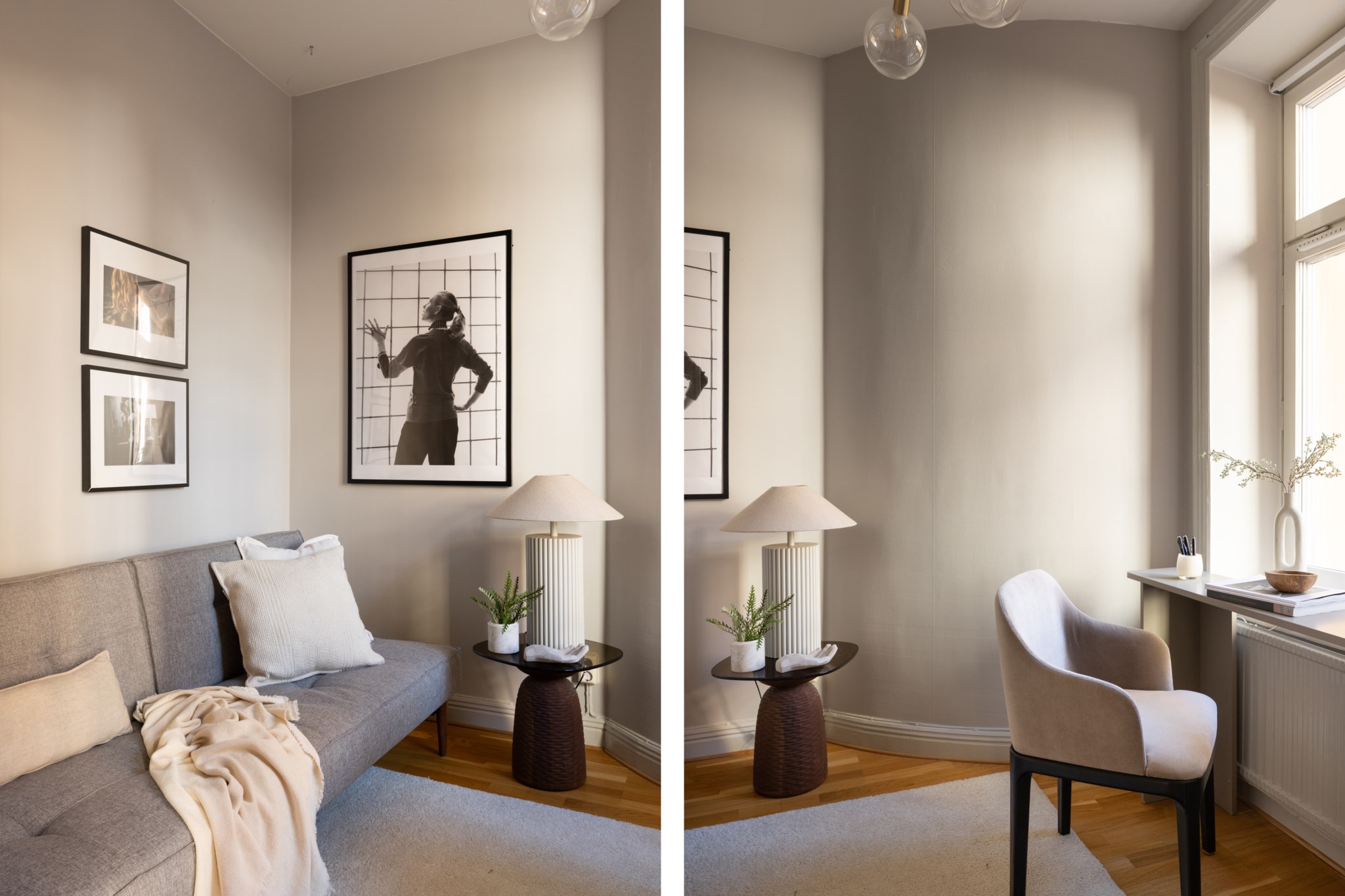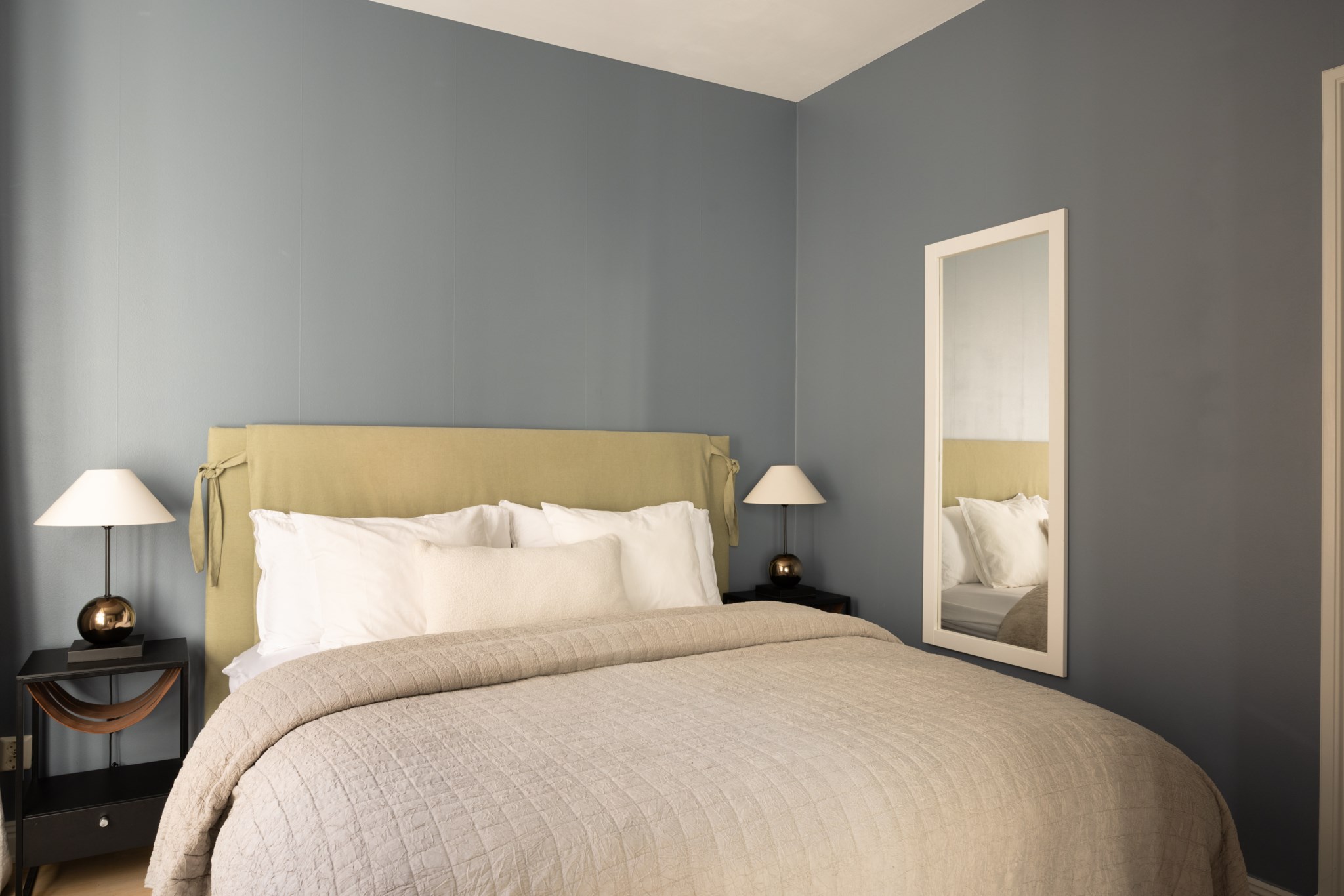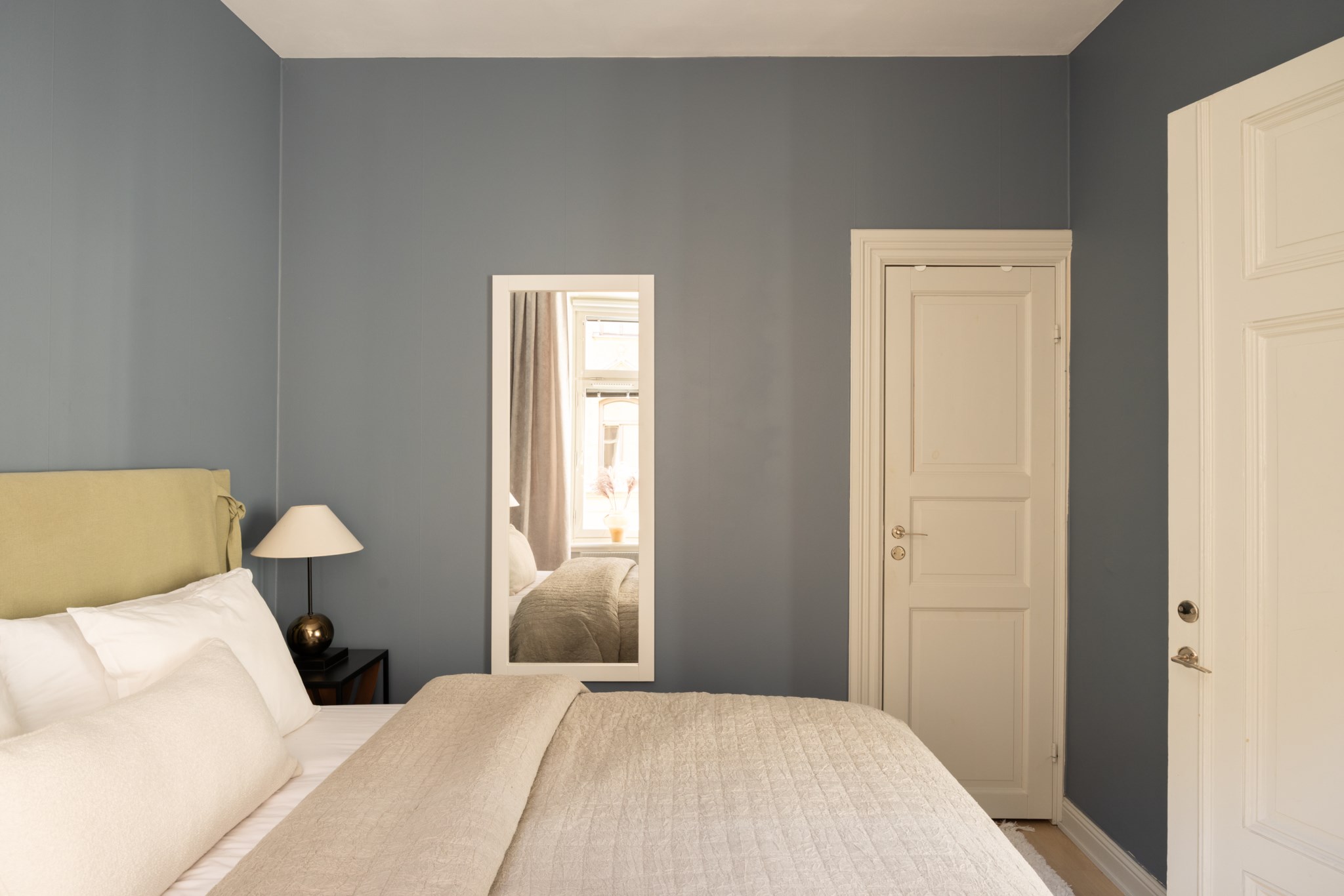 Master bedroom är rogivande och rymligt med plats för dubbelsäng samt goda förvaringsmöjligheter. Det mindre sovrummet är flexibelt och kan enkelt anpassas efter behov – perfekt som barnrum, gästrum eller hemmakontor.