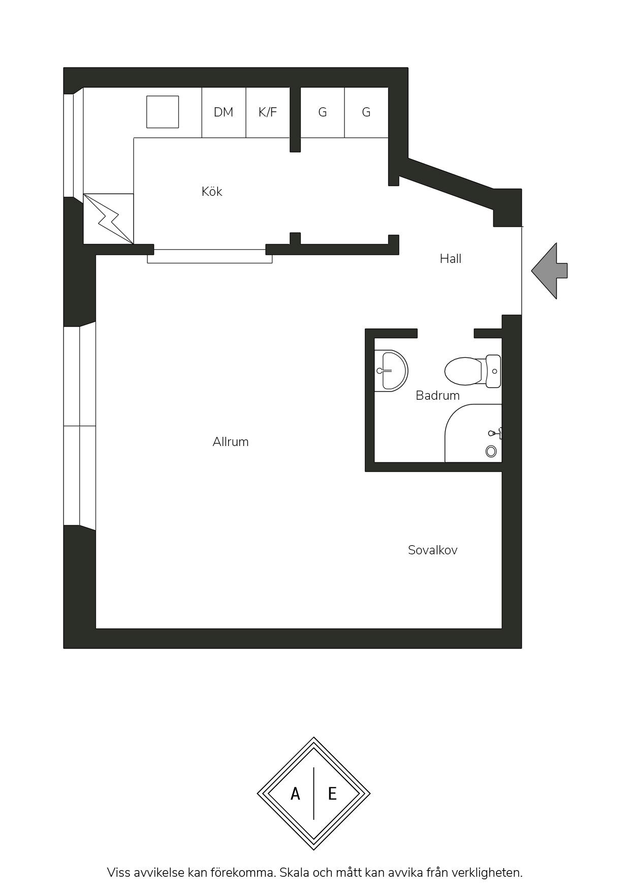 Välkomnande hall med plats för avhängning och genomgående trägolv som löper vidare in i bostaden. Här finns två rymliga garderober samt säkerhetsdörr. Vidare öppnar bostaden upp mot ett ljust och trivsamt sällskapsrum med stort fönsterparti som ger generöst ljusinsläpp och utsikt mot grönska. Rummet är halvöppet mot köket och rymmer både soffgrupp, matplats samt en praktisk sovalkov.