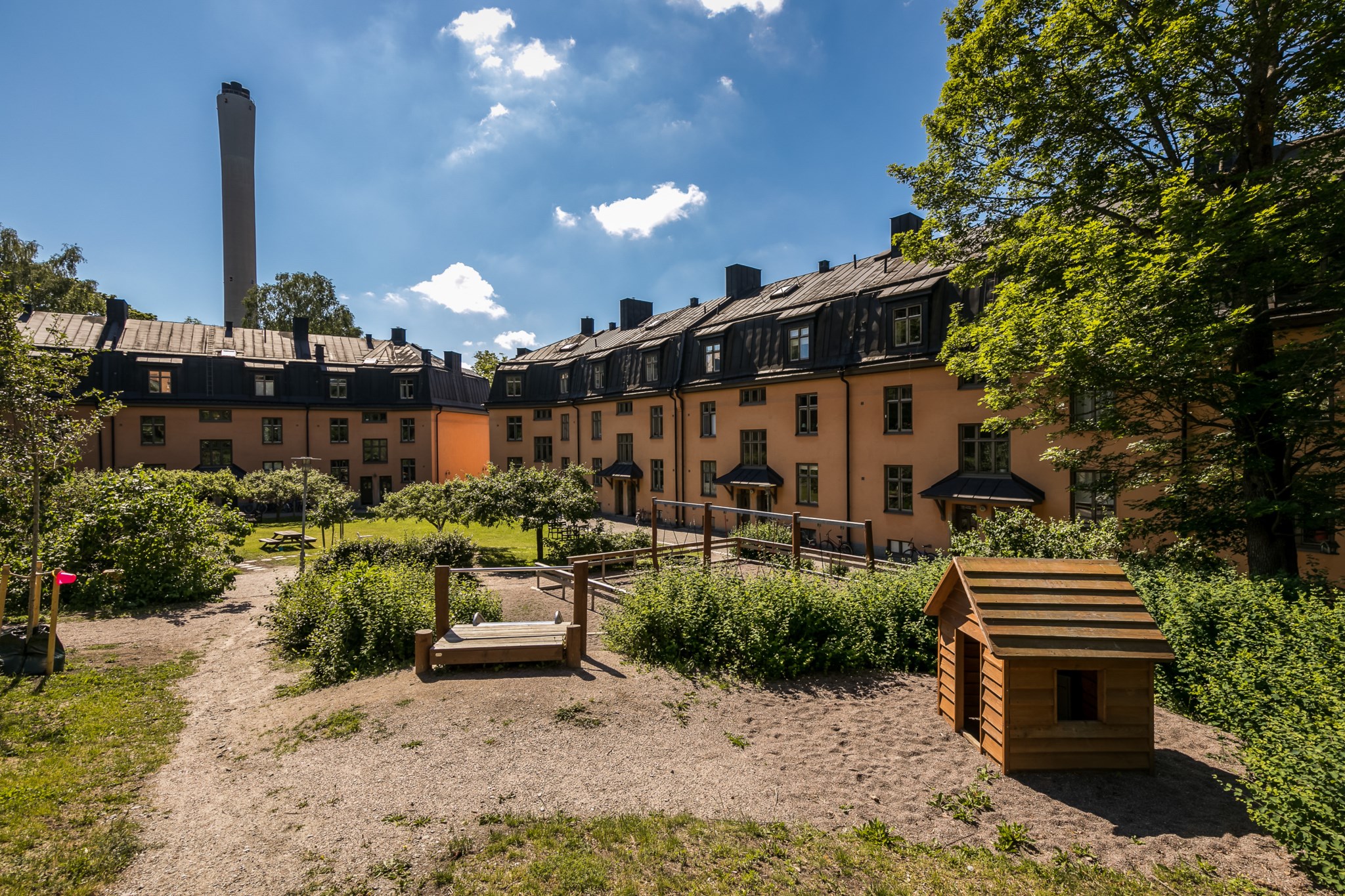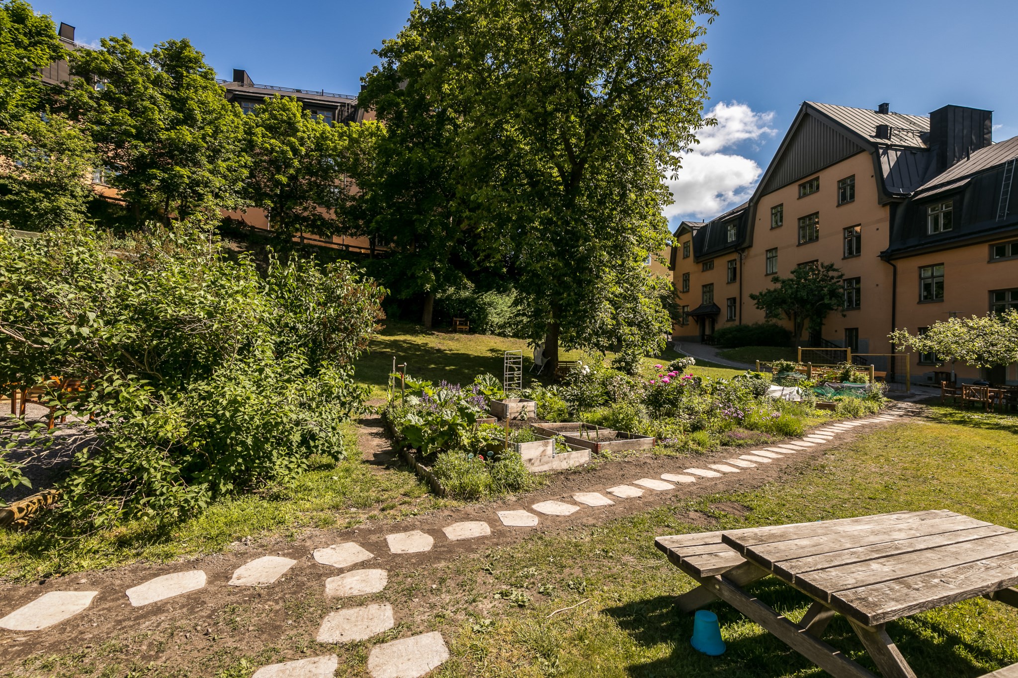 Föreningen utför partiella stambyten löpande vid behov.ParkeringFöreningen tillhandahåller inga parkeringsplatser. Boendeparkering sker på omkringliggande gator.Gemensamma utrymmenFöreningen har en fantastisk och unik gemensam innergård med odlingslotter, frukt och bär samt en lekplats. Det finns även en bastu på Skogvaktargatan 10, en övernattningslägenhet/lokal på Skogvaktargatan 8 samt en hobbylokal på Jägmästargatan 14. Gården är känd för sina höns och alla boende som vill kan bli hönsskötare för att skörda färska ägg.