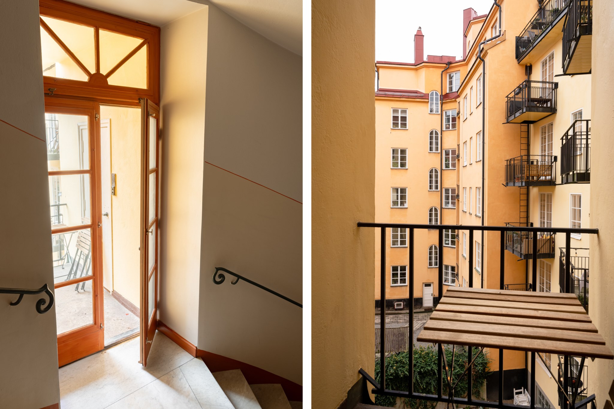 - Gemensamma balkonger på varje våningsplan