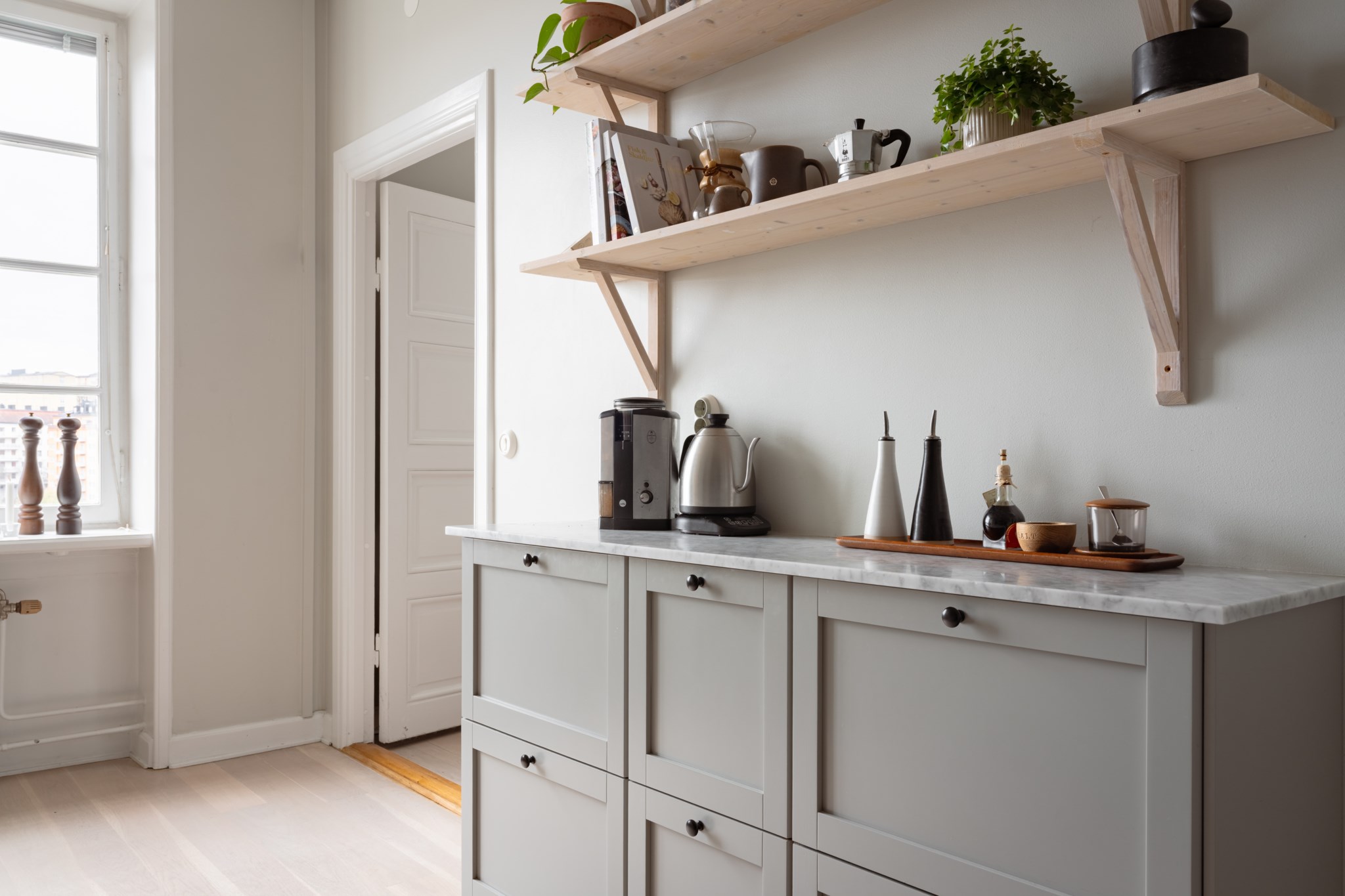 I lägenheten är det möjligt att enkelt dela på köket och få till ett extra rum som med fördel kan användas till kontor/gästrum.