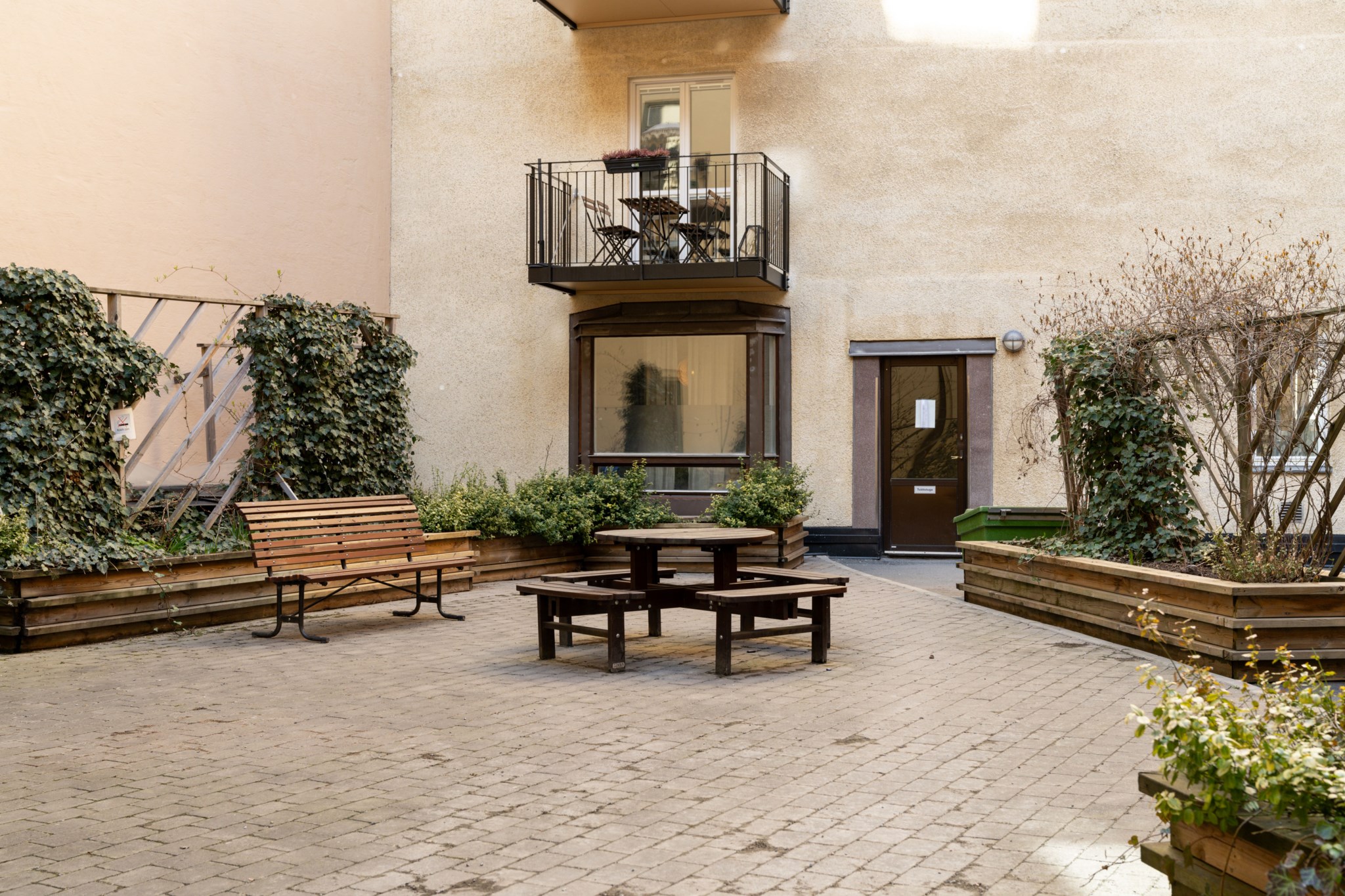 I föreningens underhållsplan ligger trapphusrenovering, fasadrenovering, dränering kring garage samt reparation av garagetak.