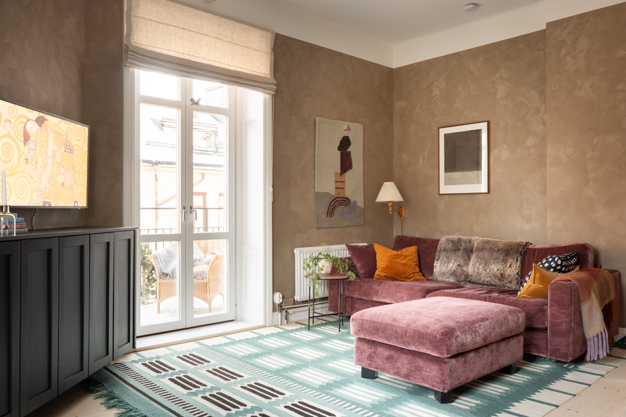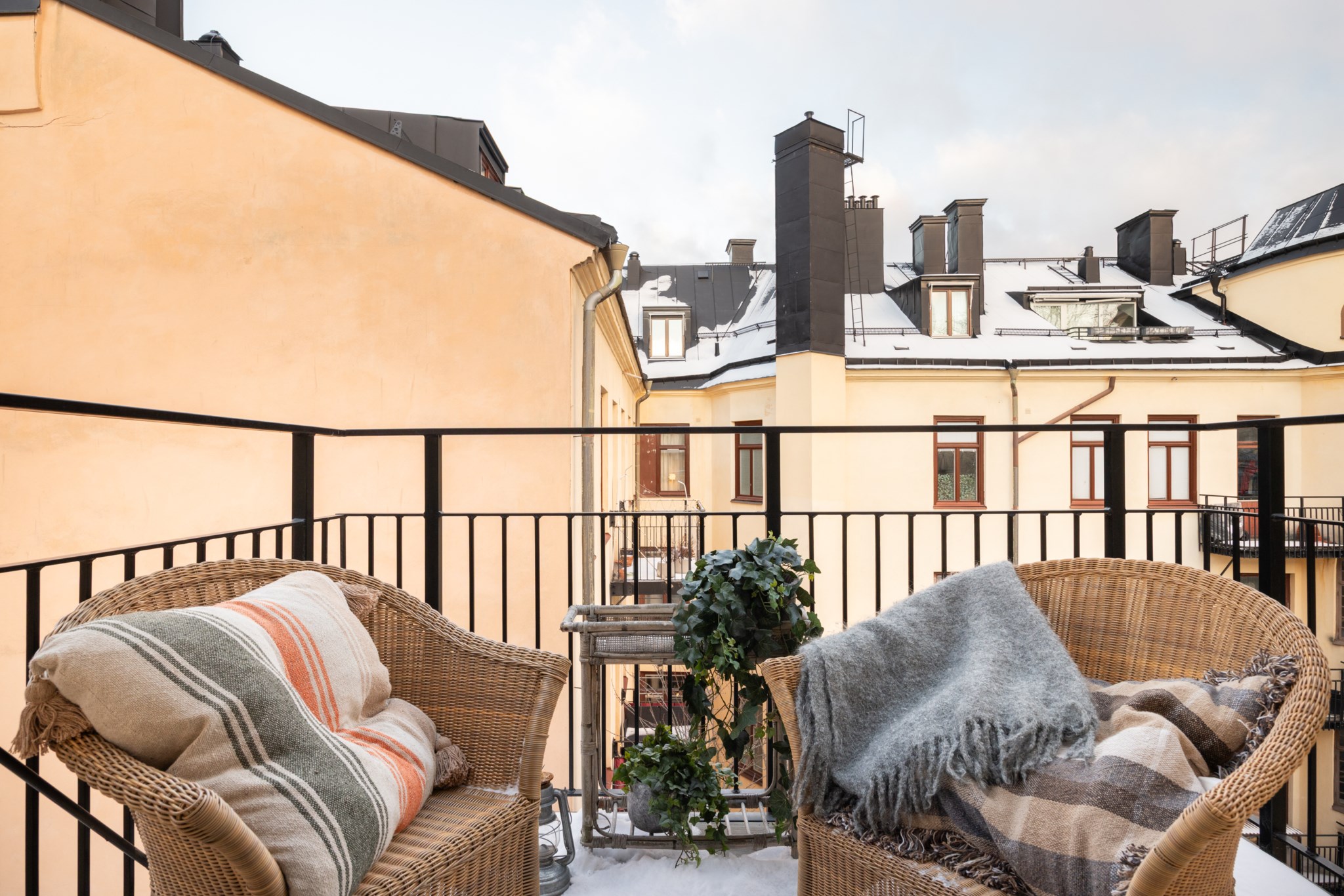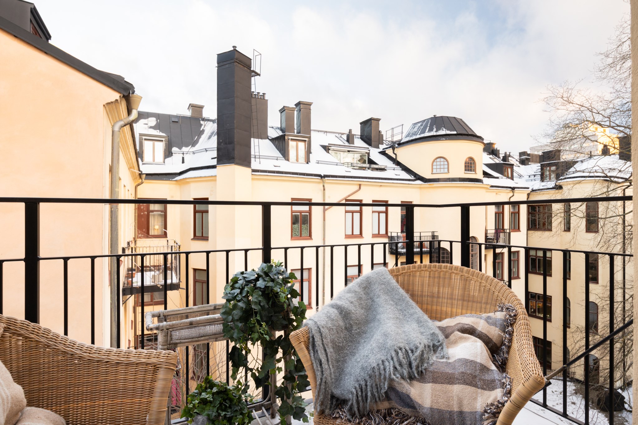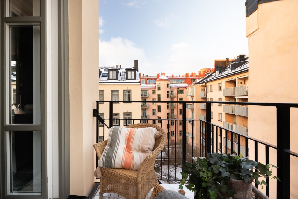 Till lägenheten hör en mysig balkong.
